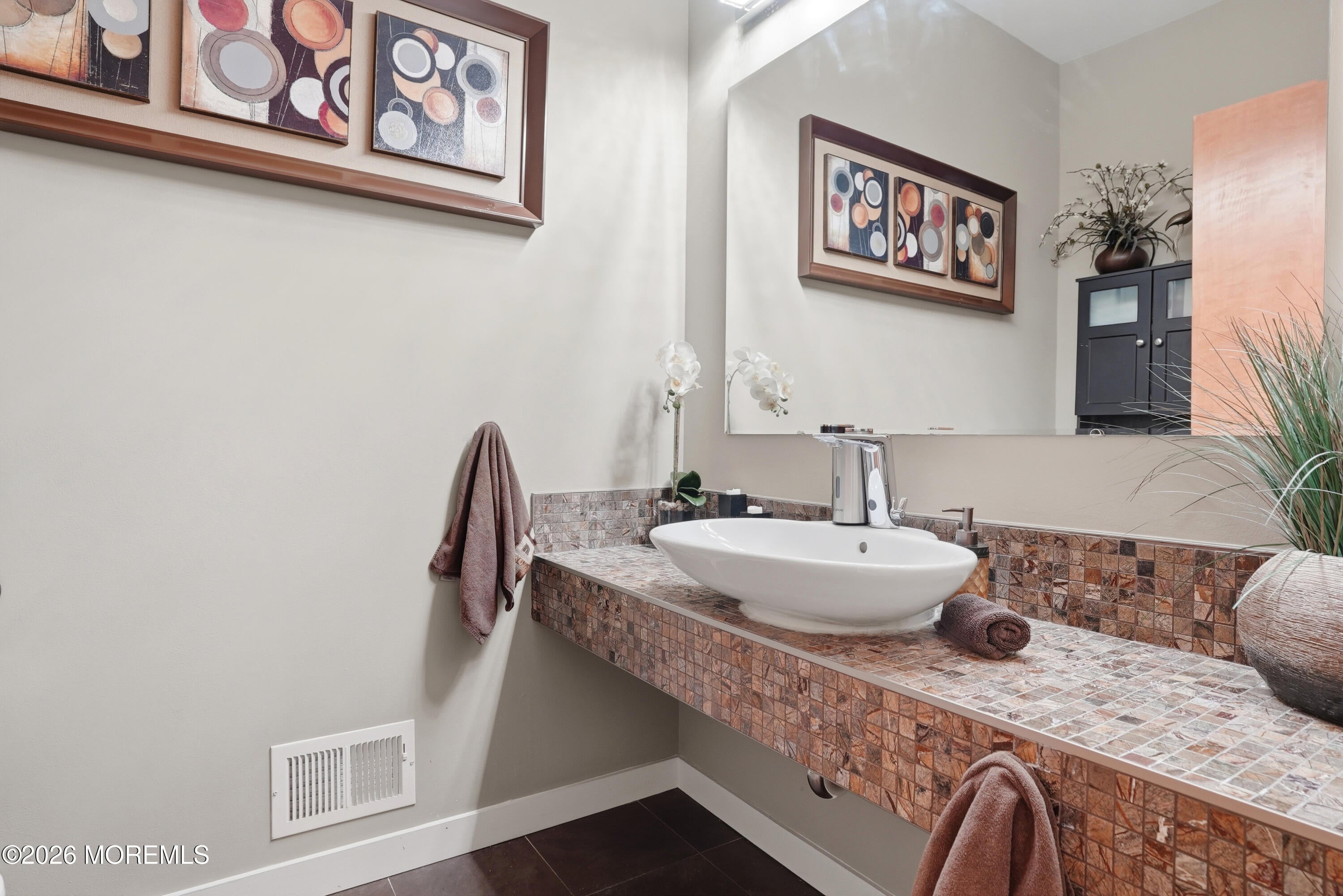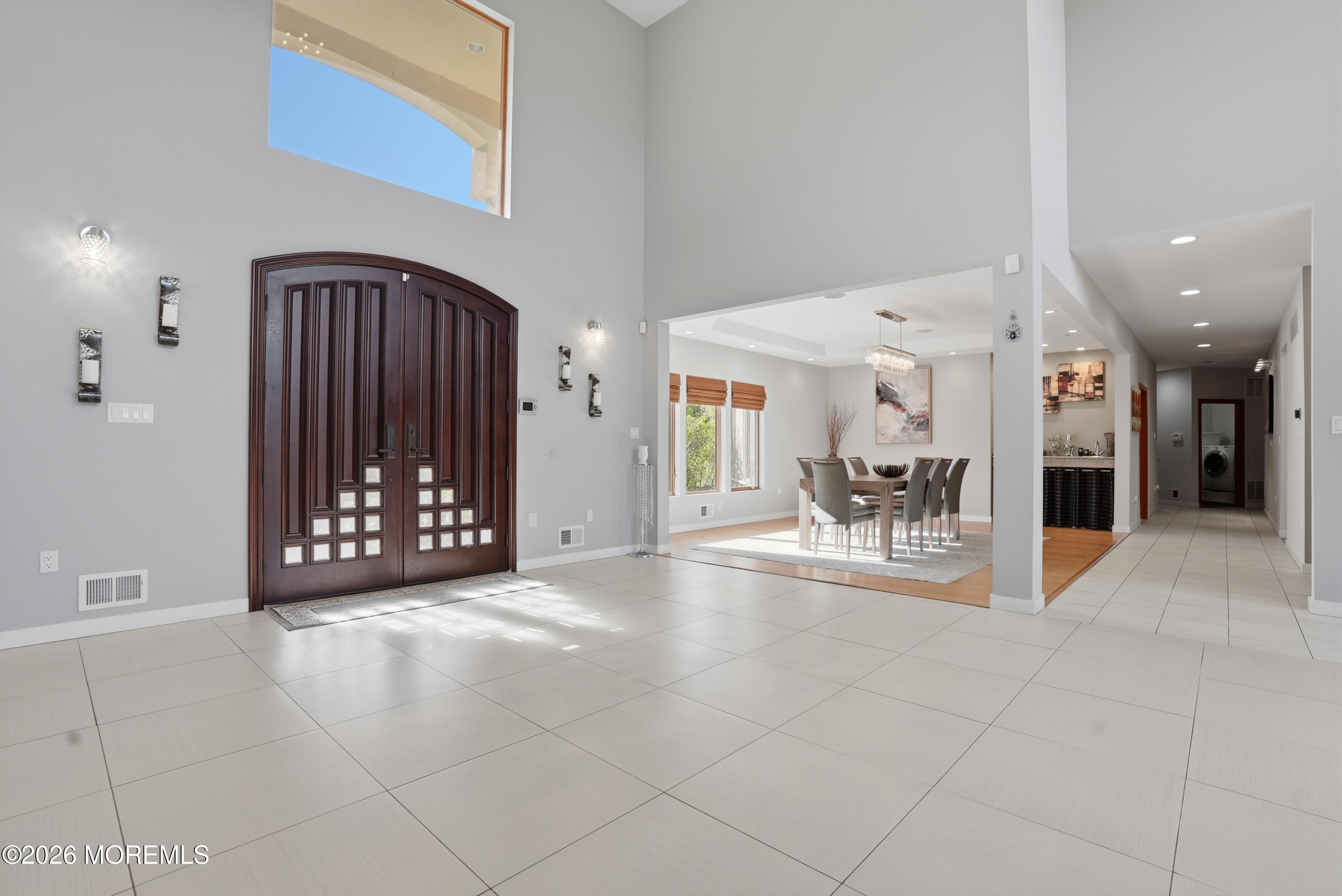 Attention to detail defines this exceptional custom-built modern residence, perfectly situated in the highly sought-after Millstone Township. Showcasing superior craftsmanship and thoughtfully curated design, this one of a kind home offers 6 spacious bedrooms, 5.5 luxurious baths, and a private theater room designed for the ultimate entertainment experience. The expansive first floor primary suite is tucked away in its own private wing, offering a true retreat with both comfort and sophistication. Throughout the home, youll find an impressive array of high end features including a central vacuum system, integrated whole home sound system, and a designer kitchen outfitted with premium appliances and a commercial grade exhaust system ideal for both everyday living and elevated entertaining. Built with quality and efficiency in mind, the home boasts fully insulated walls and floors, radiant 4-zone heating, and a robust 400 amp electrical service. A grand foyer is complemented by a motorized chandelier lift (up to 300 lbs), blending elegance with practicality. There is also bamboo flooring, abundant storage with multiple huge closets and bonus spaces, twin septic systems, and a 3 car garage with direct basement access. Solar panels provide energy efficiency and help reduce utility costs. This remarkable home offers a rare combination of modern luxury, thoughtful design, and everyday functionality. Truly a standout property unlike any other.