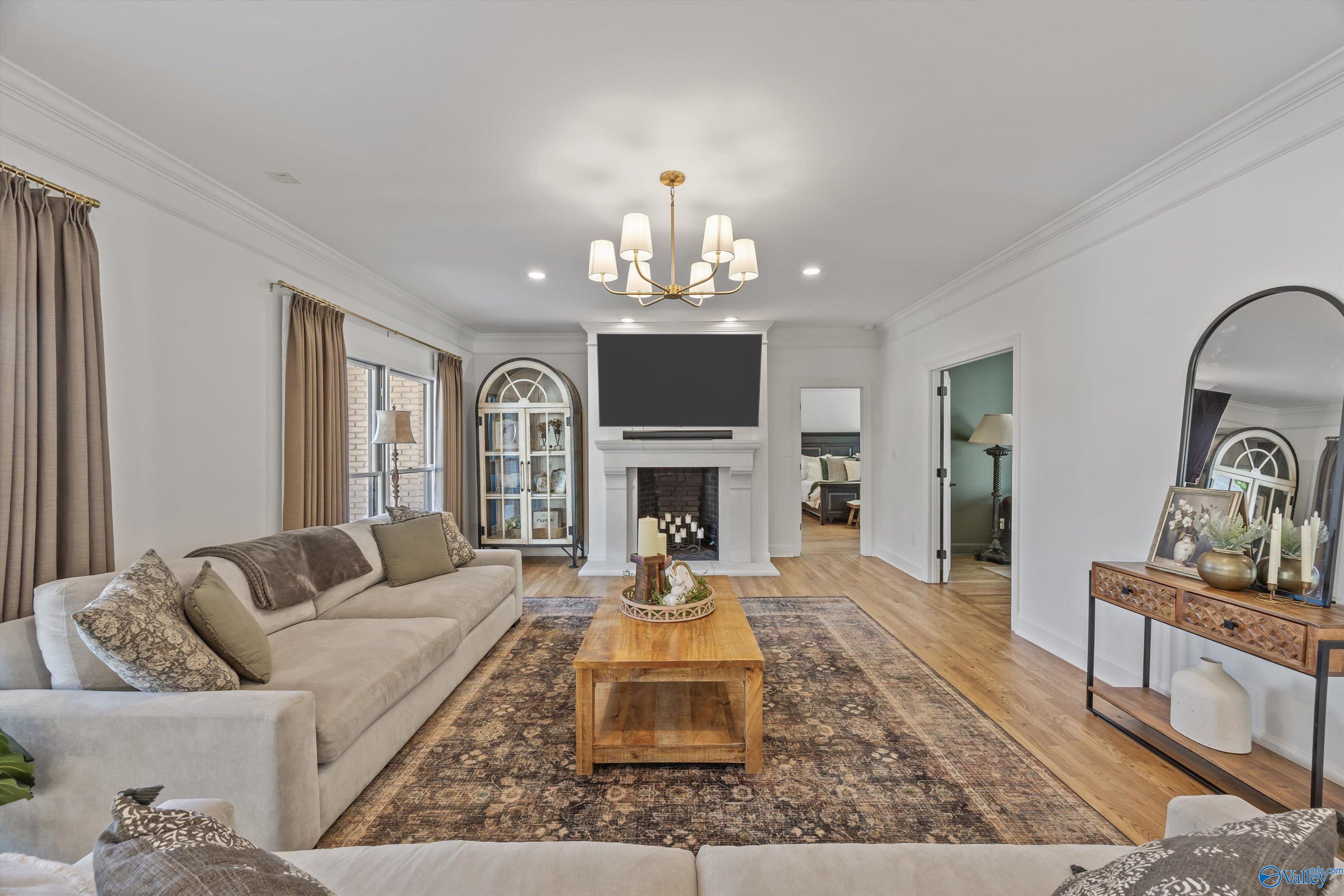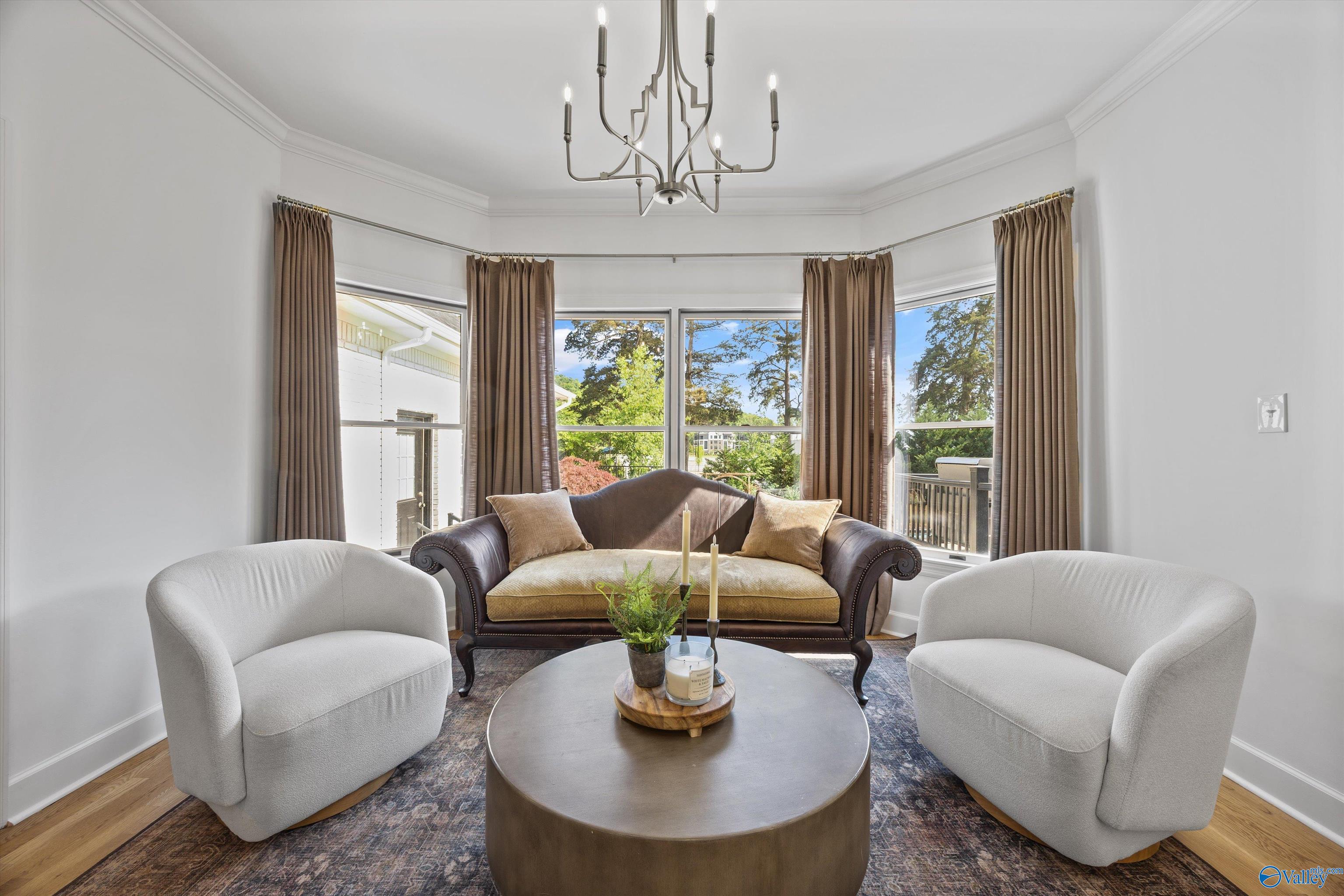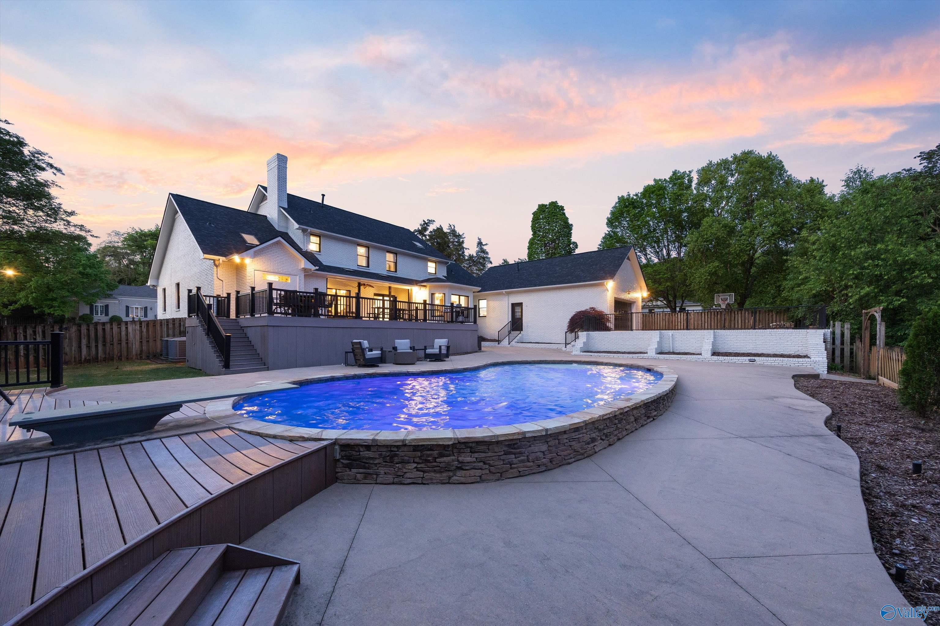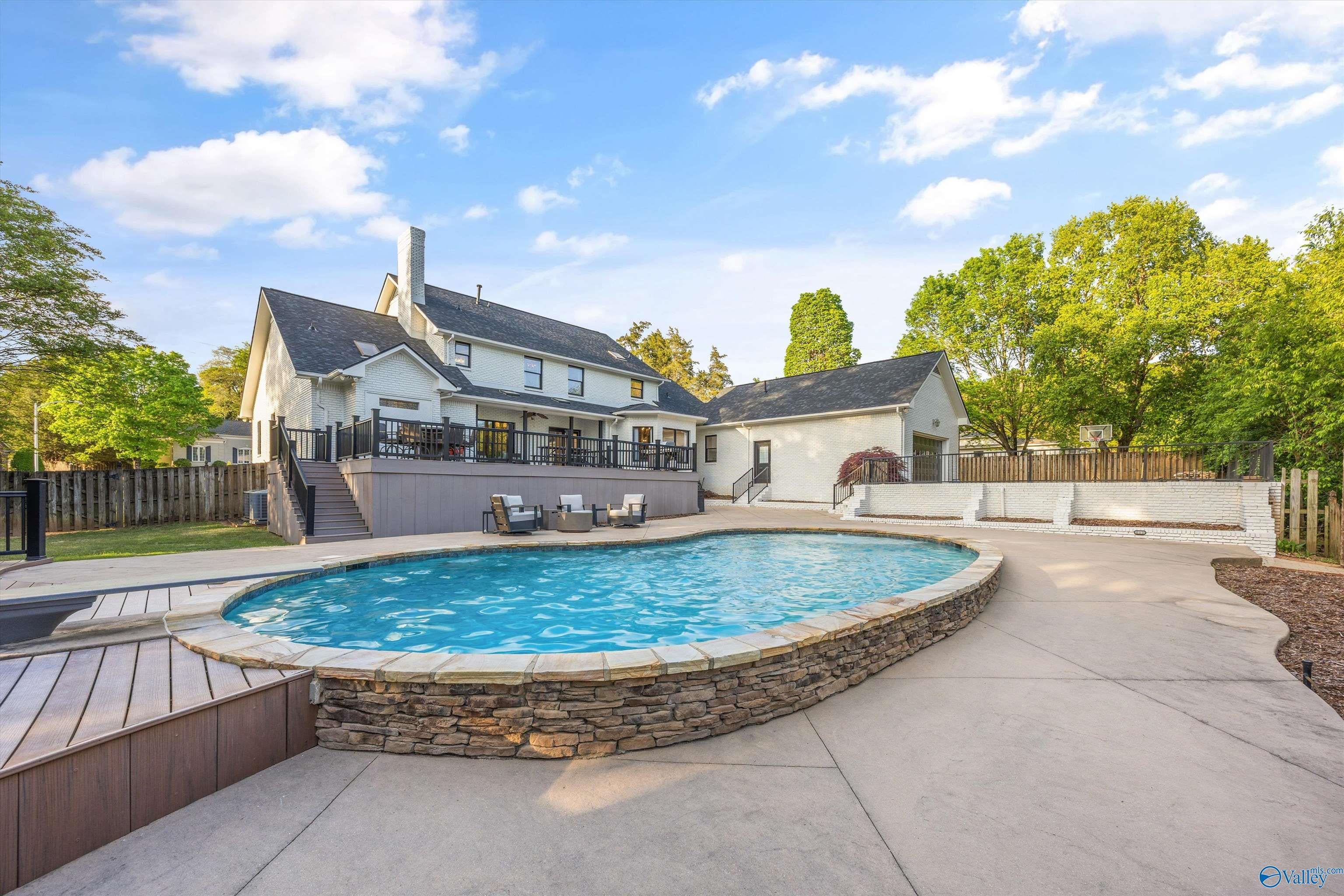 Refined and striking, this Jones Valley residence pairs architectural presence with effortless livability, set on a secluded cul de sac. The kitchen is a study in form and function, featuring waterfall Quartzite counters, Wolf and SubZero appliances, and custom cabinetry, opening to sunlit interiors with hardwood floors throughout the main level. Two primary suites on the first floor offer privacy and flexibility. A spacious laundry room adds everyday ease. Outdoors, a heated saltwater pool creates a private retreat, with a charming bridge leading to a tucked away play area. Minutes from downtown Huntsville, dining, and greenways, this is elevated living with a true sense of place.
