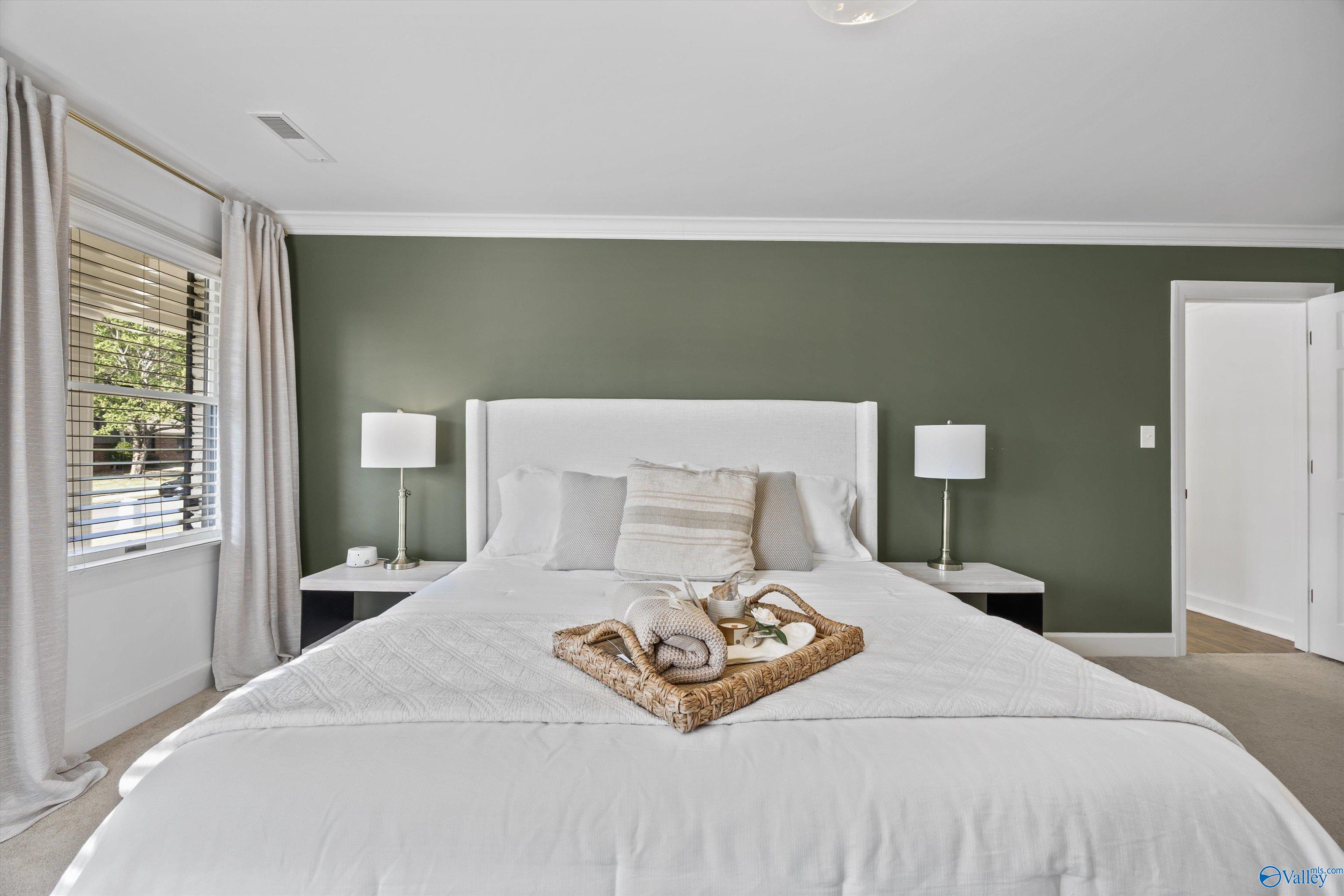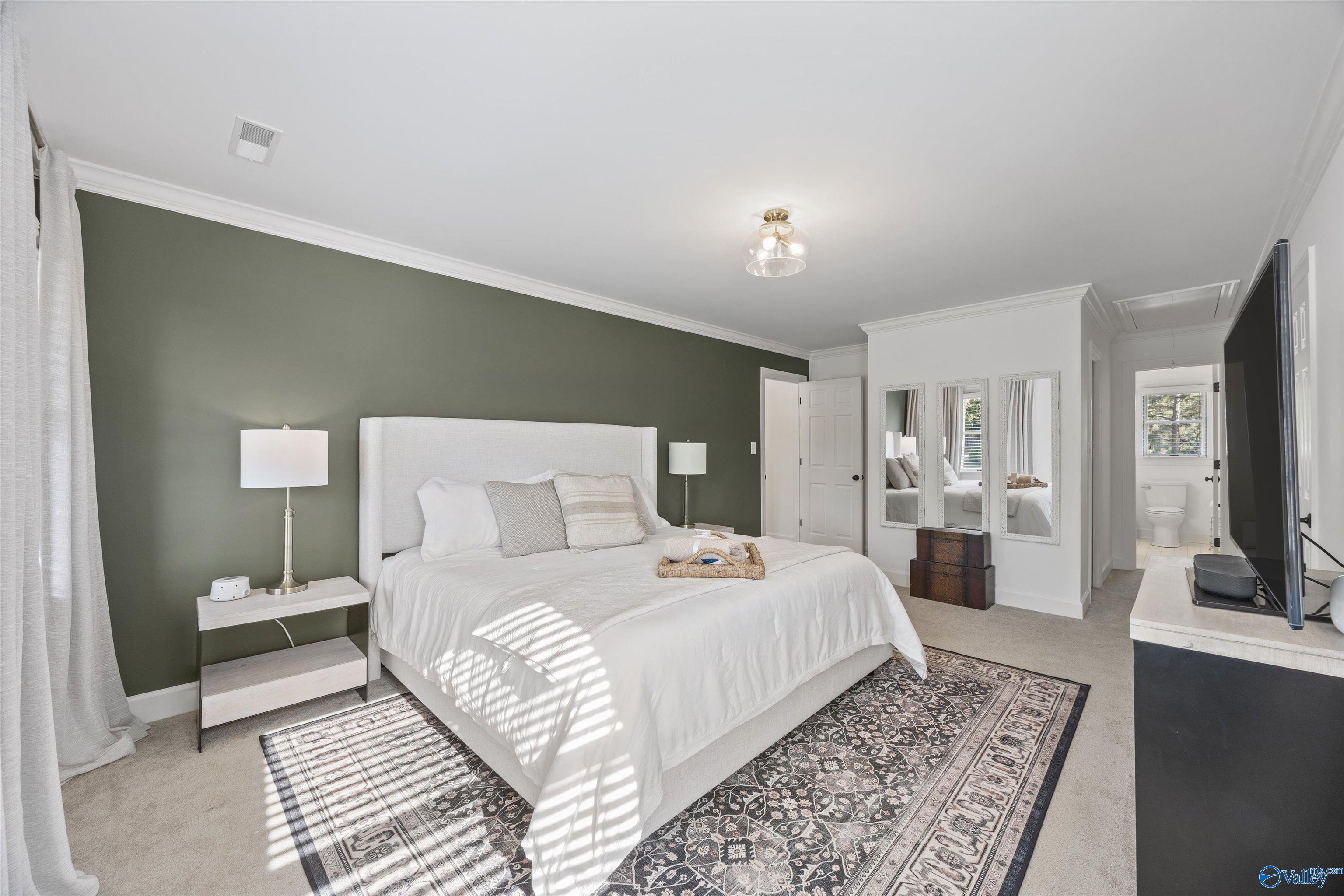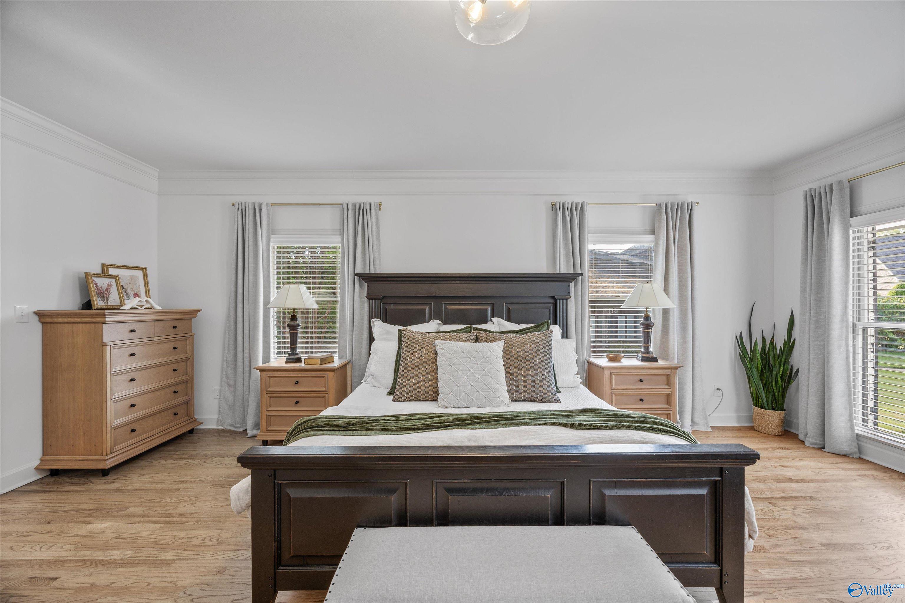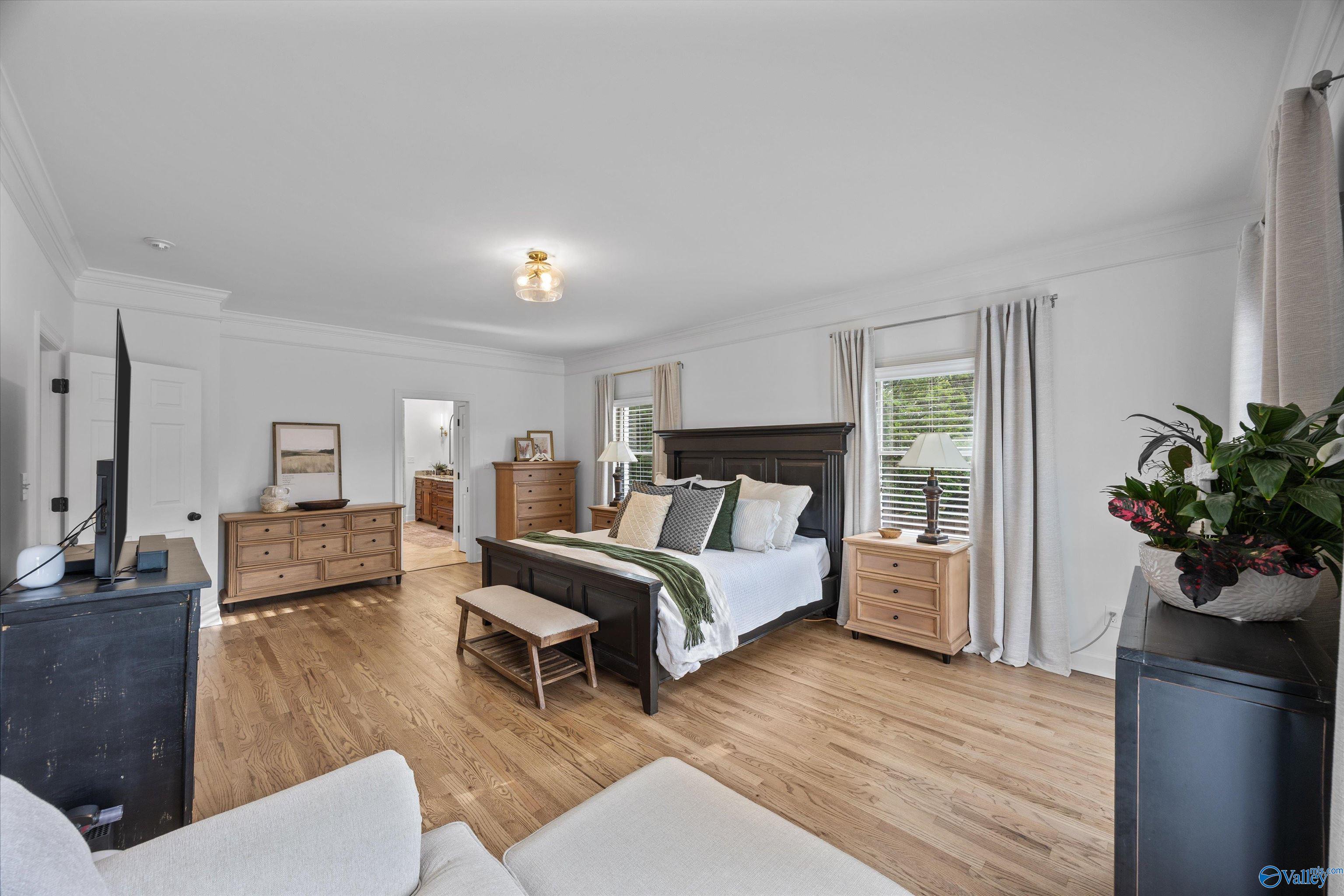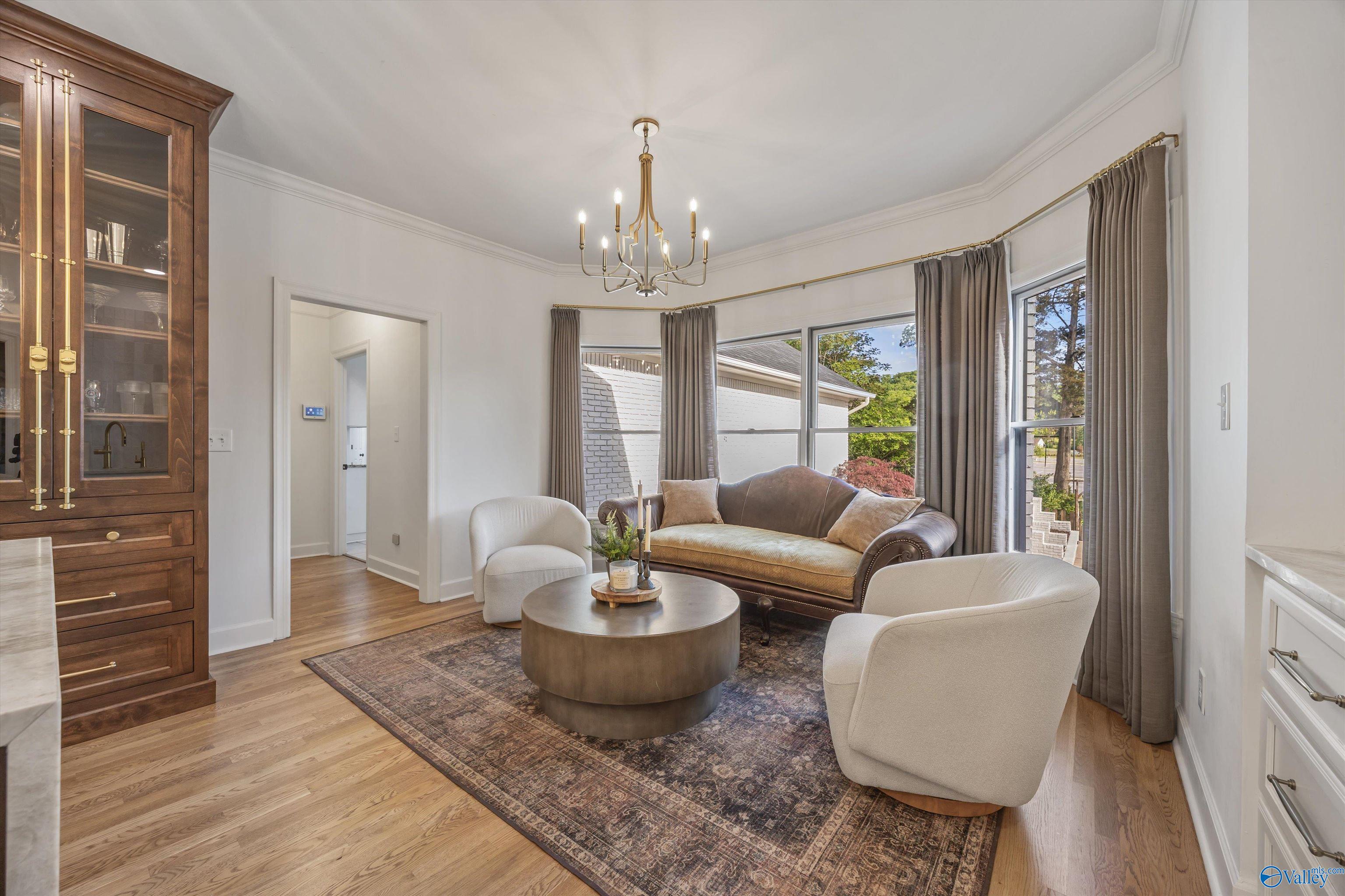 Refined and striking, this Jones Valley residence pairs architectural presence with effortless livability, set on a secluded cul de sac. The kitchen is a study in form and function, featuring waterfall Quartzite counters, Wolf and SubZero appliances, and custom cabinetry, opening to sunlit interiors with hardwood floors throughout the main level. Two primary suites on the first floor offer privacy and flexibility. A spacious laundry room adds everyday ease. Outdoors, a heated saltwater pool creates a private retreat, with a charming bridge leading to a tucked away play area. Minutes from downtown Huntsville, dining, and greenways, this is elevated living with a true sense of place.