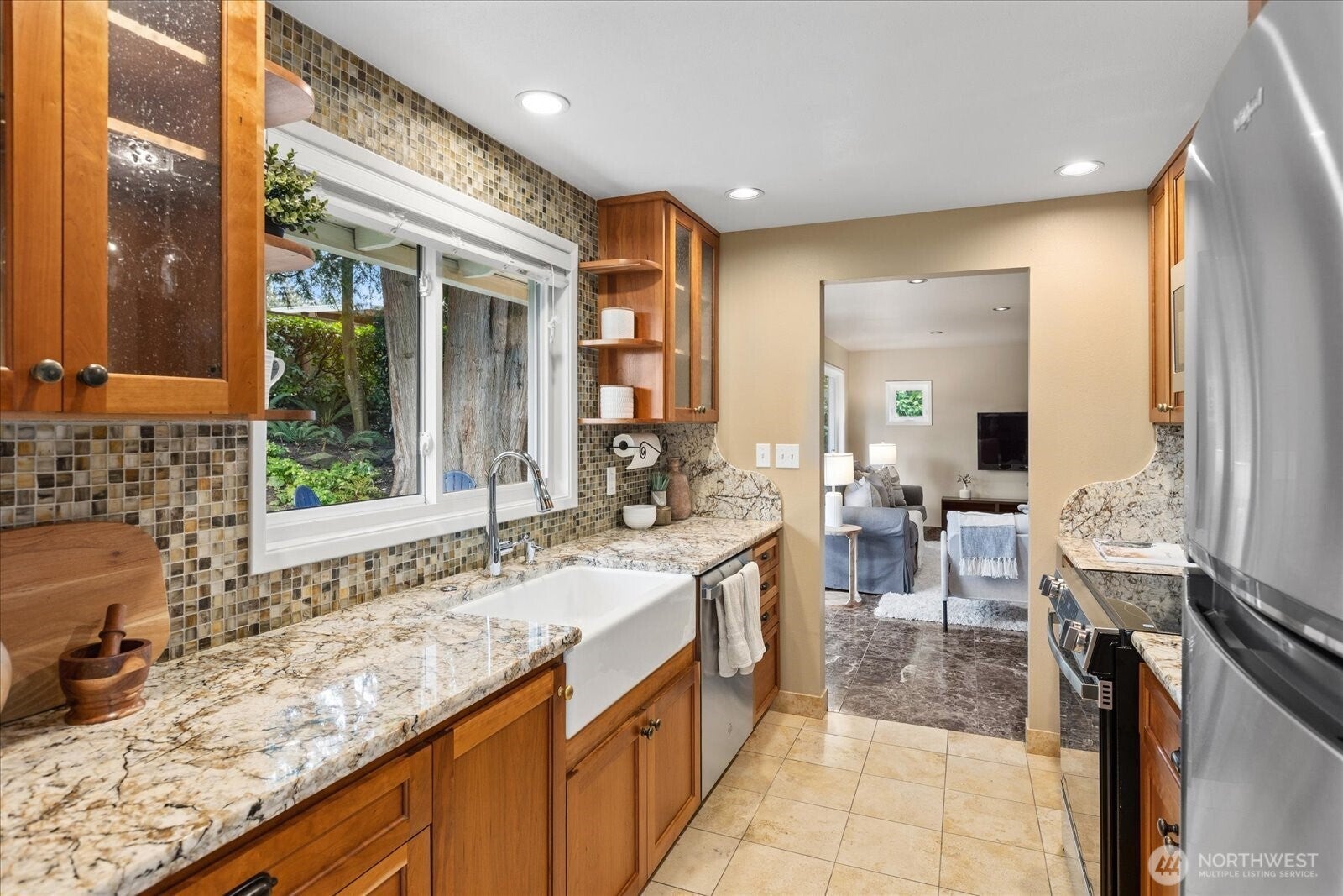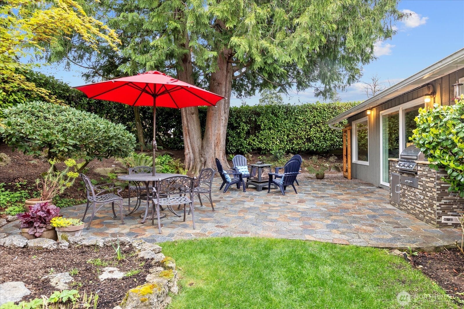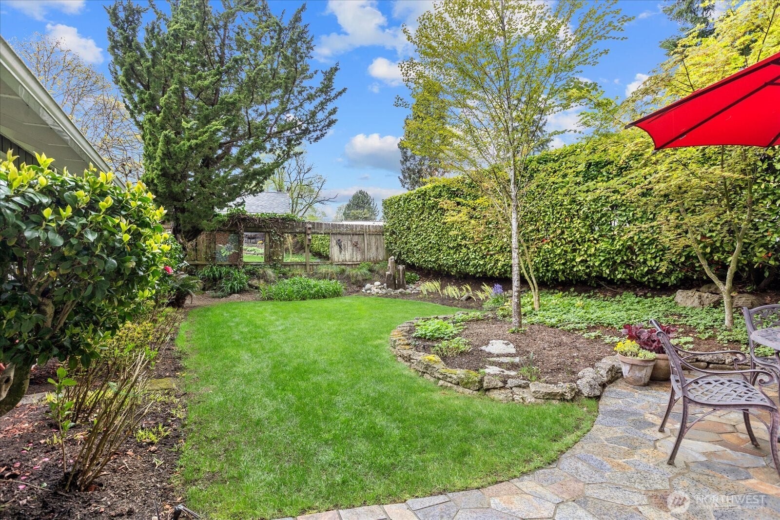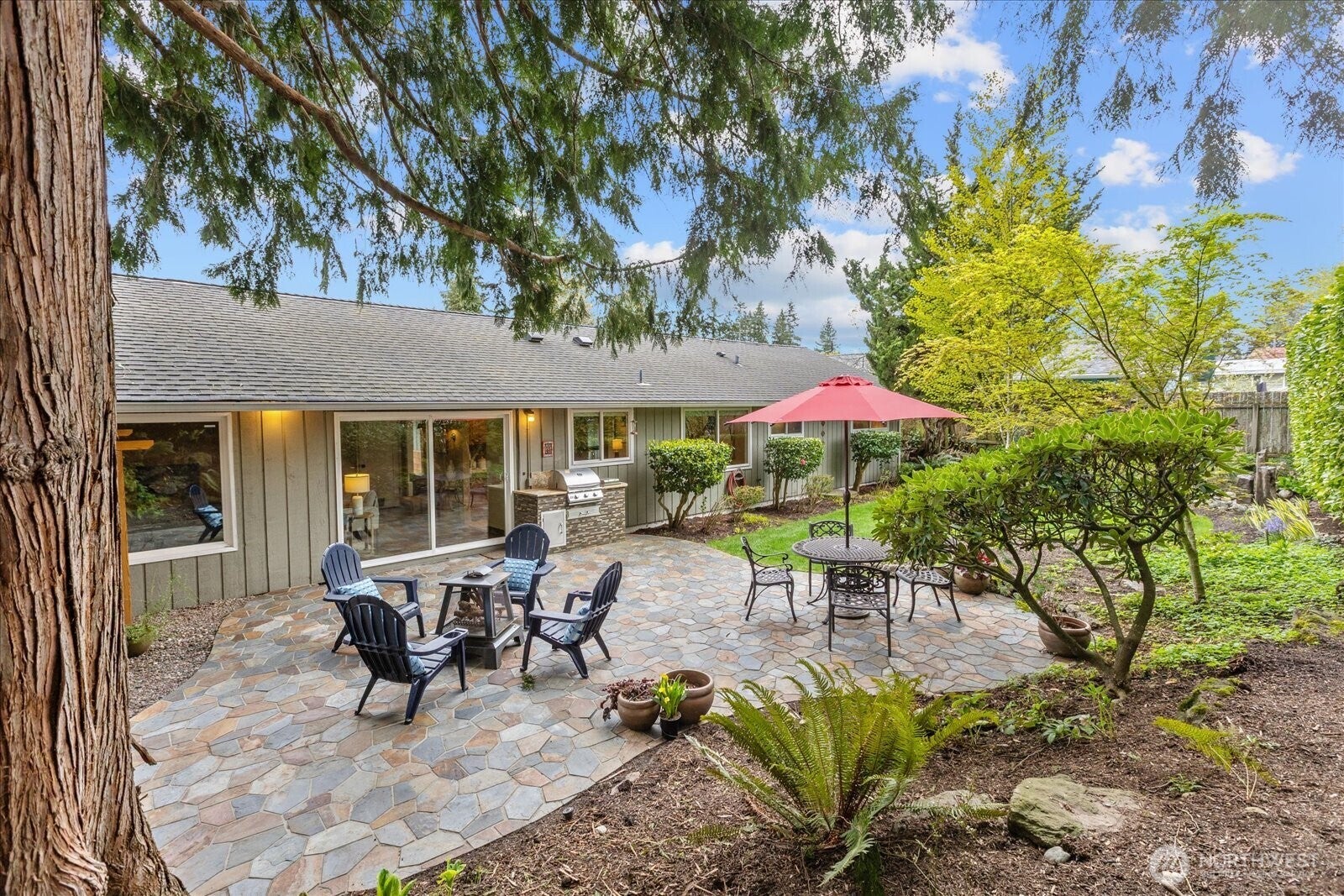 Located in Bellevues sought-after Lake Hills neighborhood, this beautifully maintained move-in ready rambler combines timeless character with thoughtful modern updates. Southern exposure provides abundant natural light and fills the interior through large windows, highlighting elegant natural stone, marble and hardwood floors. The updated kitchen features new stainless-steel appliances and flows seamlessly into the main living areas, creating an ideal layout for everyday living and entertaining. Step outside to your private, fully fenced backyard oasis. Thoughtfully landscaped with a sprinkler system, tranquil water features, and a custom stone patio, this space is designed for both relaxation and gathering. Whether hosting summer evenings or sipping your coffee on a quiet morning, this outdoor retreat delivers. An oversized two-car garage provides exceptional storage and versatile workspace options for all your hobbies, adding to the homes everyday convenience. Enjoy the outdoors with nearby Evergreen Park, Phantom Lake Park and Lake Hills Greenbelt trails. Conveniently located near top-rated Bellevue schools with easy access to Lake Hills Library, Crossroads Mall, dining, shopping and Samena Swim & Recreation Club. This home is situated on a quiet street and is centrally located with easy commuting by transit, light rail, I-90 or 520 access. Seller pre-inspected for peace of mind - this move-in ready home is an exceptional opportunity you wont want to miss.