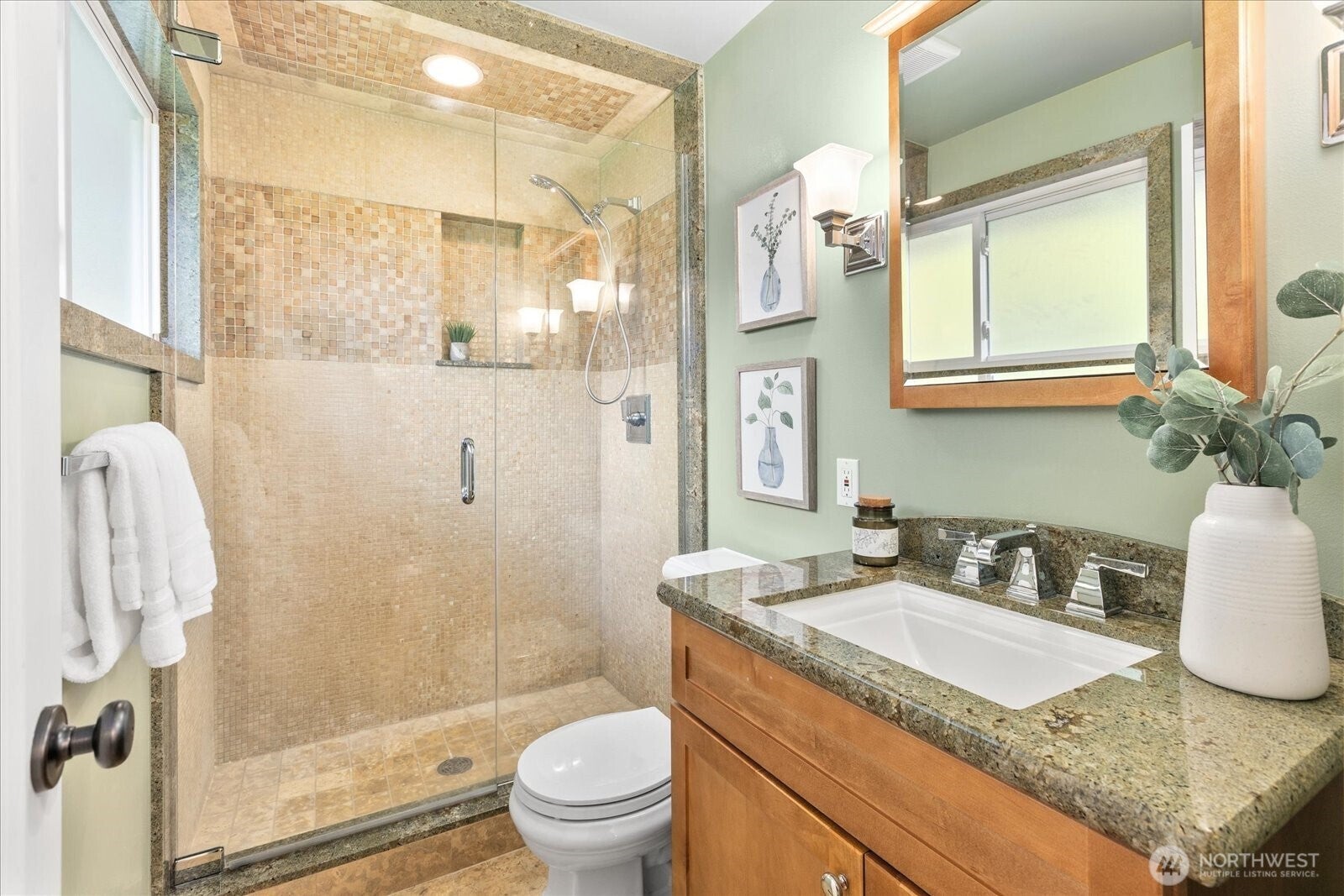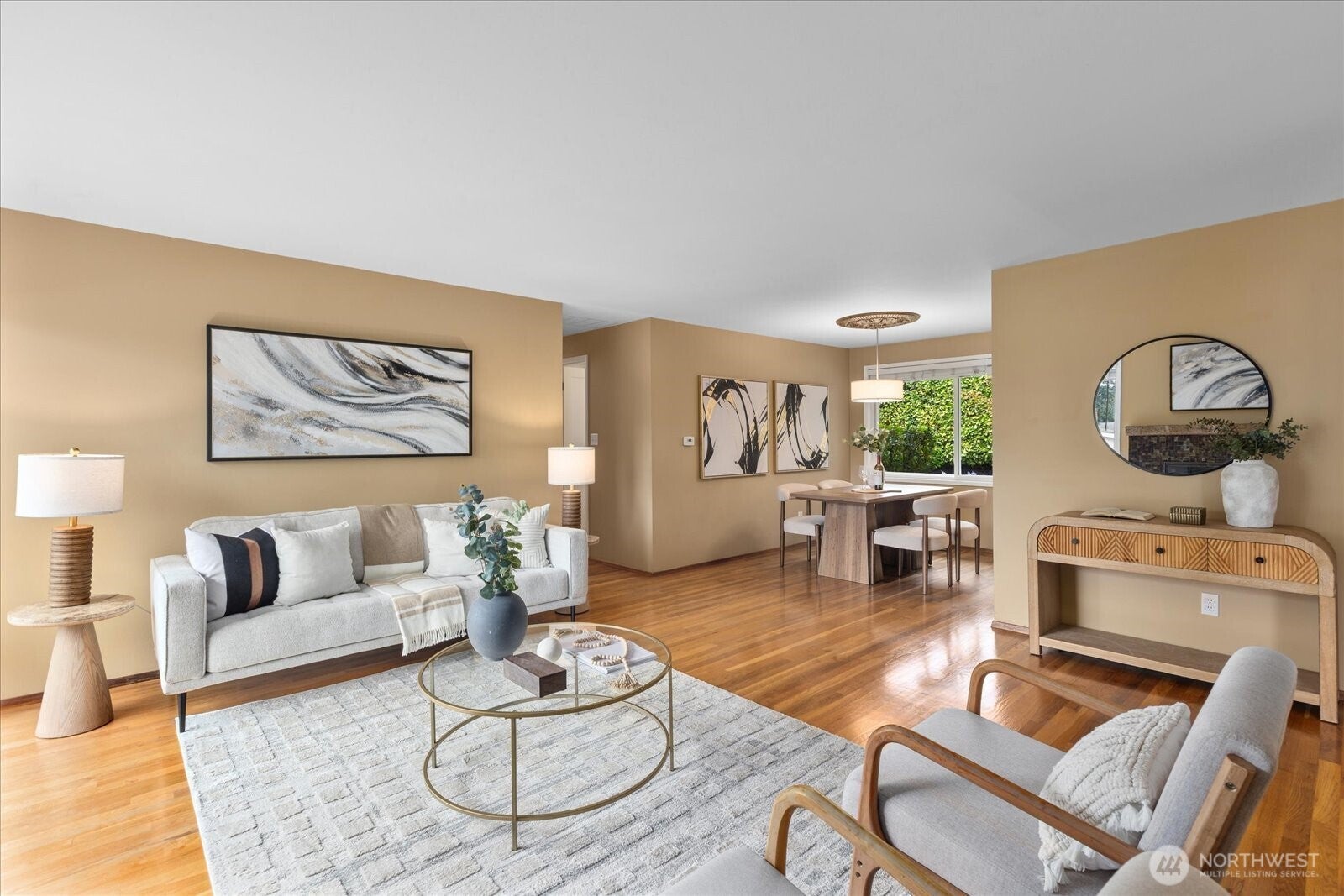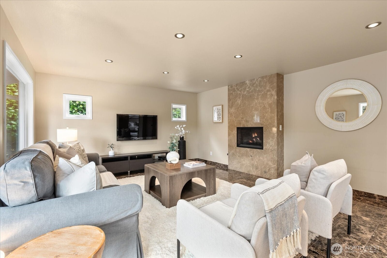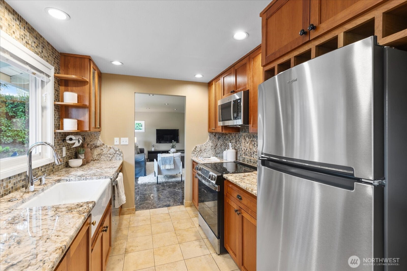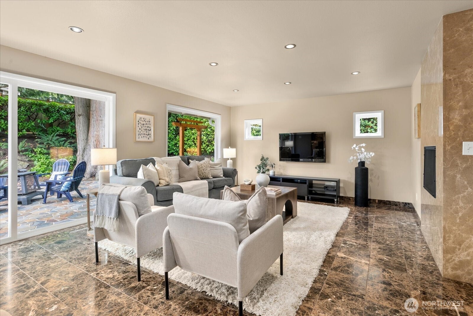 Located in Bellevues sought-after Lake Hills neighborhood, this beautifully maintained move-in ready rambler combines timeless character with thoughtful modern updates. Southern exposure provides abundant natural light and fills the interior through large windows, highlighting elegant natural stone, marble and hardwood floors.