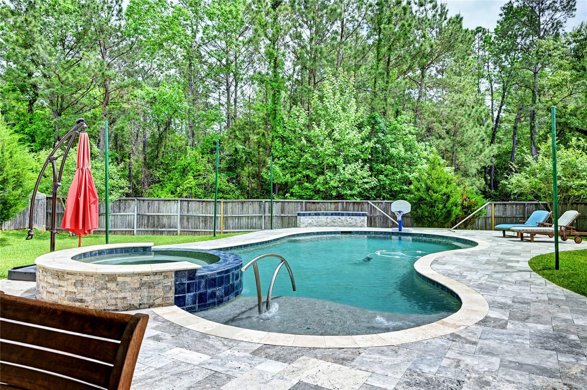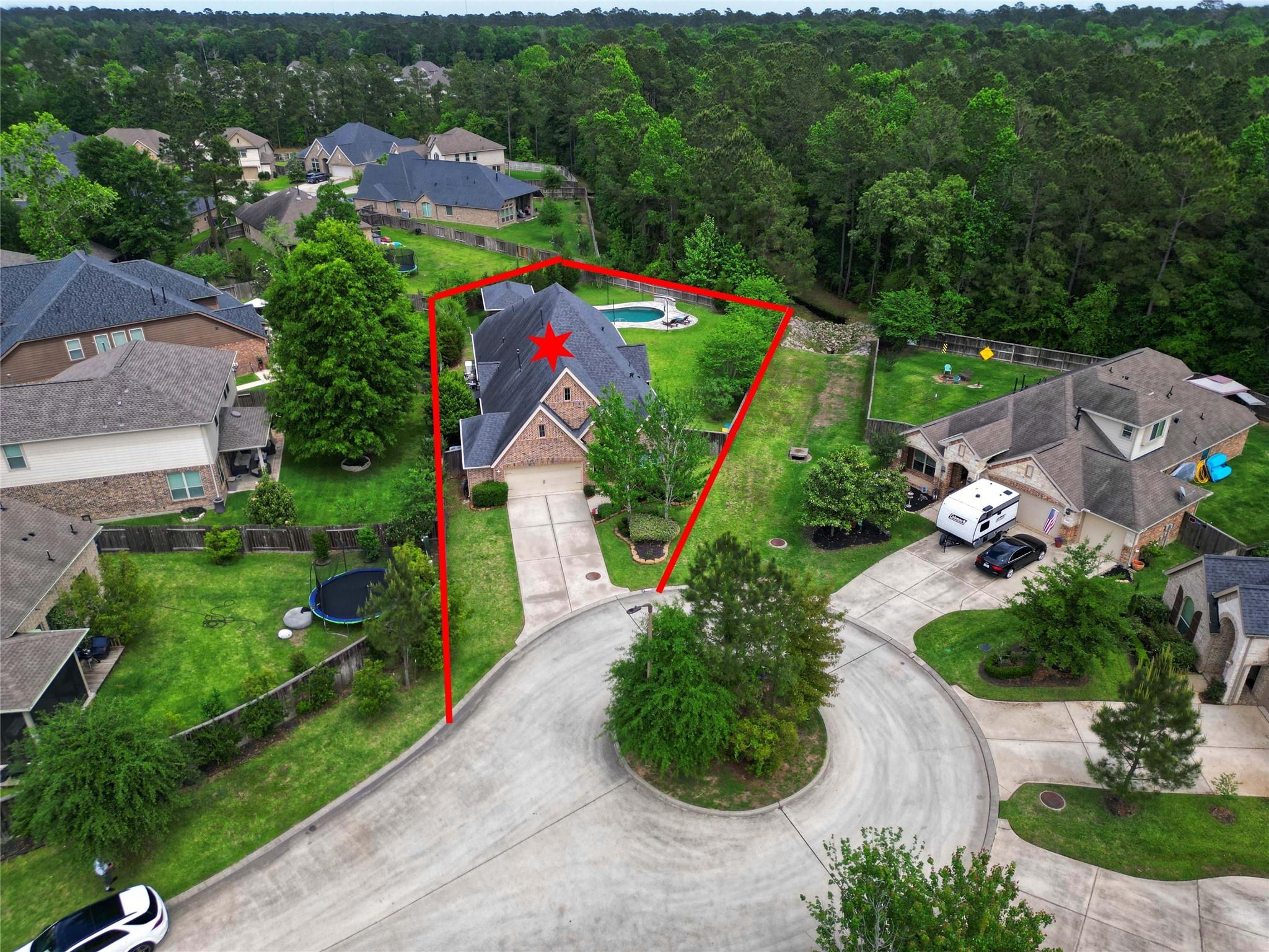 Nestled in the Woodforest Master Planned Community, this single-story Perry Home boasts a spacious lot on a peaceful cul-de-sac. The backyard oasis includes a pool, spa, summer kitchen, travertine walkways, and cabana - all backing up to a serene preserve with no rear neighbors. Inside, youll find 13ft. ceilings, a cozy gas fireplace, and tile flooring through out the home. With 4 bedrooms, 3 baths, formal dining, breakfast area, and a private home office/study with custom cabinetry, this home has it all. The island kitchen features stainless appliances, granite countertops, a walk-in pantry, and an inviting island counter seating area. Complete with a 2 car oversized garage, floored attic space, and a Generac Generator. A truly unique property. Woodforest is a premier neighborhood for families .Youll find parks & trails, playgrounds, 27-hole golf club, sports courts and fields, pools and splash pads! Easy access to shopping & dining & close to The Woodlands and Lake Conroe.