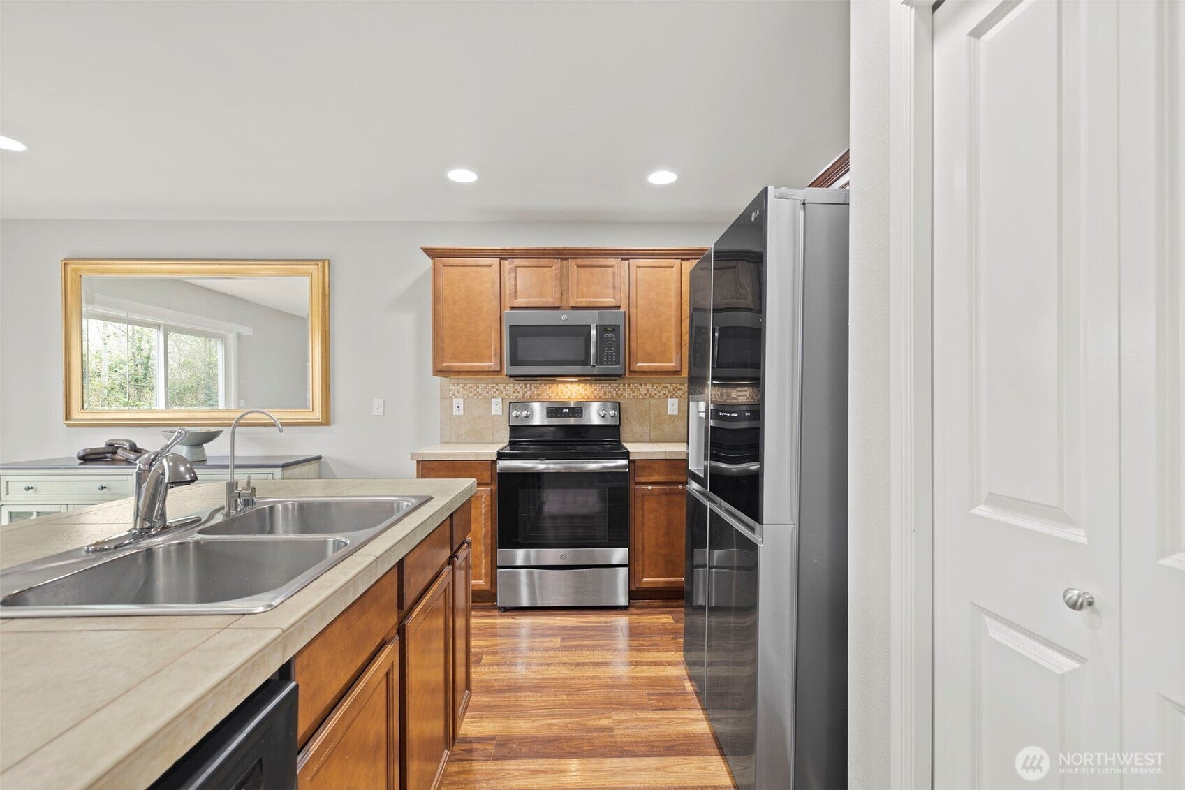Beautifully maintained EAST-FACING home in a highly desirable neighborhood North Creek, an ideal starter home in the Laurelcrest community by D.R. Horton. The light-filled interior is enhanced by its east-facing orientation. Step outside to enjoy a unique blend of openness and privacy.