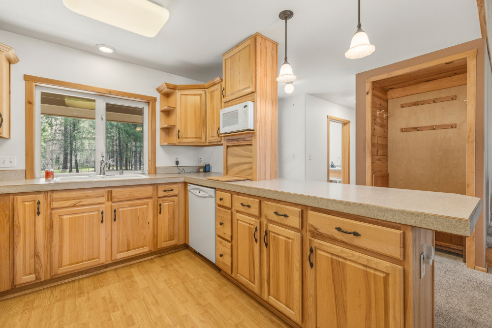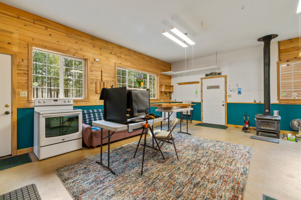 Beautiful custom home in Rocky Point! This thoughtfully designed property offers comfort,functionality, and peaceful surroundings on 5 lots totaling 1.61 acres. Built for full-time living and ideal for remote work, the home features radiant floor heating with a 3-zone glycol boiler, 3 full bathrooms, 36-inch doorways, and a roll-in shower for accessibility. The interior is finished with solid hickory cabinets and includes a whole-house vacuum system for added convenience. Enjoy the outdoors year-round from the composite front and rear covered decks. The property is equipped with a metal roof, cement board siding, backup generator, and full RV hookups, offering durability and flexibility. A standout feature is the versatile workshop, complete with a sink, shower, water heater, and wood stove, making it comfortable in any season--perfect as an artist studio, woodworking space, or hobby area.This home provides easy access to hiking, biking, canoeing, and bird watching! This is a must see!