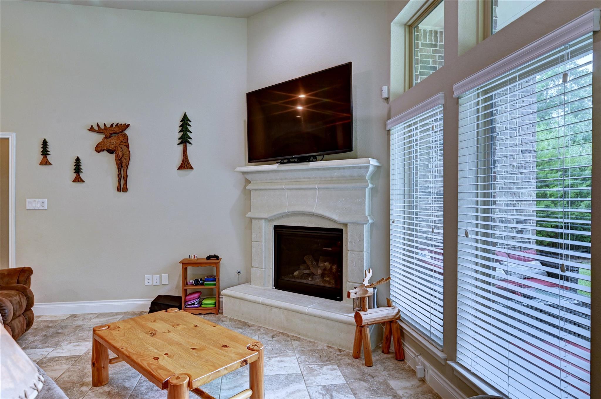 Nestled in the Woodforest Master Planned Community, this single-story Perry Home boasts a spacious lot on a peaceful cul-de-sac. The backyard oasis includes a pool, spa, summer kitchen, travertine walkways, and cabana - all backing up to a serene preserve with no rear neighbors. Inside, youll find 13ft. ceilings, a cozy gas fireplace, and tile flooring through out the home.