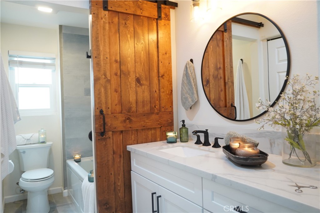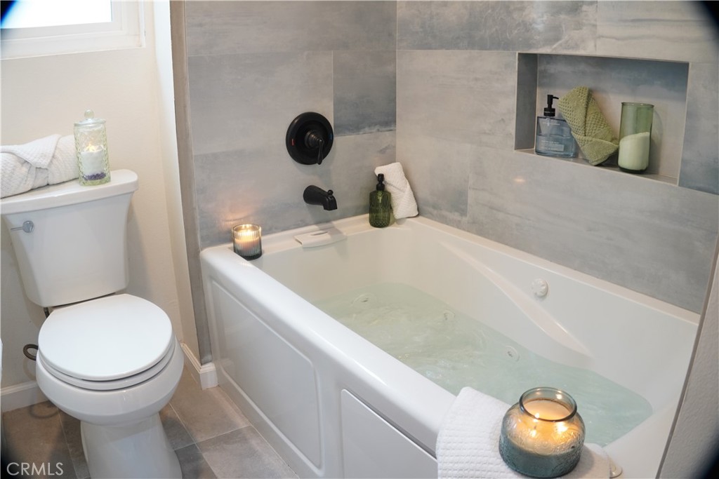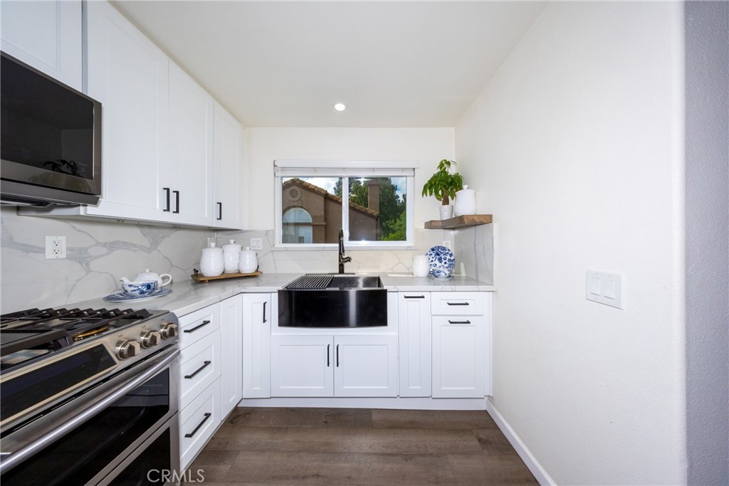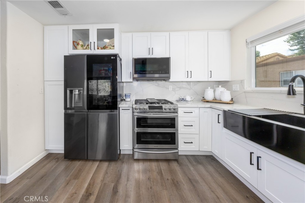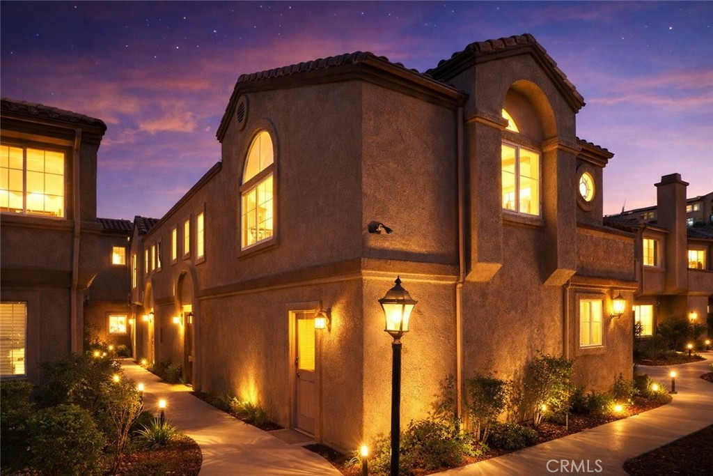 “Modern Perfection: The Ultimate Smart-Spa Retreat in Gordon Ranch”Step into a residence where “standard” was never an option. Nestled in a peaceful “silent zone” at the rear of the Sunset community, this 2-bedroom, 2-bathroom masterpiece seamlessly blends high-tech convenience with organic, spa-like luxury. The open-concept great room makes a bold statement with a floor-to-ceiling concrete-finish accent wall and a contemporary flush-set fireplace, while designer Calhoun apothecary-style lighting flows effortlessly across high-end, water-resistant flooring, hand-matched to real wood for a warm, maintenance-free lifestyle.The chef's kitchen is a symphony of seamless white with elegant grey-vein quartz, extending from the countertops to a full-height backsplash and matching window ledge. Highlights include a matte black Moen faucet with a hidden soap dispenser, along with an optional, top-of-the-line Smart Appliance Suite featuring an LG InstaView refrigerator and a Samsung Flex Duo dual-zone range.Unwind in the king-sized Primary Suite featuring a heated 8-jet Jacuzzi with endless hot water. The guest bathroom offers a true “Zen” experience with natural pebble flooring, Italian stone slabs, and Nano Glass technology that repels water spots for a consistently flawless finish.Every window has been upgraded to high-efficiency thermal glass and is framed with custom-sized blinds. Step through your private patio gate for direct access to miles of lush greenbelt trails leading toward the redwoods of Carbon Canyon. Located within the award-winning Ayala High School district and just minutes from The Shoppes and Costco, this is the move-in-ready upgrade your lifestyle deserves.