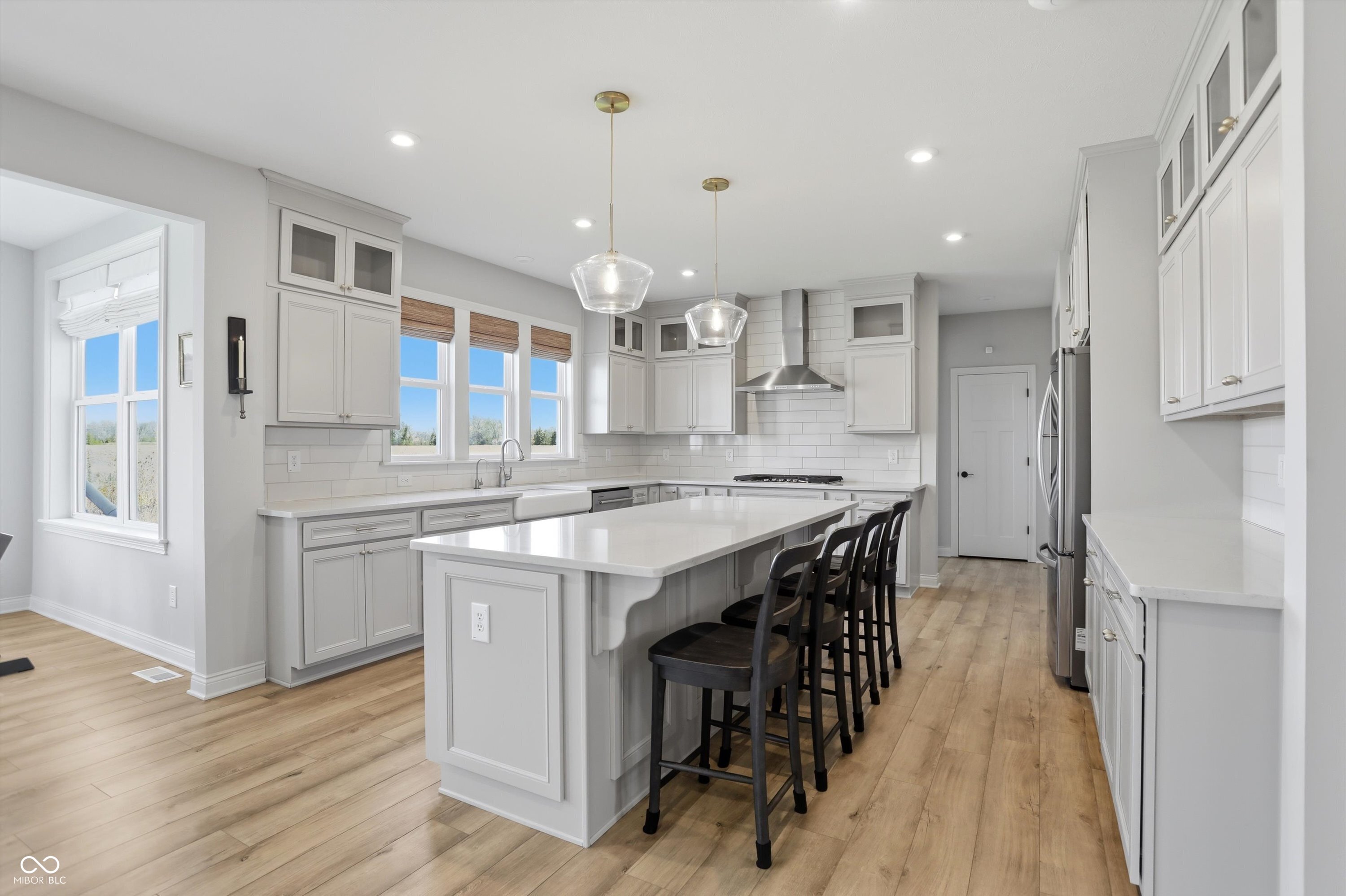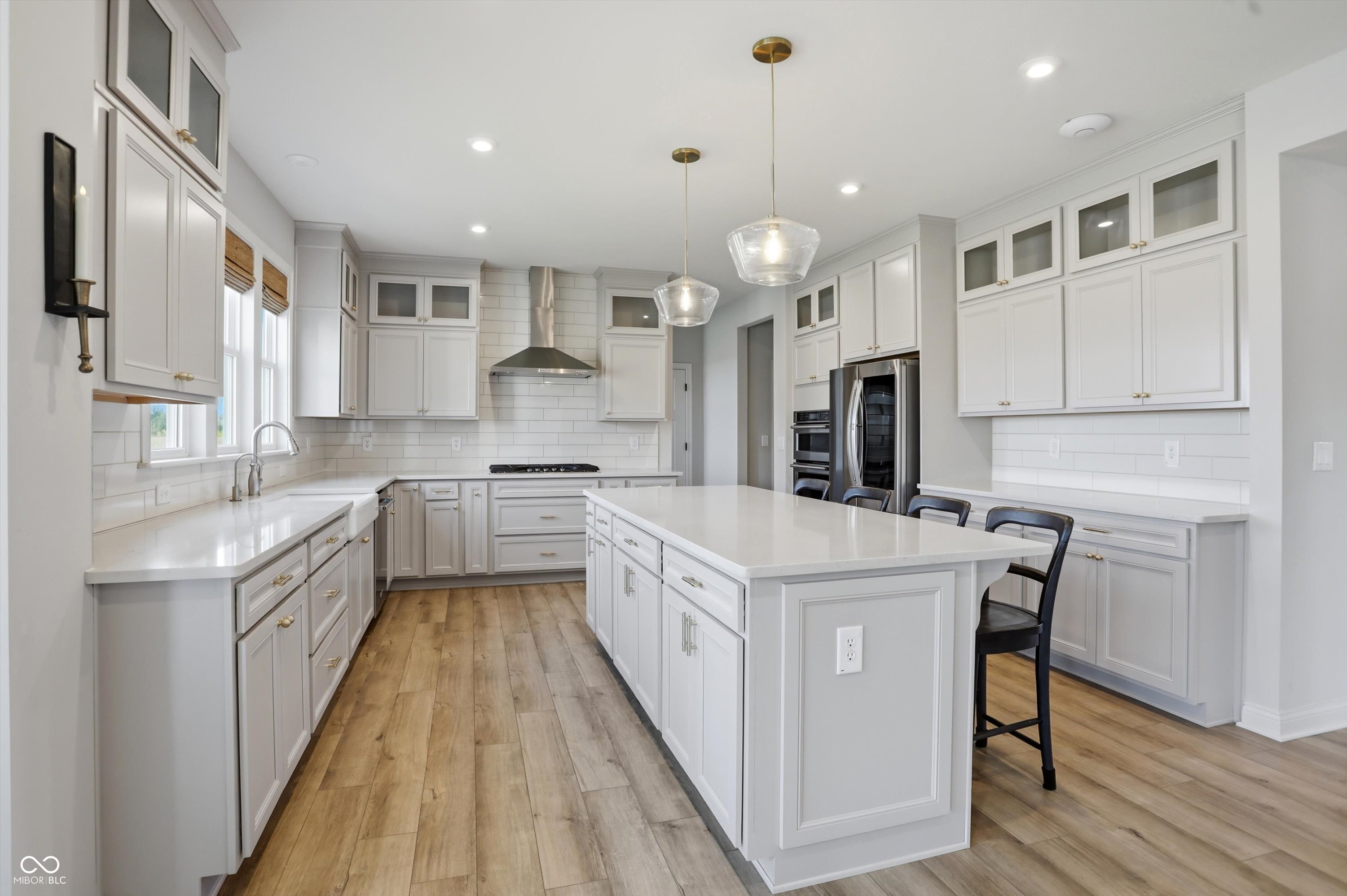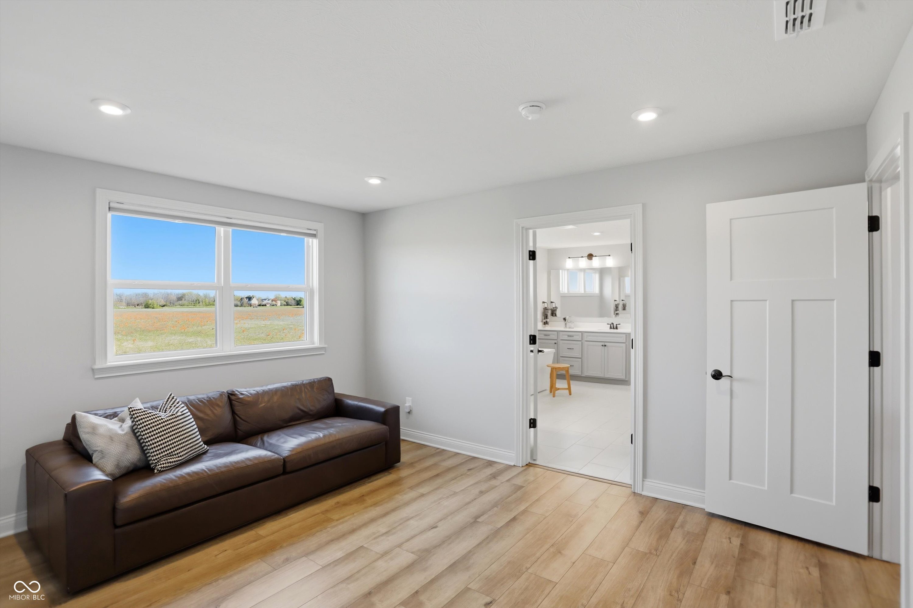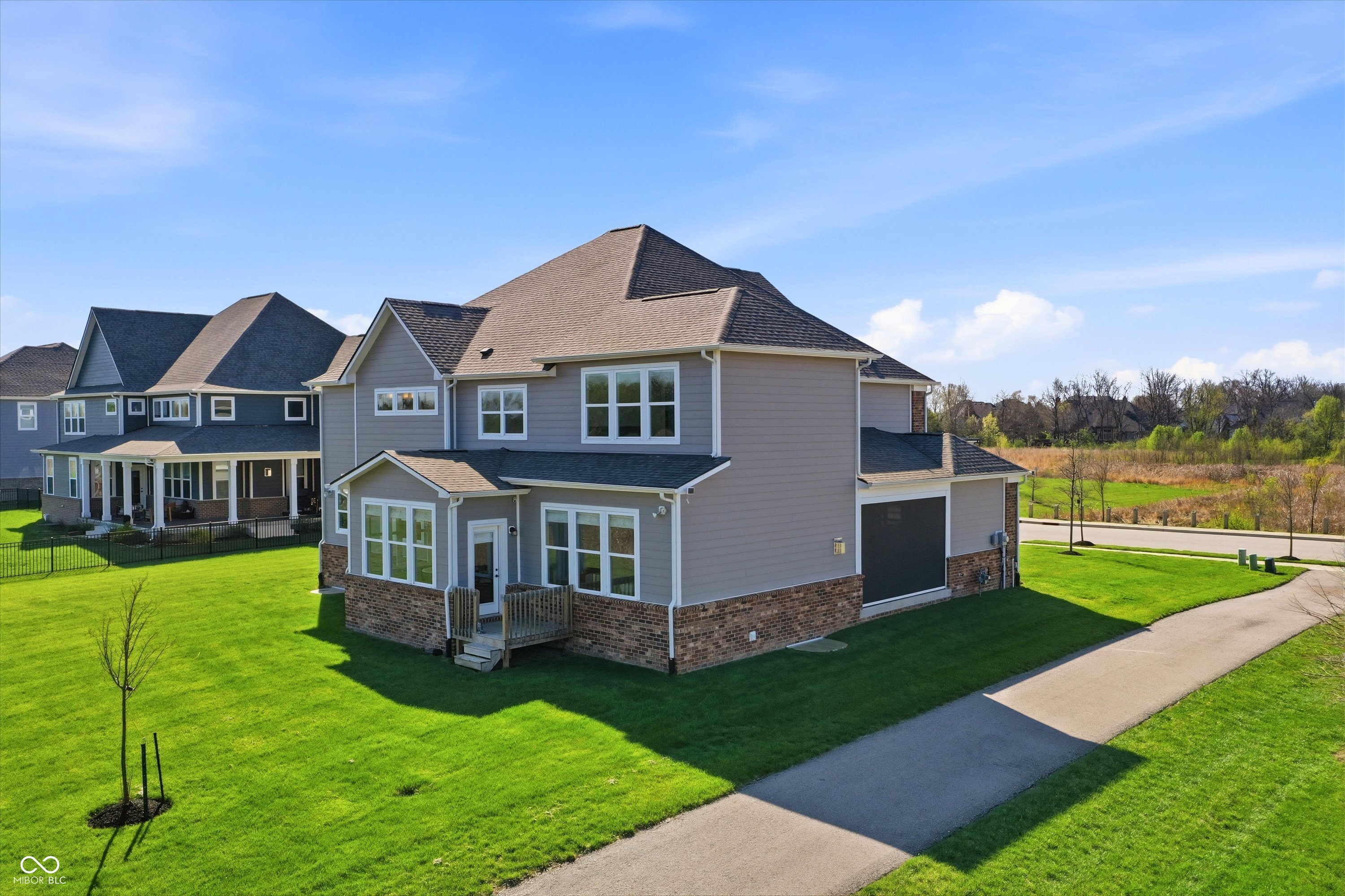Prestigious West Carmel luxurious single-family home, showcasing amazing design and top-tier materials. Great Room features an inviting atmosphere, centered around a cozy stone fireplace exuding warmth. Culinary endeavors are elevated in the Kitchen, featuring a stylish backsplash, gold light fixtures and hardware and kitchen island, all adorned with exquisite stone countertops. The space is equipped with a modern cooktop, stylish hood, and shaker cabinets, alongside a convenient double oven, ensuring every meal preparation is a delight. Each Bedroom provides a private sanctuary with the added indulgence of an en suite bathroom. The luxurious Primary Bathroom is designed for rejuvenation, offering a spacious walk in shower, relaxing soaking tub and a practical double vanity. This residence offers 5 bedrooms and 4 full bathrooms plus a convenient half bathroom. The expansive lot provides a serene setting overlooking a private field. The open floor plan creates an airy ambiance, while the dedicated laundry room adds practical convenience with a boot bench and walk-in closet for easy drop zone space. Relax or entertain in the welcoming screened-in patio with retractable screen. The daylight lower level is enhanced with a theater area, bonus space, 5th bedroom, full bathroom and ample storage. This meticulously cared for home offers an unparalleled living experience, designed for discerning individuals seeking both elegance and charm with a convenient location to all of West Carmel's schools, shopping, interstates and parks. If you love the outdoors, a visit to the 125 acre Coxhall Gardens and 120 acre West Park are nearby!
