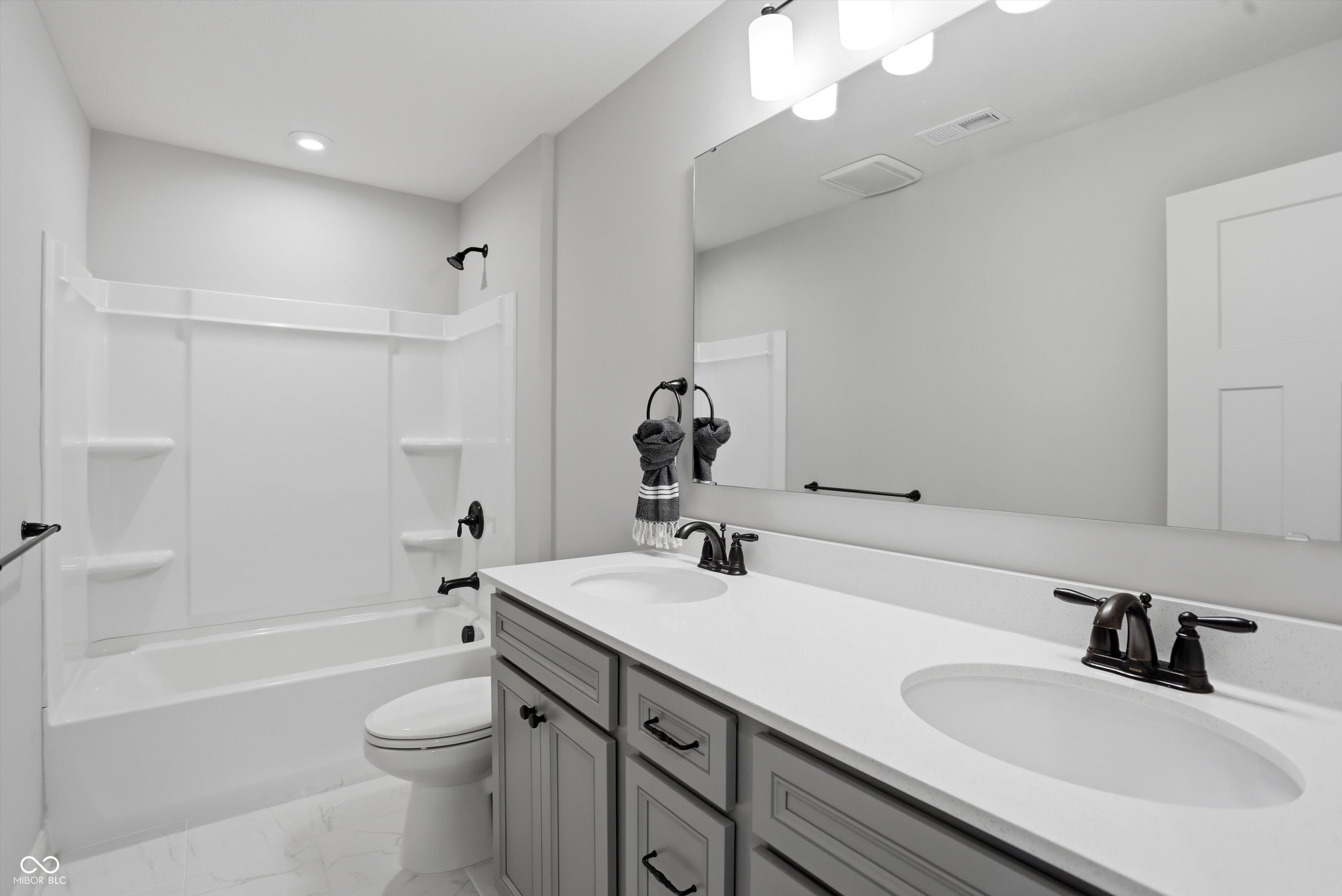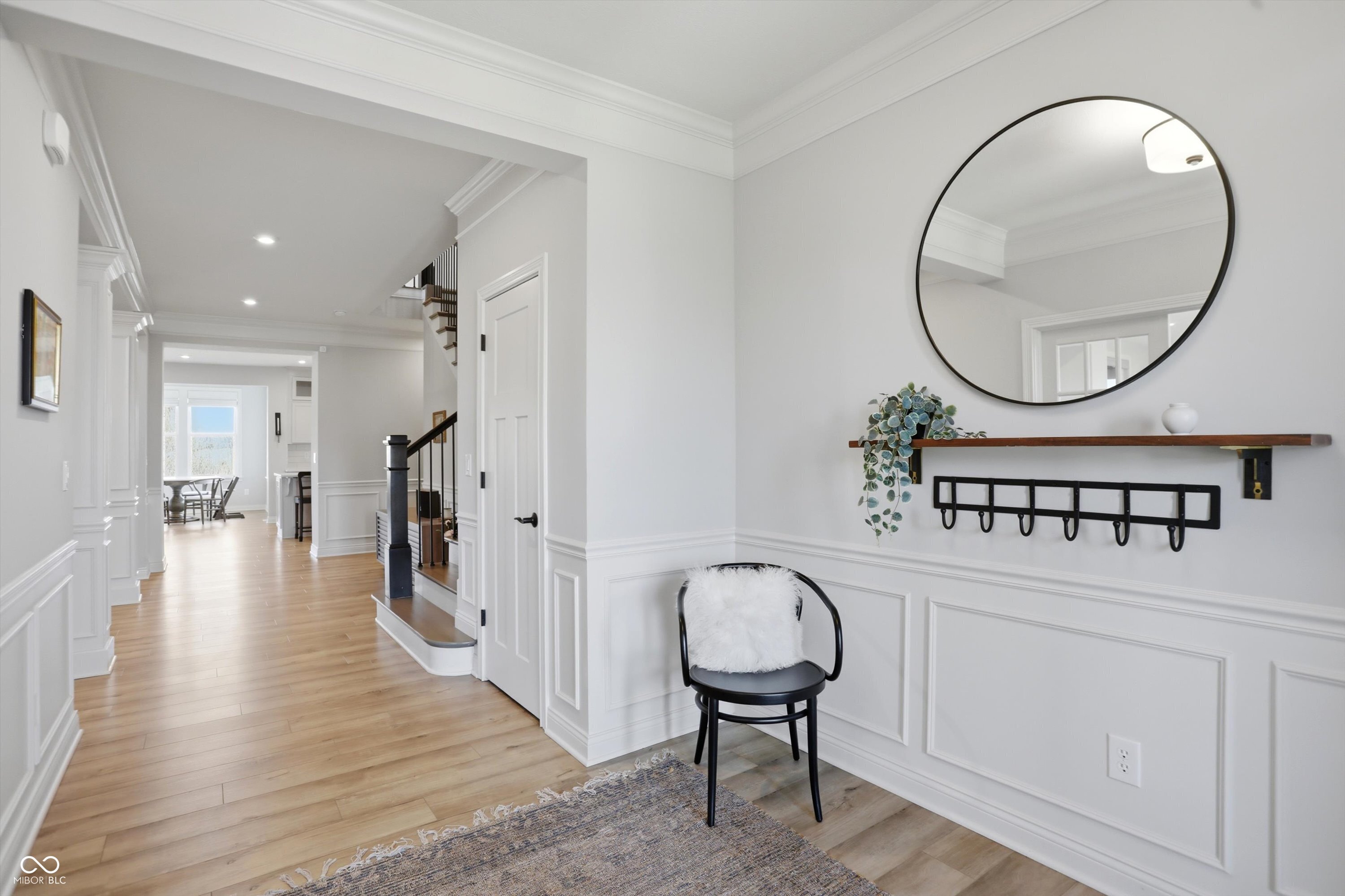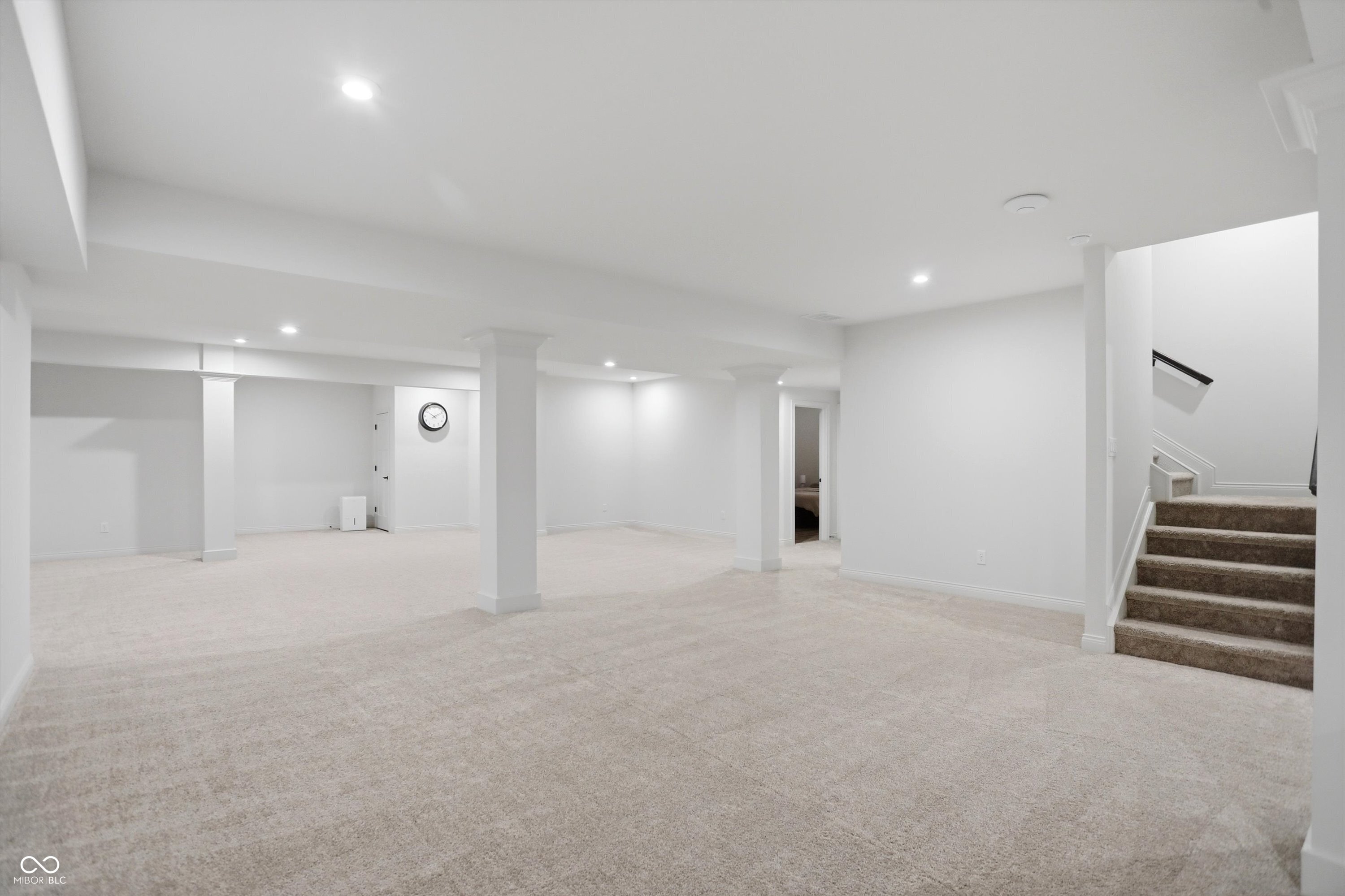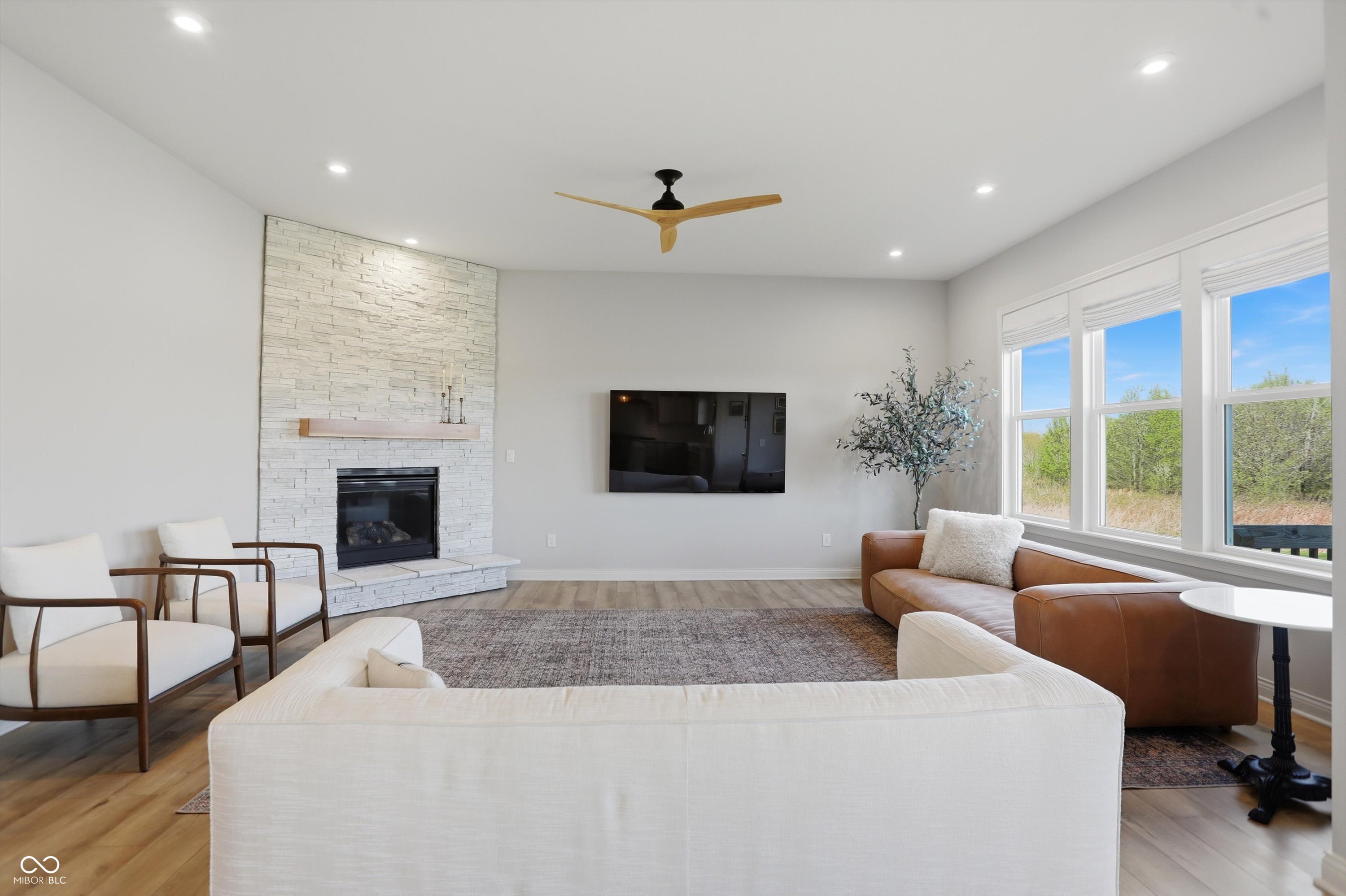 Prestigious West Carmel luxurious single-family home, showcasing amazing design and top-tier materials. Great Room features an inviting atmosphere, centered around a cozy stone fireplace exuding warmth. Culinary endeavors are elevated in the Kitchen, featuring a stylish backsplash, gold light fixtures and hardware and kitchen island, all adorned with exquisite stone countertops. The space is equipped with a modern cooktop, stylish hood, and shaker cabinets, alongside a convenient double oven, ensuring every meal preparation is a delight. Each Bedroom provides a private sanctuary with the added indulgence of an en suite bathroom. The luxurious Primary Bathroom is designed for rejuvenation, offering a spacious walk in shower, relaxing soaking tub and a practical double vanity. This residence offers 5 bedrooms and 4 full bathrooms plus a convenient half bathroom. The expansive lot provides a serene setting overlooking a private field. The open floor plan creates an airy ambiance, while the dedicated laundry room adds practical convenience with a boot bench and walk-in closet for easy drop zone space. Relax or entertain in the welcoming screened-in patio with retractable screen. The daylight lower level is enhanced with a theater area, bonus space, 5th bedroom, full bathroom and ample storage. This meticulously cared for home offers an unparalleled living experience, designed for discerning individuals seeking both elegance and charm with a convenient location to all of West Carmel's schools, shopping, interstates and parks. If you love the outdoors, a visit to the 125 acre Coxhall Gardens and 120 acre West Park are nearby!