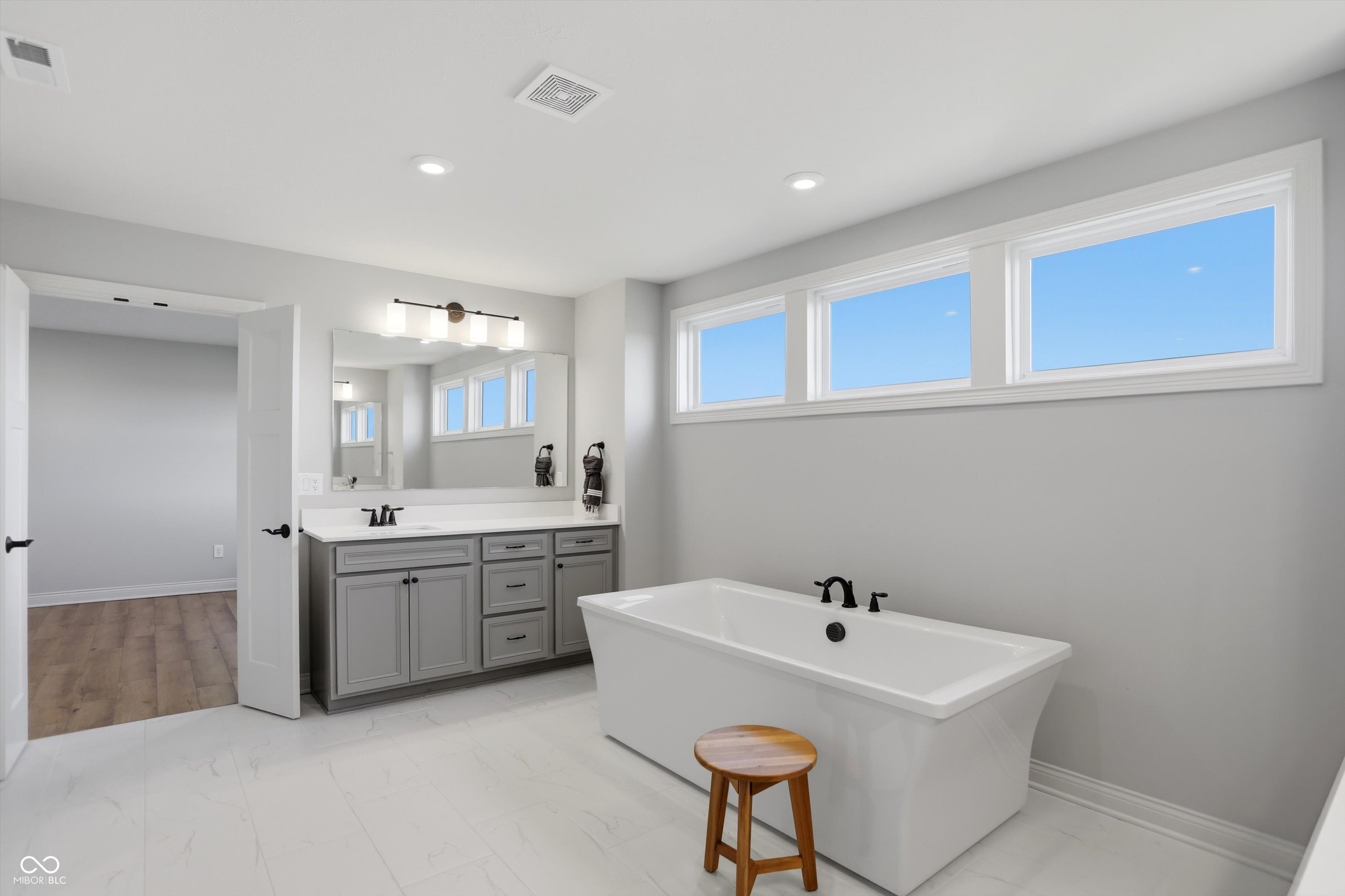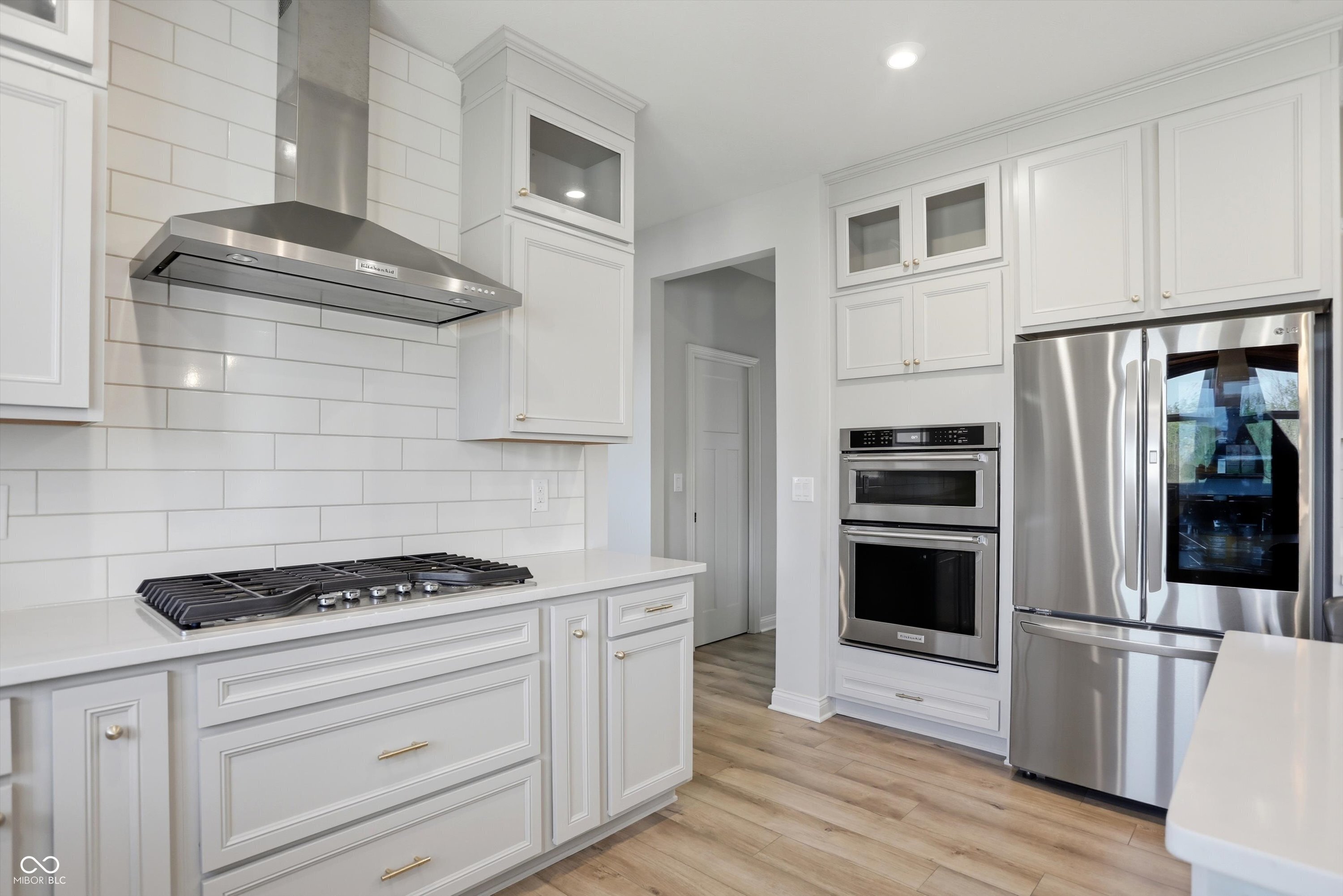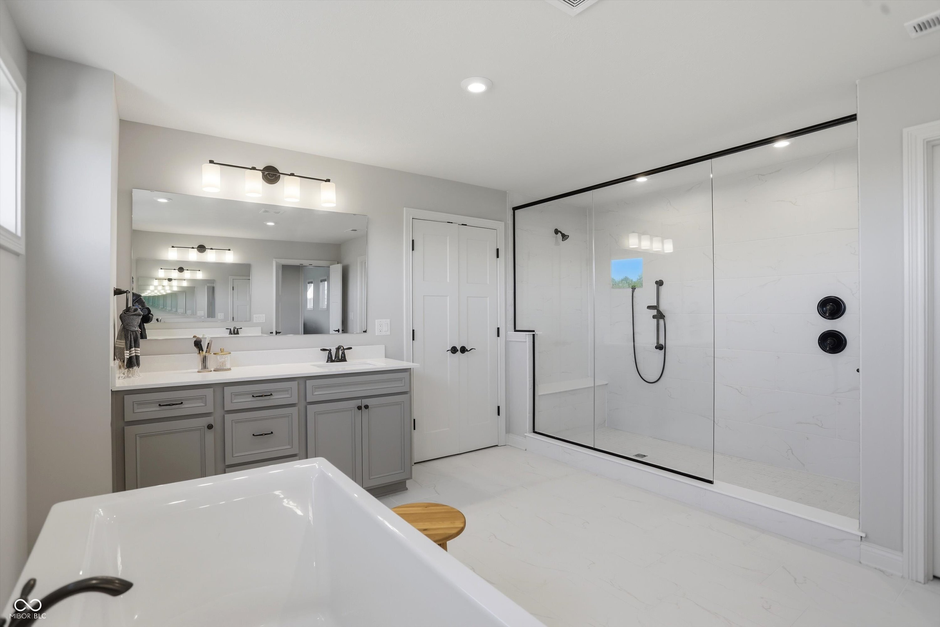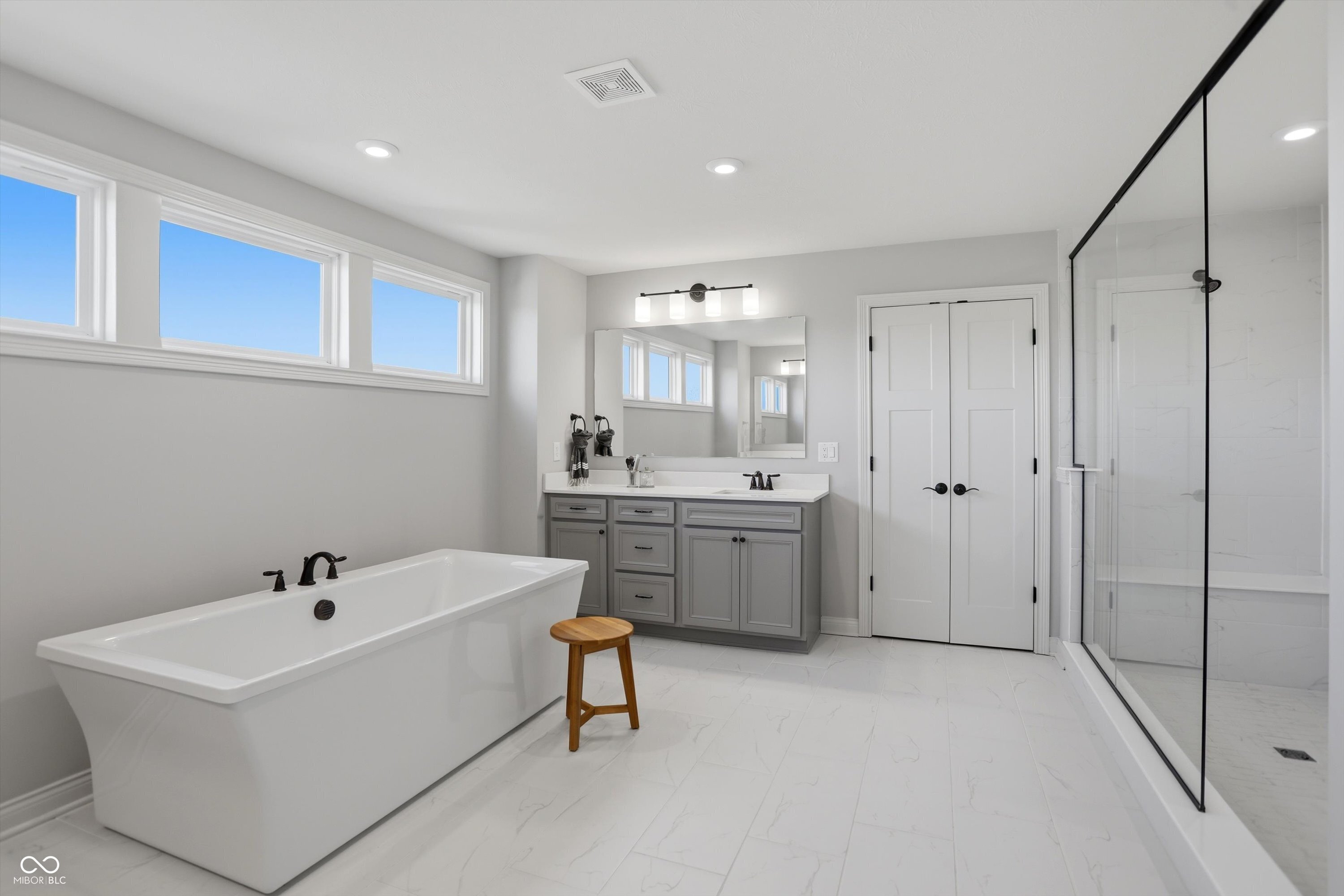 Prestigious West Carmel luxurious single-family home, showcasing amazing design and top-tier materials. Great Room features an inviting atmosphere, centered around a cozy stone fireplace exuding warmth. Culinary endeavors are elevated in the Kitchen, featuring a stylish backsplash, gold light fixtures and hardware and kitchen island, all adorned with exquisite stone countertops. The space is equipped with a modern cooktop, stylish hood, and shaker cabinets, alongside a convenient double oven, ensuring every meal preparation is a delight. Each Bedroom provides a private sanctuary with the added indulgence of an en suite bathroom. The luxurious Primary Bathroom is designed for rejuvenation, offering a spacious walk in shower, relaxing soaking tub and a practical double vanity. This residence offers 5 bedrooms and 4 full bathrooms plus a convenient half bathroom. The expansive lot provides a serene setting overlooking a private field. The open floor plan creates an airy ambiance, while the dedicated laundry room adds practical convenience with a boot bench and walk-in closet for easy drop zone space. Relax or entertain in the welcoming screened-in patio with retractable screen. The daylight lower level is enhanced with a theater area, bonus space, 5th bedroom, full bathroom and ample storage. This meticulously cared for home offers an unparalleled living experience, designed for discerning individuals seeking both elegance and charm with a convenient location to all of West Carmel's schools, shopping, interstates and parks. If you love the outdoors, a visit to the 125 acre Coxhall Gardens and 120 acre West Park are nearby!