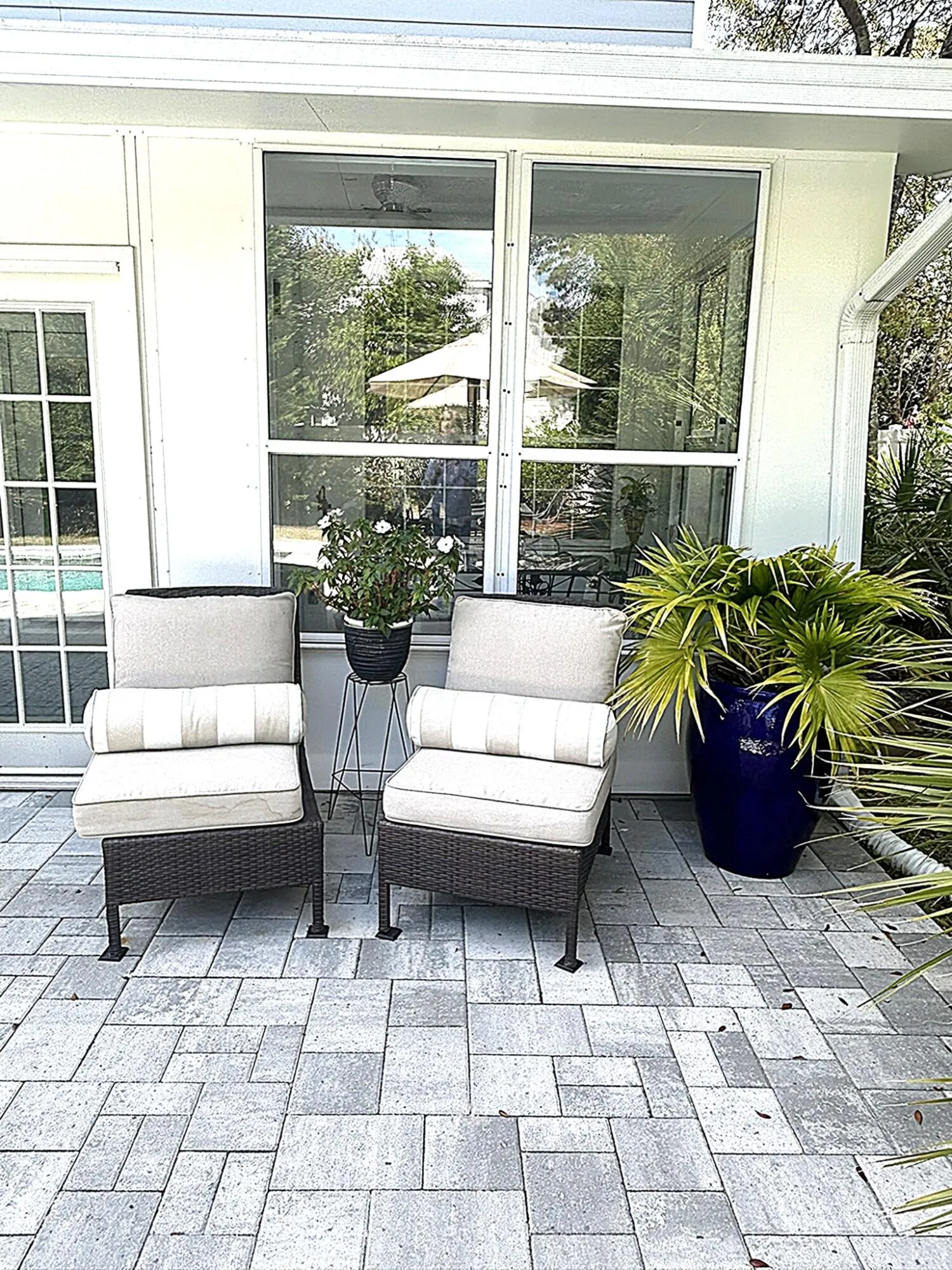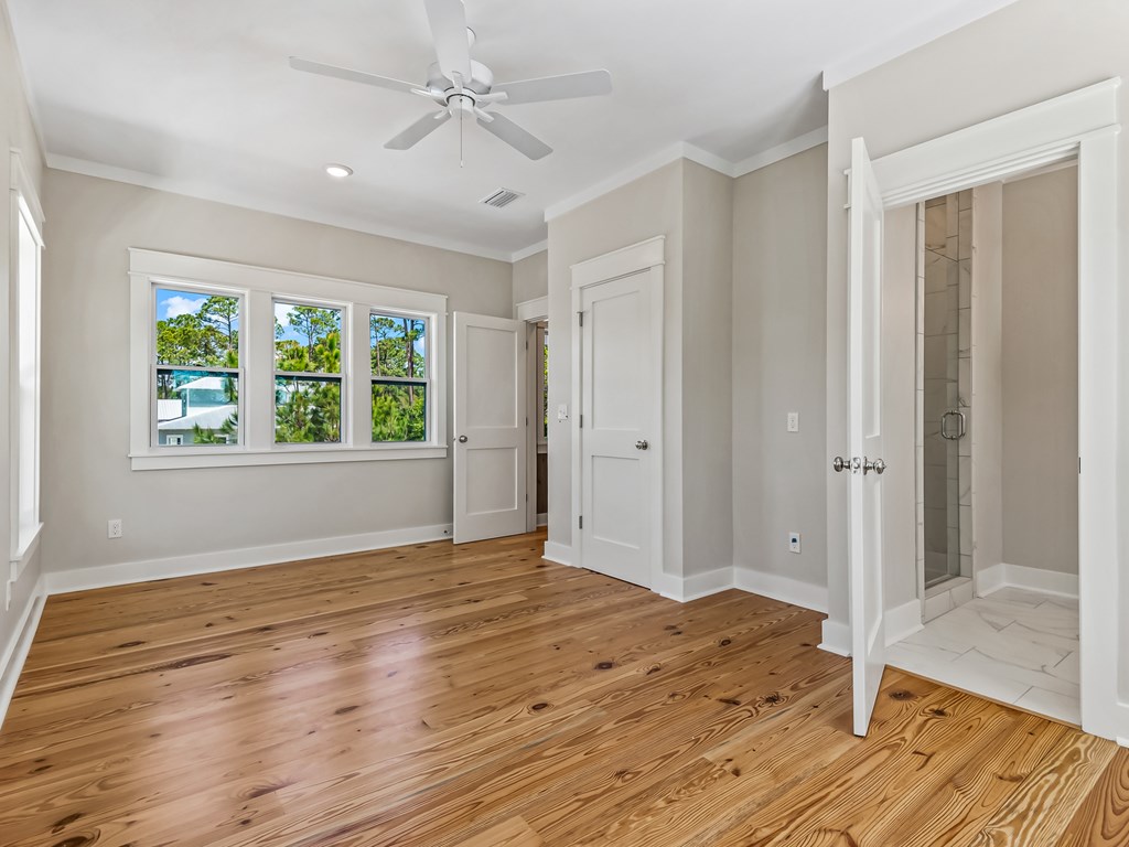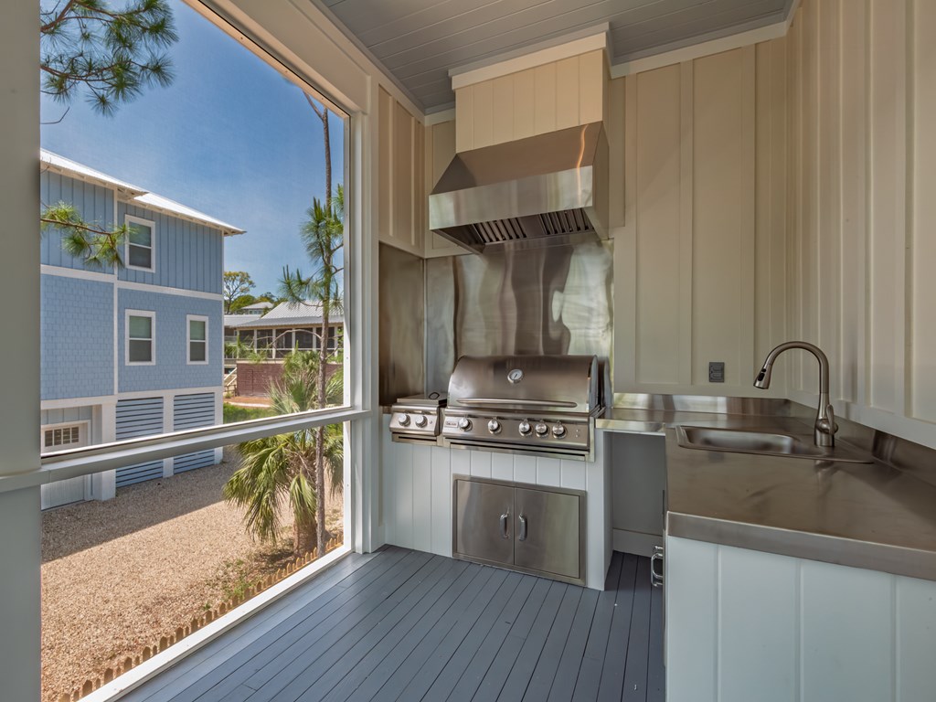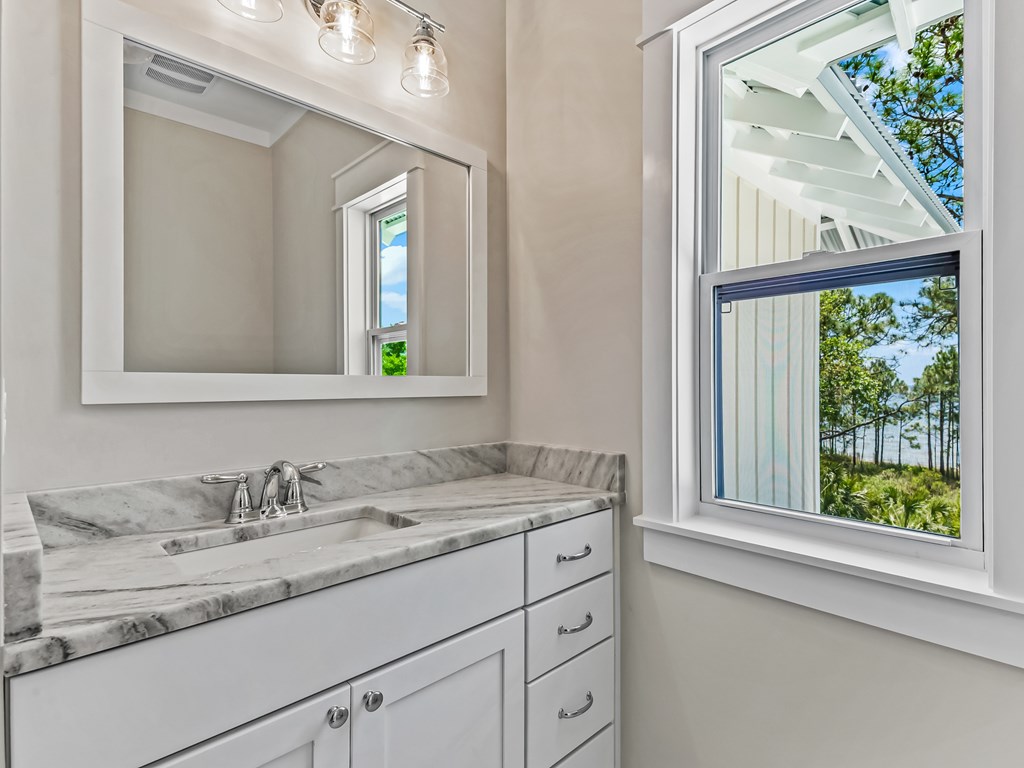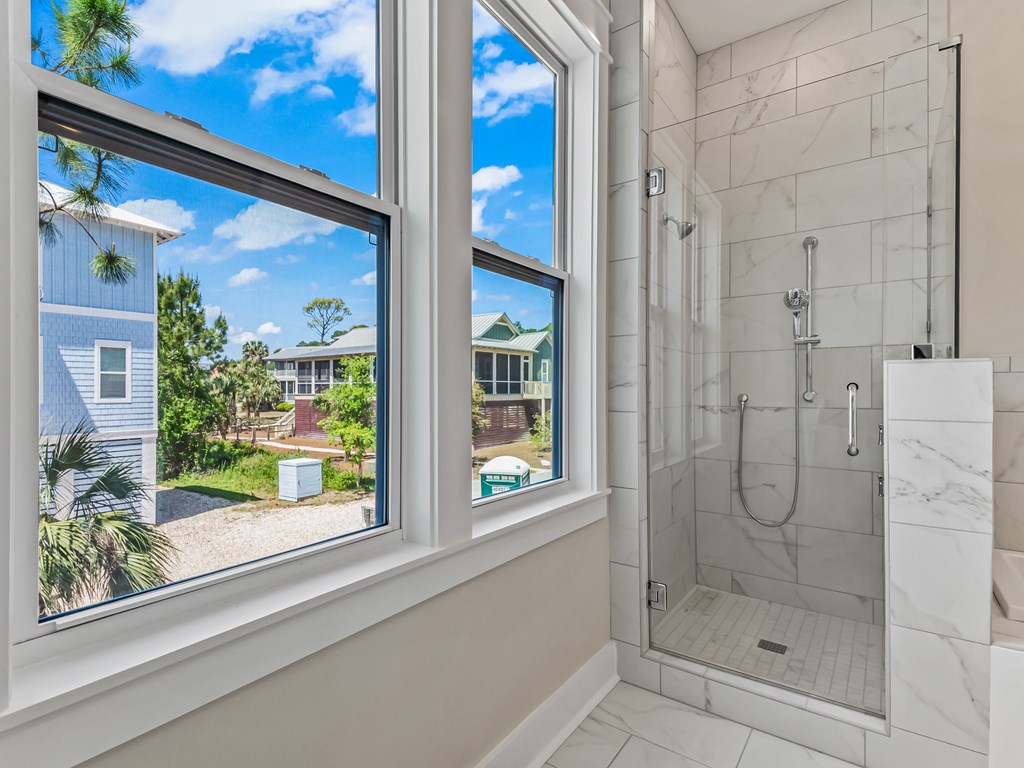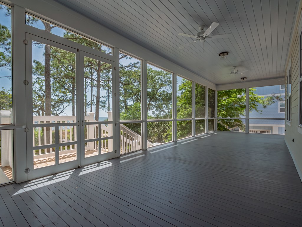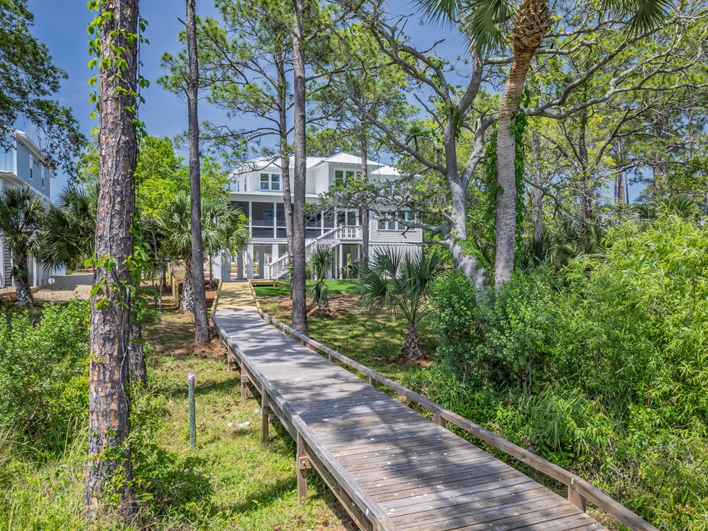 Just steps from the sugar-white sands and emerald waters that define the magic of 30A, this beautifully maintained 3BR, 2.5BA home in the quiet community of Seabreeze offers exceptional coastal living. Just a 425-yard stroll to the beach with deeded and public access, the 2,000 sq ft layout is light, bright with high ceilings and an open kitchen. The front room with a beautiful bay-window can be an office, library, or dining room. A spacious Florida room overlooks a private backyard with pool and pavered patio, and upstairs the primary suite offers French doors, an ensuite bath, and walk-in closet. With timeless design, peaceful surroundings, and a motivated seller, this is a rare opportunity to enjoy the 30A lifestyle at its finest. As you enter, a welcoming foyer sets the tone for the home, with a stained-glass window above the entry filling the stairwell and upper level with natural light and character. The main level also includes a convenient half bath, laundry closet, and access to a detached oversized one-car garage via a side entry. Upstairs, two guest bedrooms are thoughtfully connected by a Jack and Jill bath, offering both comfort and functionality for family or guests. Seabreeze is known for its peaceful, low-density setting with the added benefit of being rental-restricted, creating a more private and residential feel. In addition to convenient public beach access, residents enjoy a gated deeded beach access exclusive to the community. A scenic community trail on the west side leads to Camp Creek Lake, where a dock provides the perfect setting for sunset views, kayaking, or paddleboarding--one of 30As most special and unique coastal dune lake experiences.