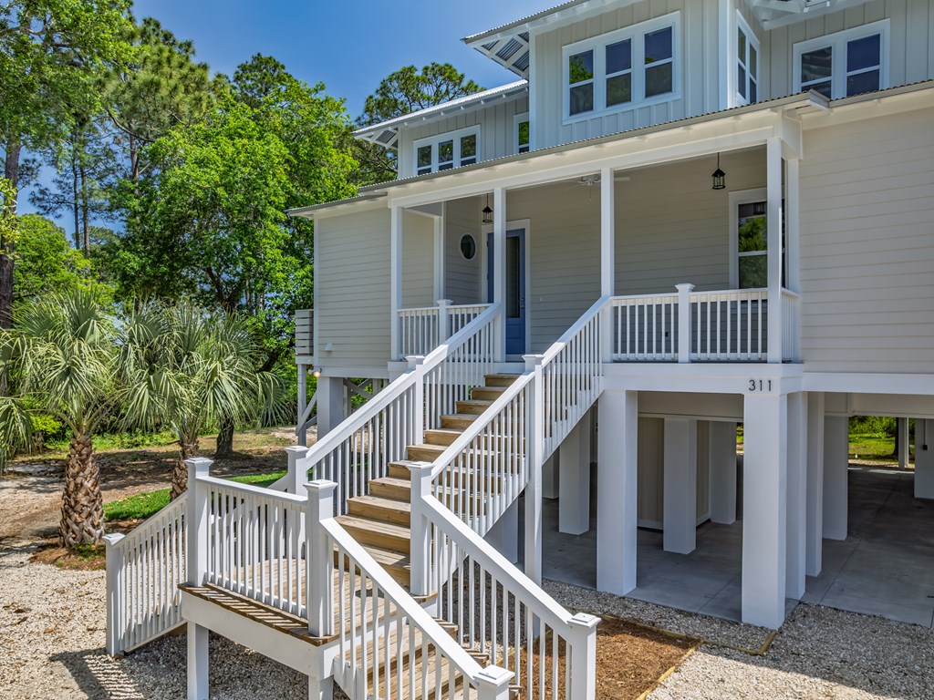Welcome to 311 Trails End Way, the crown jewel of SummerCamp Beach in St. Teresa, Florida. Set on an extraordinary 1.27-acre Gulf-front homesite with 137 feet of prime white sandy beach frontage, this newly constructed coastal retreat offers a rare combination of luxury, privacy, craftsmanship, and timeless Old Florida character.