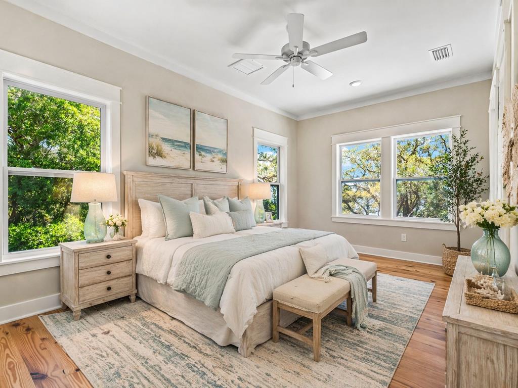 Just steps from the sugar-white sands and emerald waters that define the magic of 30A, this beautifully maintained 3BR, 2.5BA home in the quiet community of Seabreeze offers exceptional coastal living. Just a 425-yard stroll to the beach with deeded and public access, the 2,000 sq ft layout is light, bright with high ceilings and an open kitchen.