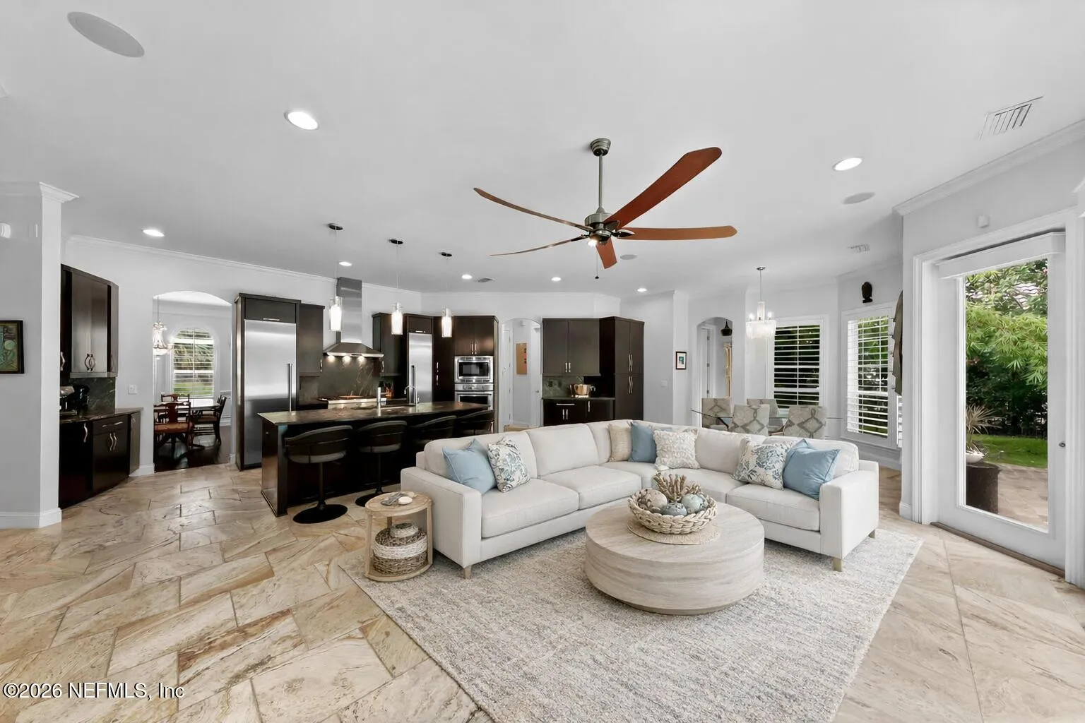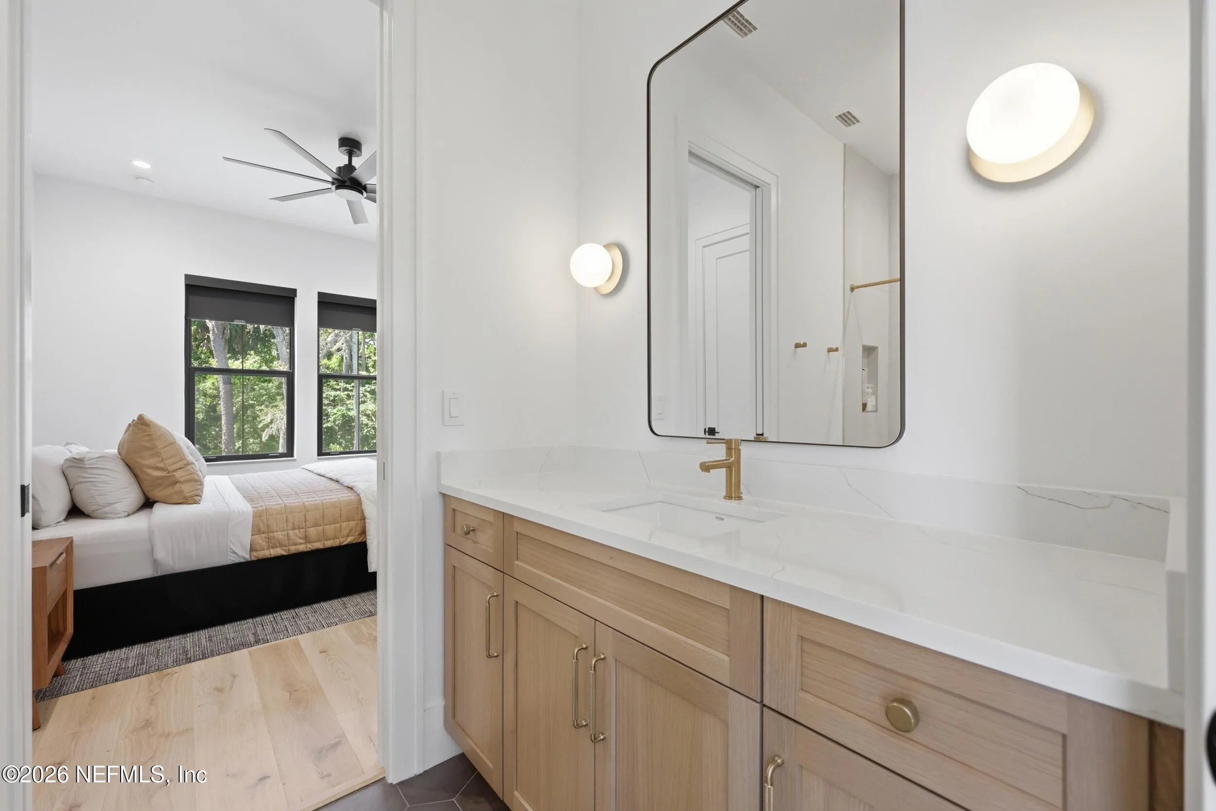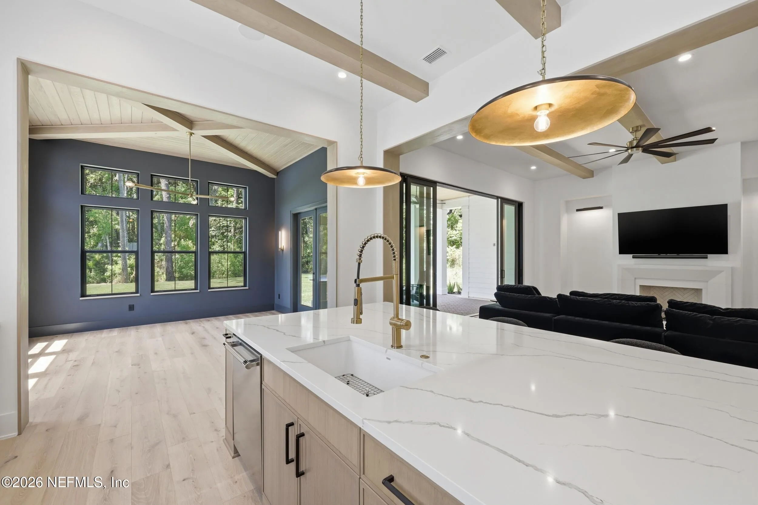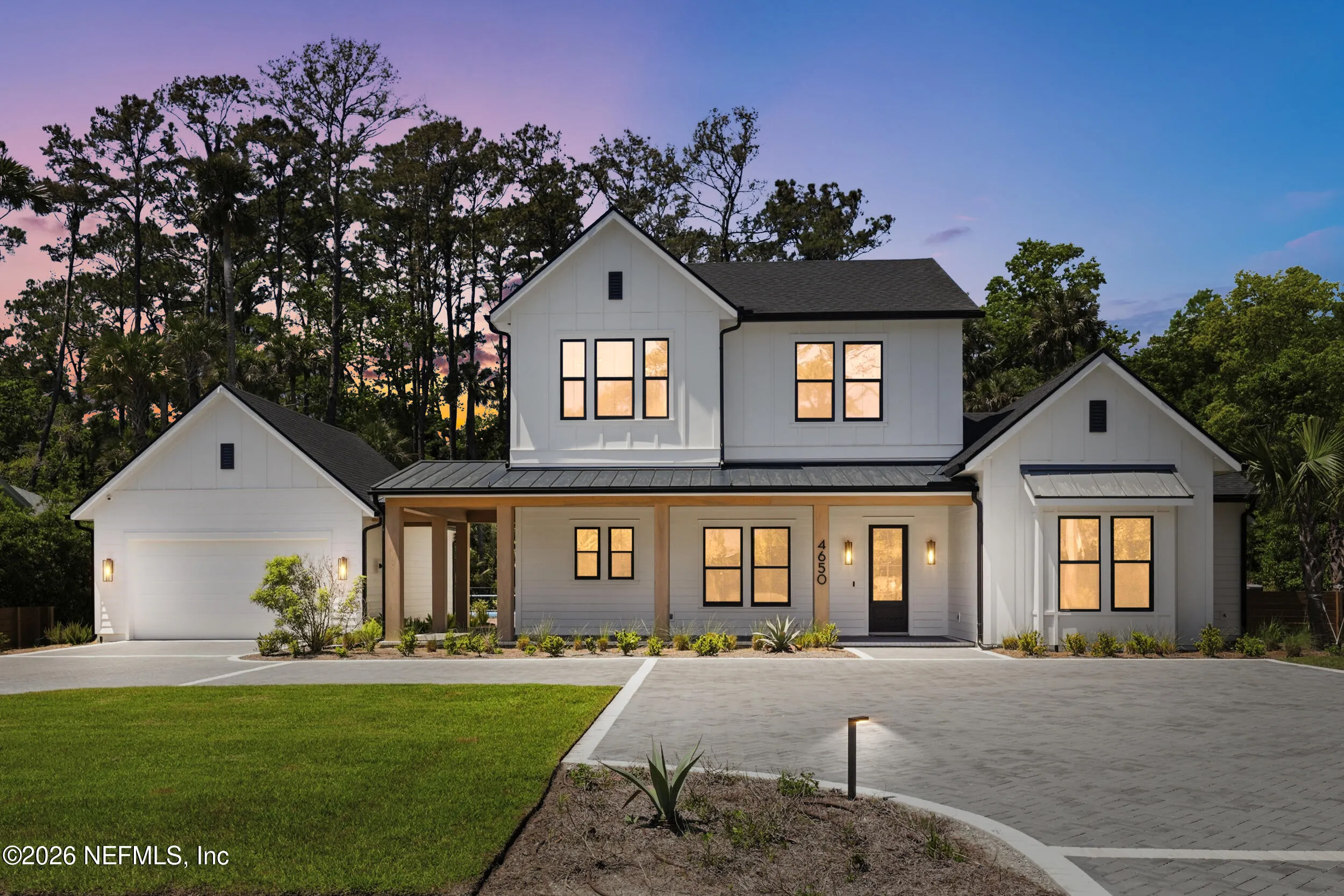 There is a different rhythm to this stretch of Palm Valley Road. More space. More privacy. A setting that feels removed, yet still connected to everything that defines Ponte Vedra Beach. Set on more than 1.05 acres, this modern farmhouse, completed just last May, offers something increasingly rare, the feeling of new construction paired with land, privacy, and room to live beyond the walls of the home. A place where mornings feel quiet, evenings unfold naturally, and outdoor living becomes part of your everyday rhythm. From the moment you arrive, the setting defines the experience. Mature trees create a sense of seclusion, while the home itself opens with light, volume, and an effortless flow that feels both refined and livable. Inside, more than 3,800 square feet unfolds with wide plank wood floors, soaring ceilings, and a natural connection to the outdoors at every turn. At the center, the kitchen is designed as both a gathering place and a workspace, anchored by an oversized island, Thermador appliances, and a butler pantry tucked just beyond, allowing everything to function beautifully behind the scenes. Living and dining spaces move seamlessly together, extending toward the covered patio where mornings begin quietly and evenings settle in with ease. The layout is both thoughtful and highly functional. The primary suite is located on the main level, along with a second bedroom and a dedicated office, creating flexibility for guests or working from home. The primary suite itself is a retreat, with a spa like bath and a calm connection to the landscape beyond. A spacious laundry room supports the rhythm of daily life without interruption. Upstairs, three additional bedrooms, two full baths, and a loft come together to create a separate living space that feels ideal for family or guests. Whether used as a media room, playroom, or quiet retreat, the loft adds another dimension to the homes design. Outside, the experience shifts. The scale of the land allows for something rarely found in Ponte Vedra Beach, space not just to design, but to live. A newly installed pickleball and basketball court introduces a natural gathering place, where afternoons turn into evenings and time with friends and family unfolds with ease. And still, there is room for more. The remaining acreage offers a blank canvas for a custom pool, guest house, or a fully realized outdoor living environment, all without compromise. And yet, for all of its space and privacy, you are only minutes from the beach, TPC Sawgrass, and the areas most sought after dining and shopping. Zoned for top rated St. Johns County schools, the location offers both convenience and long term value. A newer home, land to grow into, and a setting that allows you to live differently. This is where space, design, and lifestyle come together in a way that is no longer easy to find.