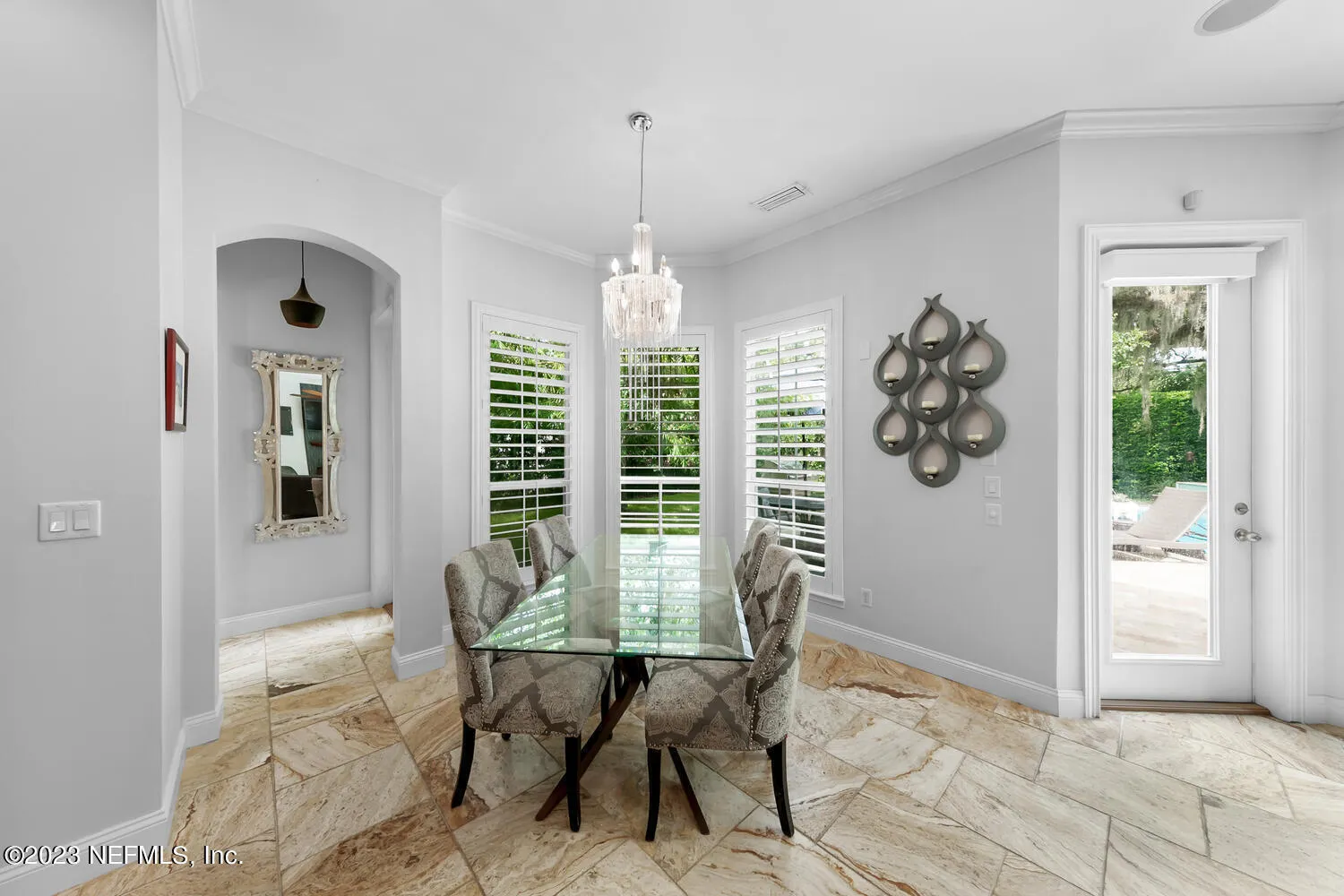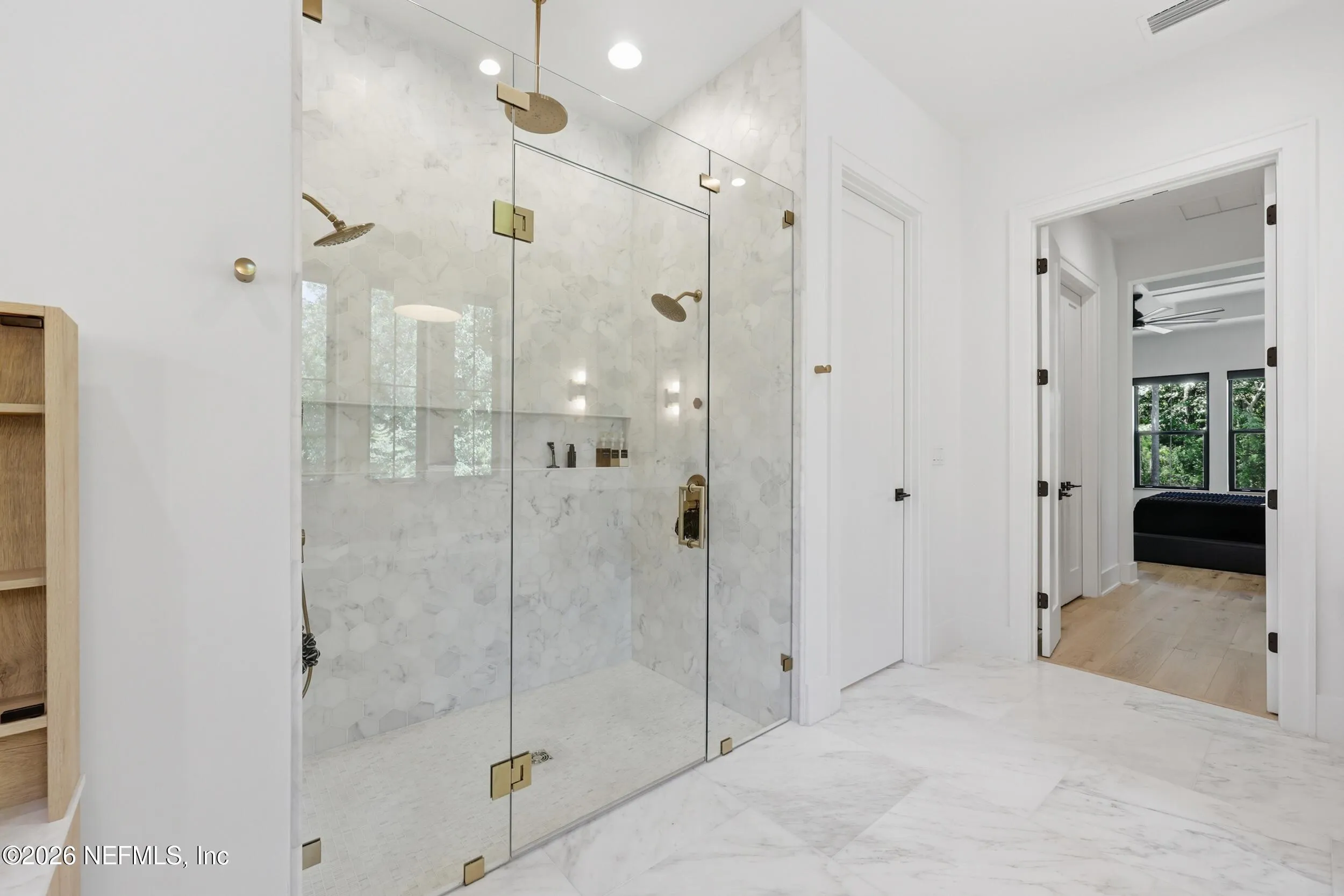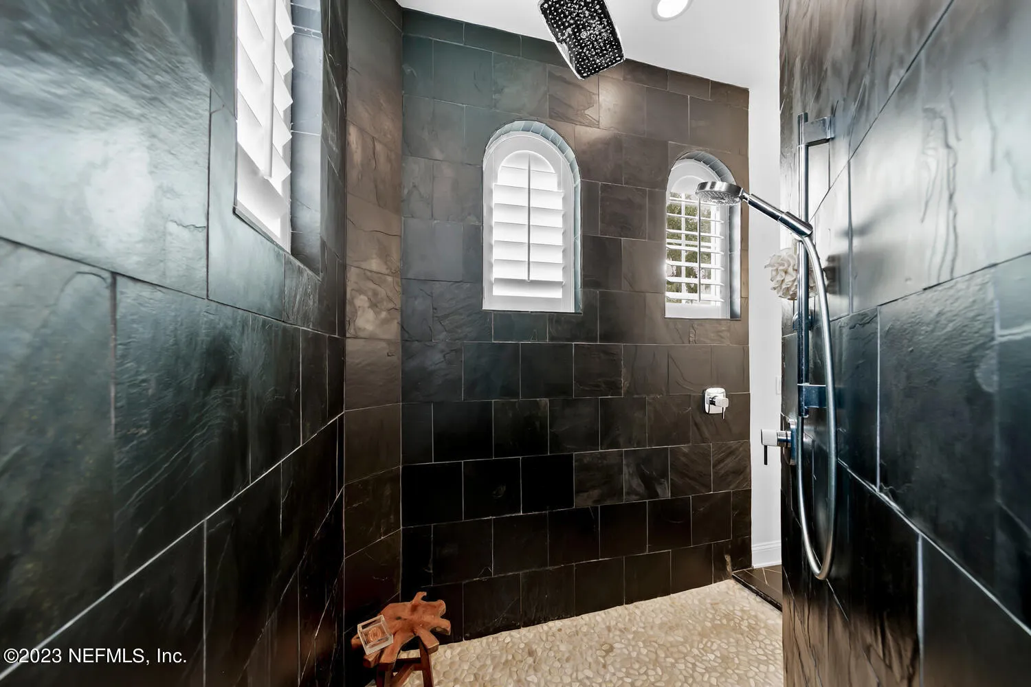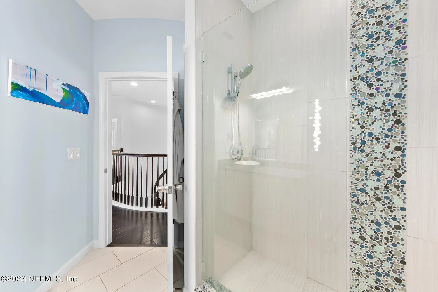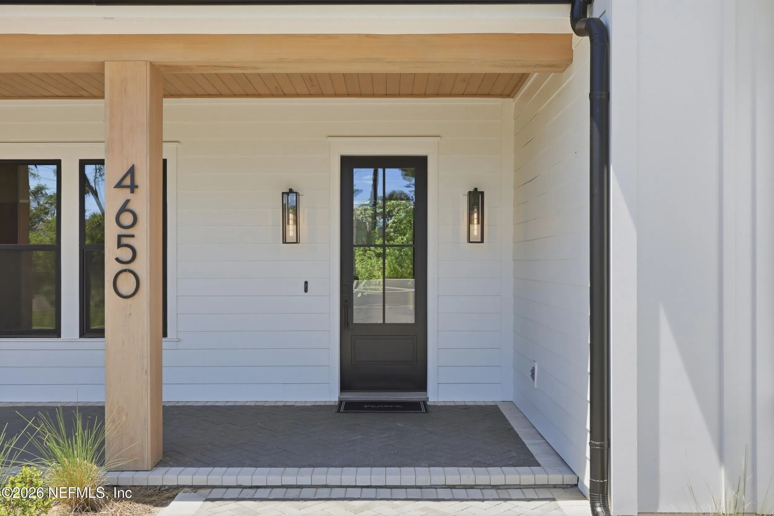 POOL PARTY READY! Welcome to this luxurious modern home, a five minute walk from Micklers Beach in the exclusive gated community of River Marsh, an intimate neighborhood with only 28 homes. Nestled among towering oaks, this custom-built residence was thoughtfully designed with high-end finishes and artist-commissioned details. The home offers an open-concept layout, soaring ceilings, and an abundance of natural light, creating a sophisticated yet inviting atmosphere. Upon entry, a grand staircase and formal living and dining areas set the stage for elegance. The chefs kitchen is a highlight, featuring Thermador appliances, an oversized island, leathered granite countertops, and ample storage. It seamlessly flows into the spacious family room, which opens to the resort-style pool and outdoor entertaining area through sliding glass doors. A flex space, ideal for a bar or office area, also provides access to a covered outdoor patio. The private primary suite on the first floor offers an impressive spa-like bath and generously sized his-and-hers closets. Upstairs, three additional bedrooms and two baths include a guest suite with an ensuite bath and a catwalk leading to a private balcony. Beautifully designed bathrooms showcase unique tile work and statement lighting. Outdoor living is just as exceptional, with a rarely found spacious front and backyard. The private backyard oasis is perfect for relaxation and entertaining. River Marsh residents enjoy access to a private dock on Lake Guana, ideal for paddleboarding and kayaking. Conveniently located near the beach, shopping, dining, and top-rated St. Johns County schools, this home offers an unparalleled blend of luxury, privacy, and coastal living. Schedule a private tour today. Seller requires proof of funds or pre-approval before showing.