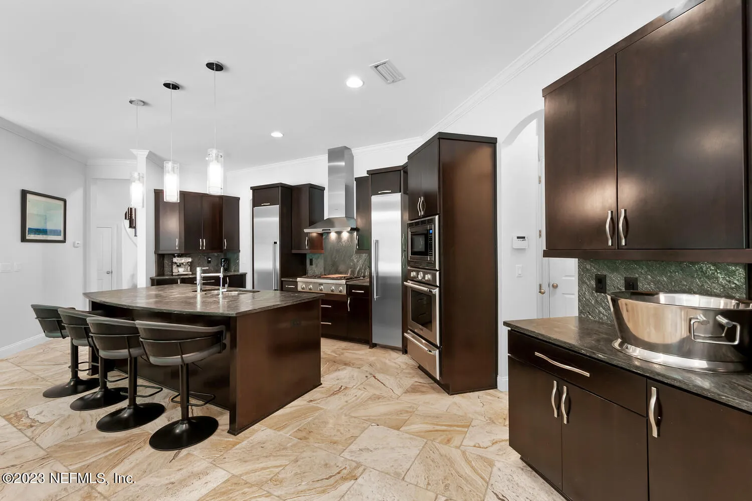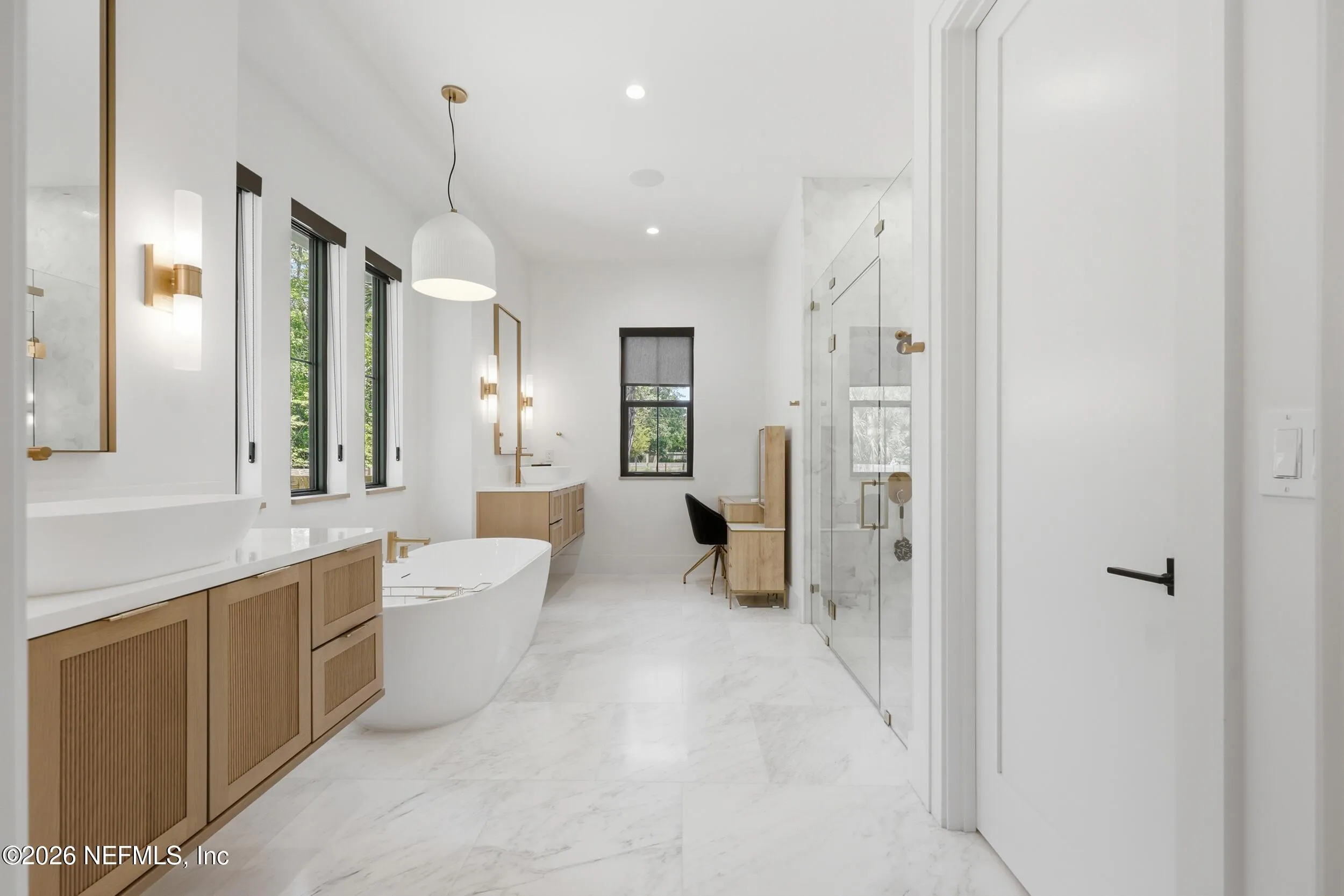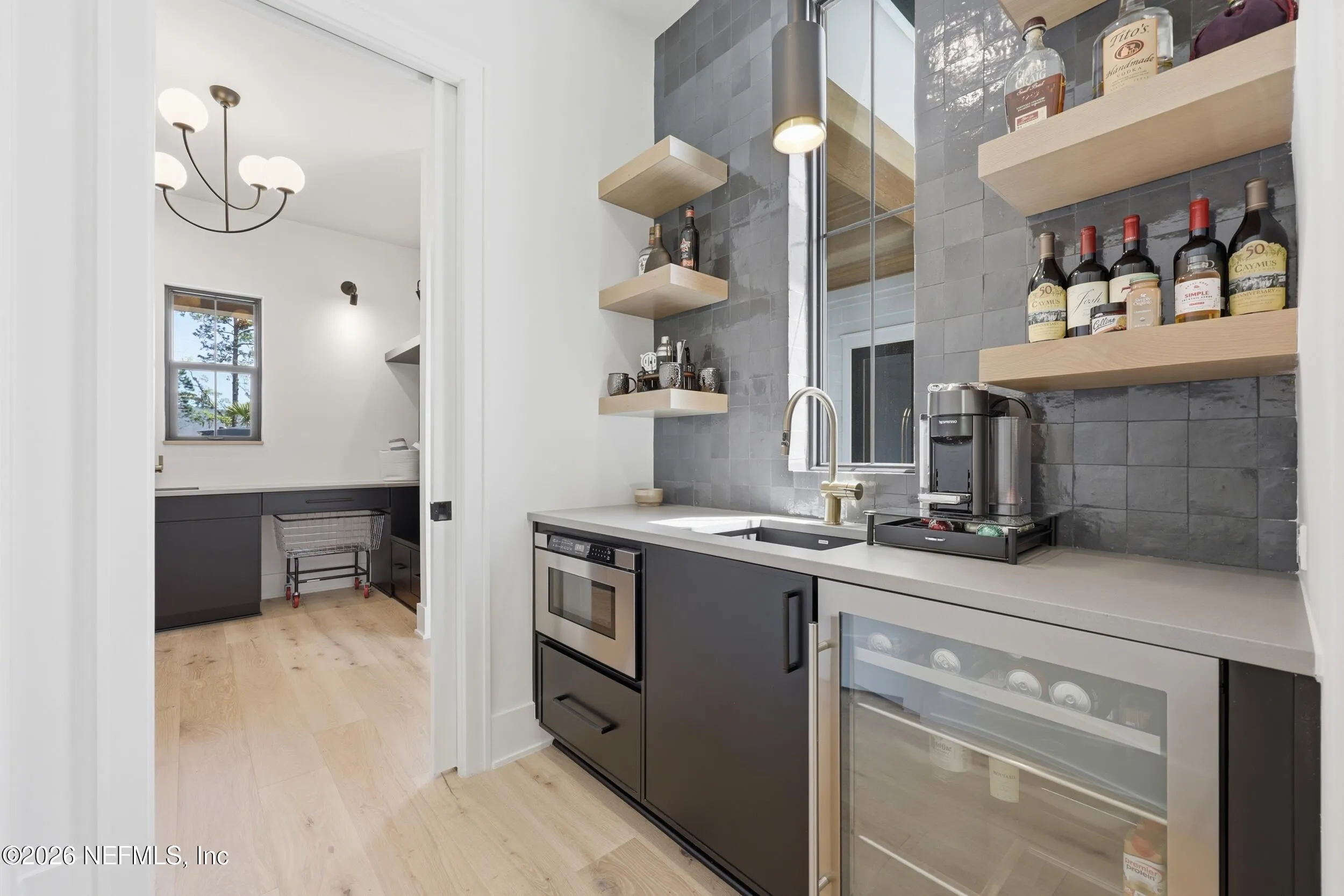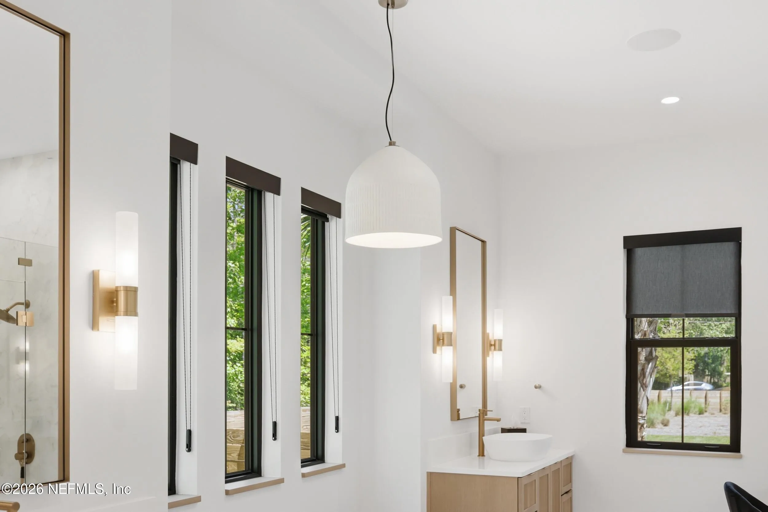 POOL PARTY READY! Welcome to this luxurious modern home, a five minute walk from Micklers Beach in the exclusive gated community of River Marsh, an intimate neighborhood with only 28 homes. Nestled among towering oaks, this custom-built residence was thoughtfully designed with high-end finishes and artist-commissioned details. The home offers an open-concept layout, soaring ceilings, and an abundance of natural light, creating a sophisticated yet inviting atmosphere. Upon entry, a grand staircase and formal living and dining areas set the stage for elegance. The chefs kitchen is a highlight, featuring Thermador appliances, an oversized island, leathered granite countertops, and ample storage. It seamlessly flows into the spacious family room, which opens to the resort-style pool and outdoor entertaining area through sliding glass doors. A flex space, ideal for a bar or office area, also provides access to a covered outdoor patio. The private primary suite on the first floor offers an impressive spa-like bath and generously sized his-and-hers closets. Upstairs, three additional bedrooms and two baths include a guest suite with an ensuite bath and a catwalk leading to a private balcony. Beautifully designed bathrooms showcase unique tile work and statement lighting. Outdoor living is just as exceptional, with a rarely found spacious front and backyard. The private backyard oasis is perfect for relaxation and entertaining. River Marsh residents enjoy access to a private dock on Lake Guana, ideal for paddleboarding and kayaking. Conveniently located near the beach, shopping, dining, and top-rated St. Johns County schools, this home offers an unparalleled blend of luxury, privacy, and coastal living. Schedule a private tour today. Seller requires proof of funds or pre-approval before showing.