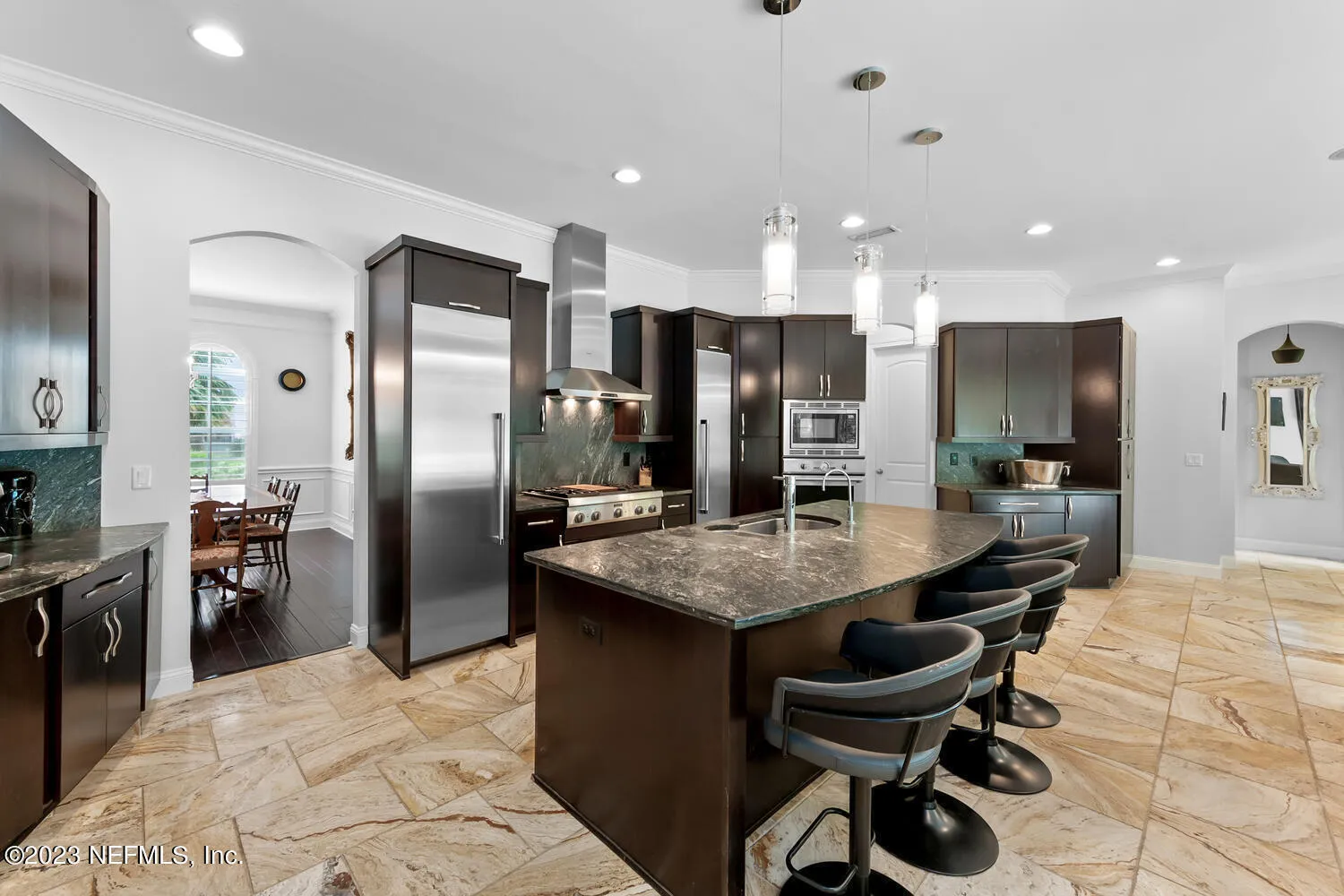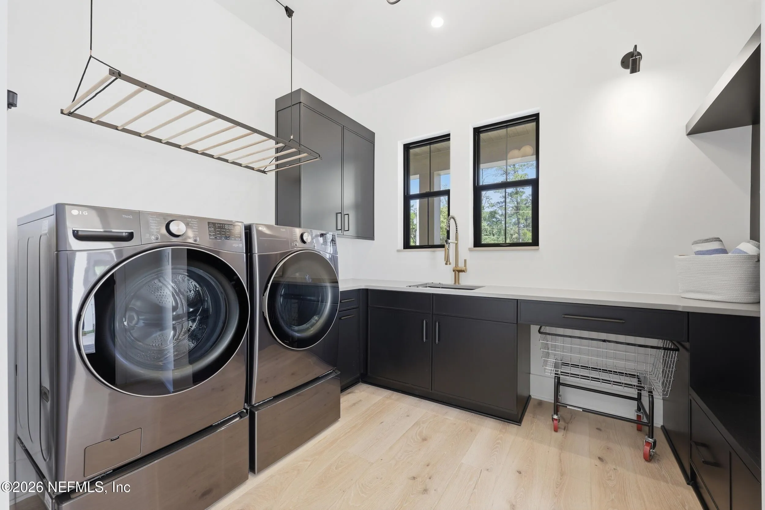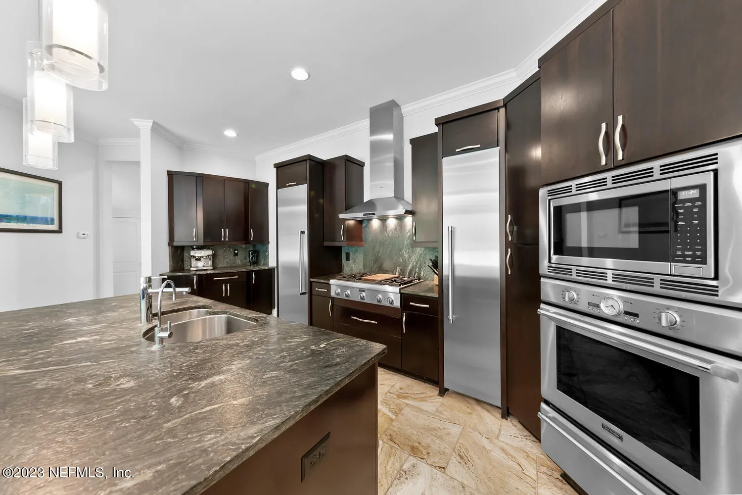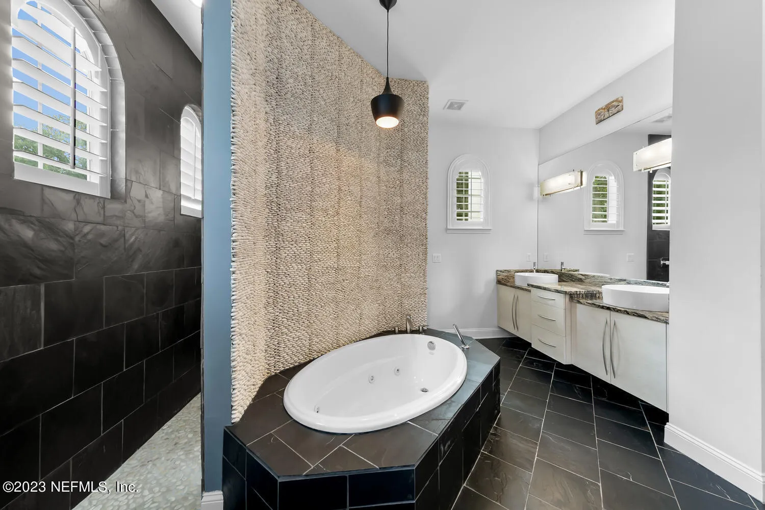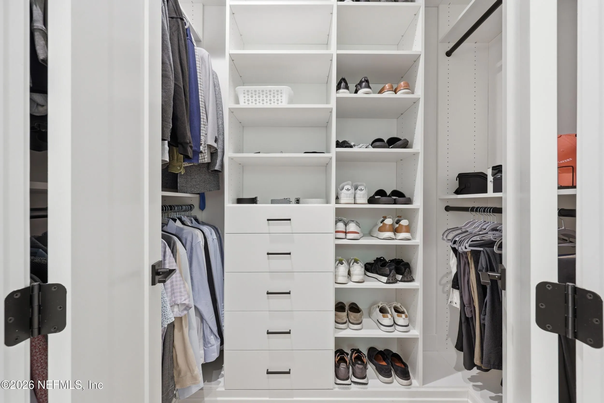 POOL PARTY READY! Welcome to this luxurious modern home, a five minute walk from Micklers Beach in the exclusive gated community of River Marsh, an intimate neighborhood with only 28 homes. Nestled among towering oaks, this custom-built residence was thoughtfully designed with high-end finishes and artist-commissioned details. The home offers an open-concept layout, soaring ceilings, and an abundance of natural light, creating a sophisticated yet inviting atmosphere. Upon entry, a grand staircase and formal living and dining areas set the stage for elegance. The chefs kitchen is a highlight, featuring Thermador appliances, an oversized island, leathered granite countertops, and ample storage. It seamlessly flows into the spacious family room, which opens to the resort-style pool and outdoor entertaining area through sliding glass doors. A flex space, ideal for a bar or office area, also provides access to a covered outdoor patio. The private primary suite on the first floor offers an impressive spa-like bath and generously sized his-and-hers closets. Upstairs, three additional bedrooms and two baths include a guest suite with an ensuite bath and a catwalk leading to a private balcony. Beautifully designed bathrooms showcase unique tile work and statement lighting. Outdoor living is just as exceptional, with a rarely found spacious front and backyard. The private backyard oasis is perfect for relaxation and entertaining. River Marsh residents enjoy access to a private dock on Lake Guana, ideal for paddleboarding and kayaking. Conveniently located near the beach, shopping, dining, and top-rated St. Johns County schools, this home offers an unparalleled blend of luxury, privacy, and coastal living. Schedule a private tour today. Seller requires proof of funds or pre-approval before showing.