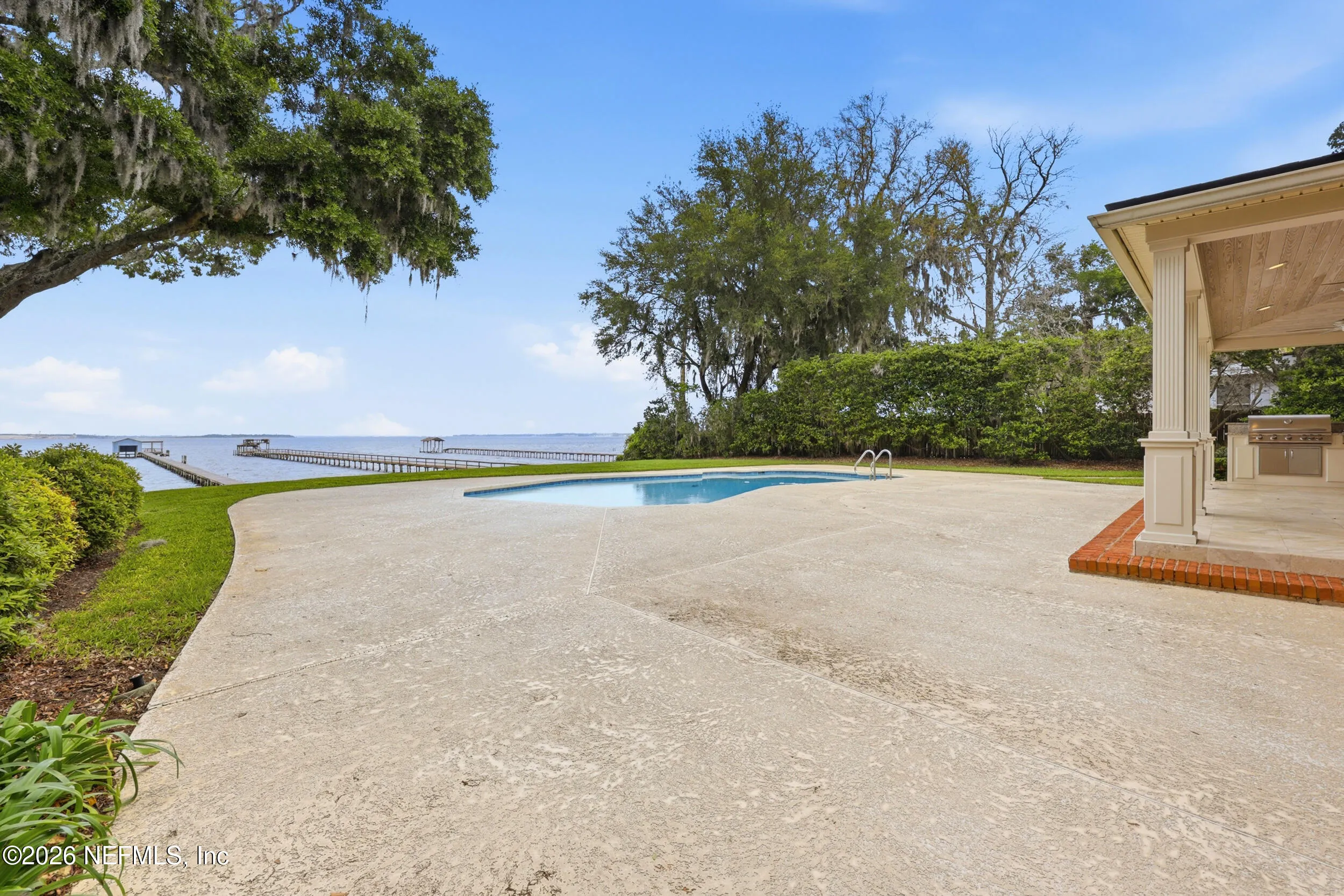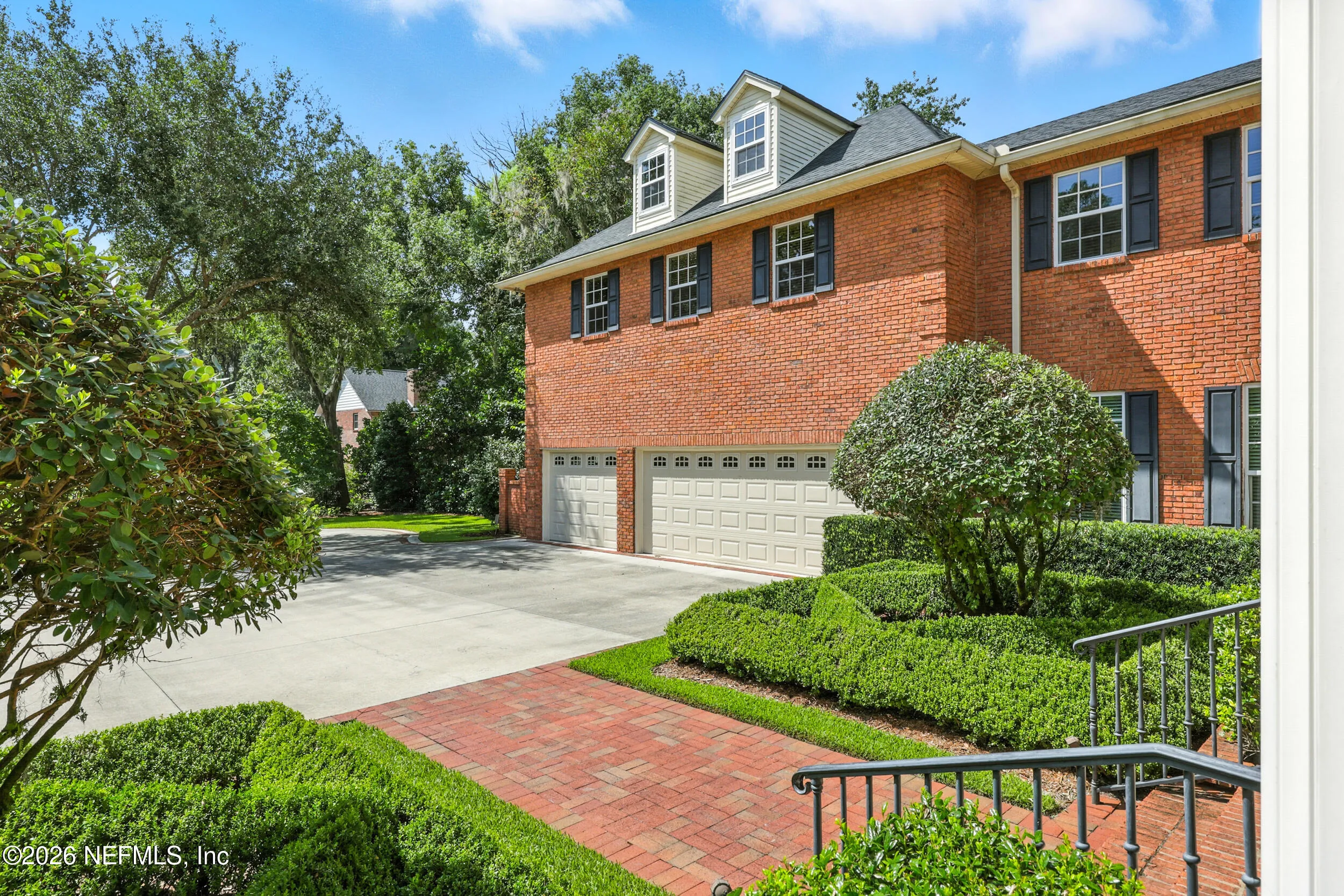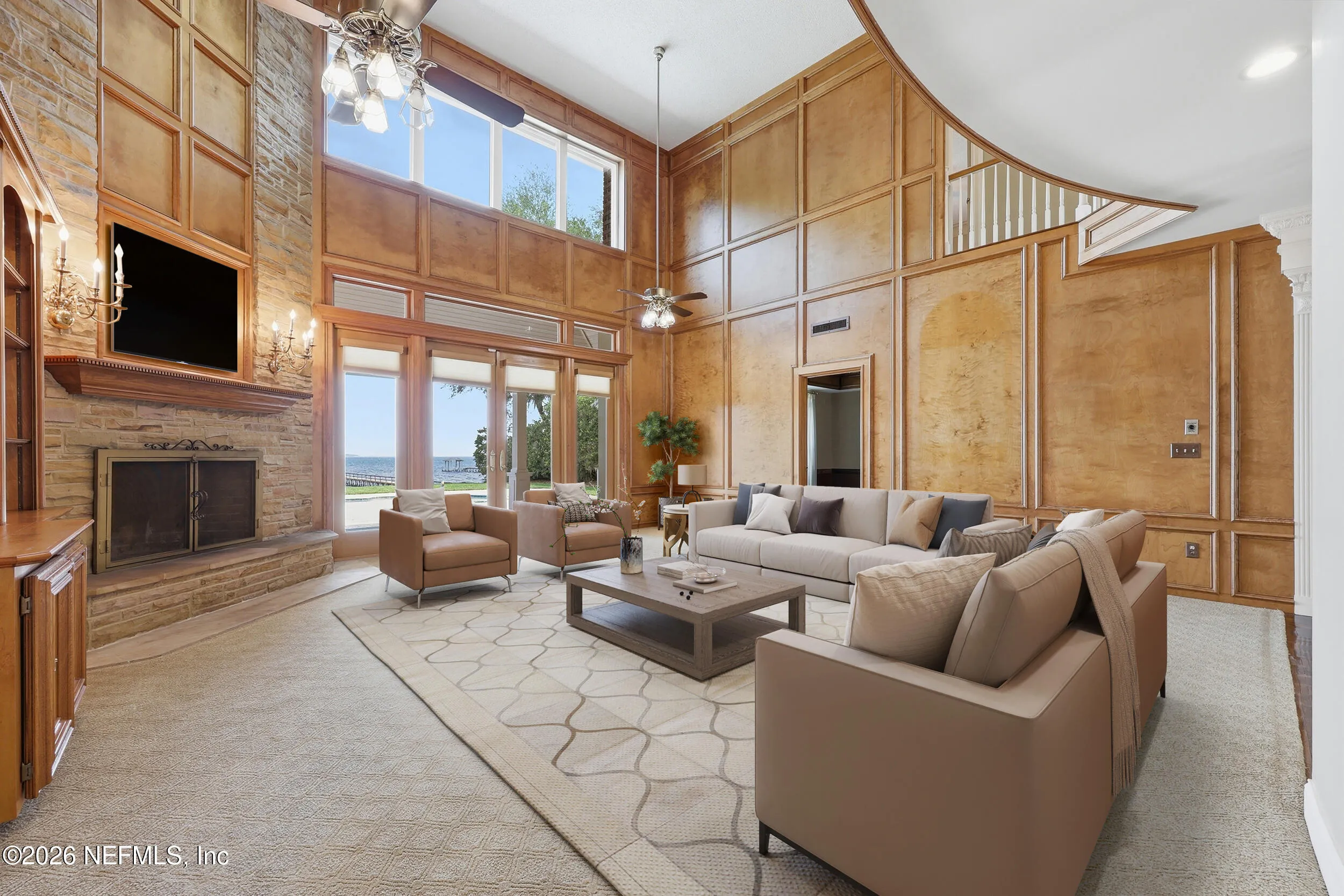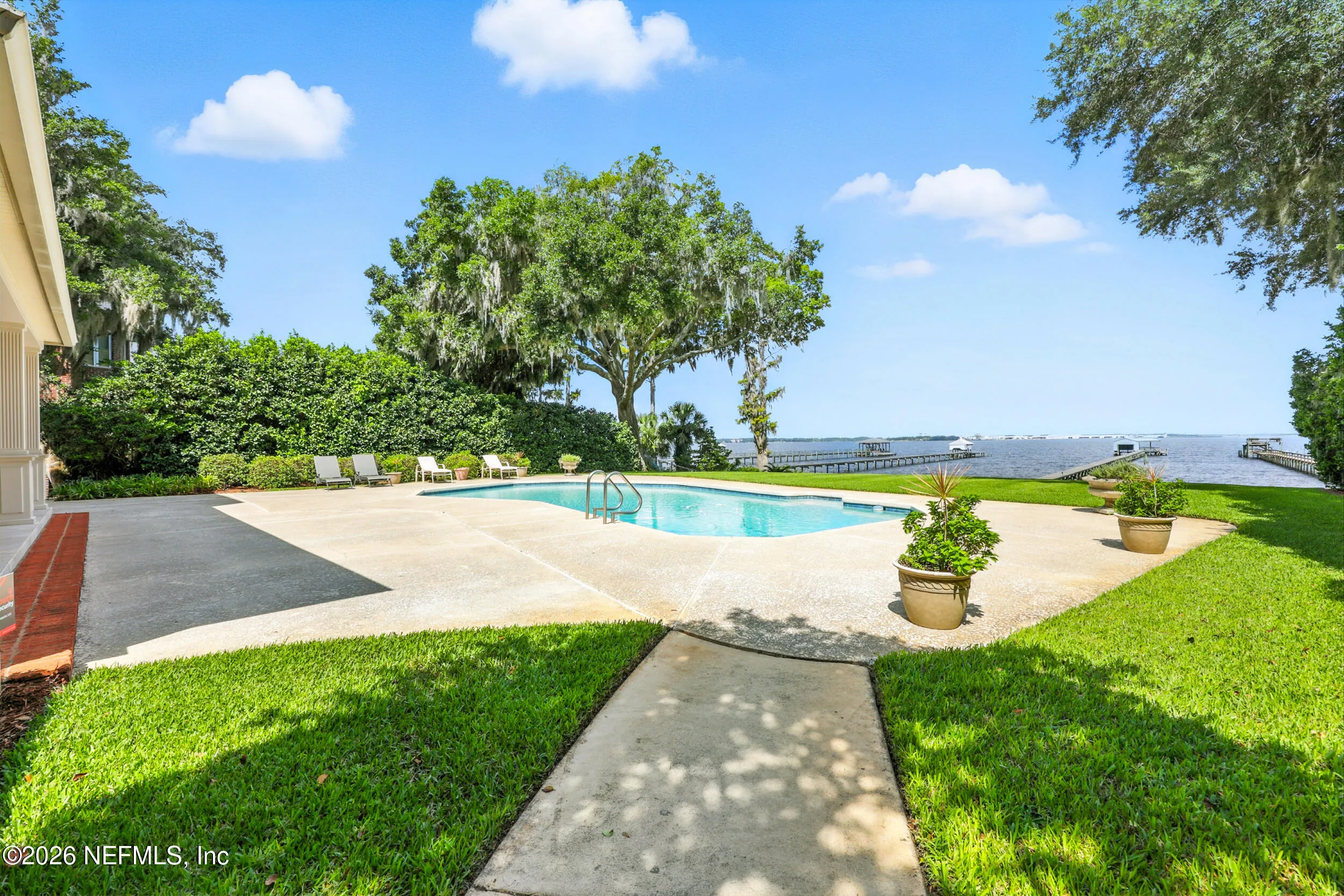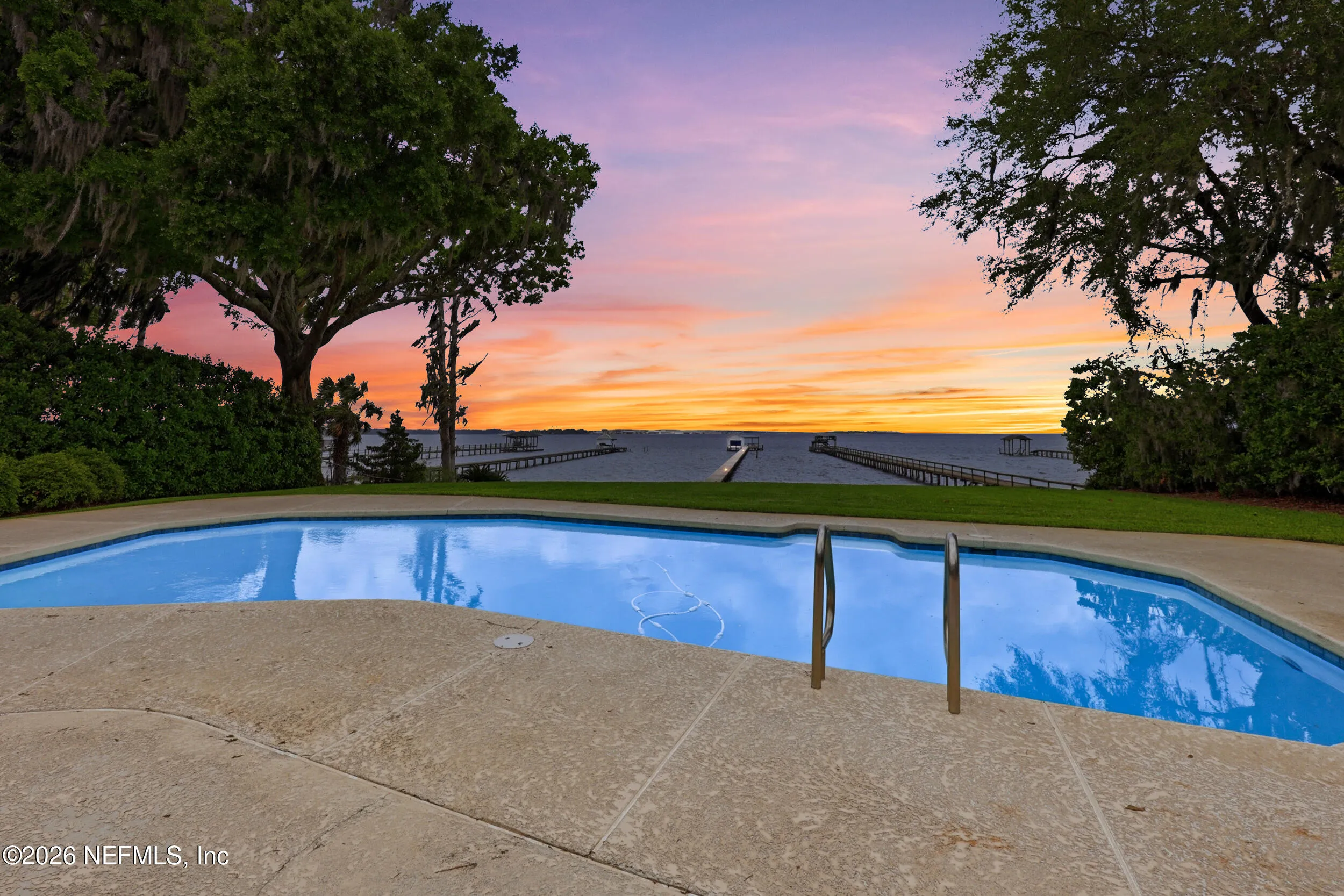 Custom-built in 1983 for a well-known local builder, this magnificent all-brick riverfront estate blends timeless design with exceptional craftsmanship. A grand presentation staircase welcomes you into this two-story traditional home, where a balcony overlooks the manicured front lawn. The open first floor offers formal living and dining rooms, a private office, and a spacious family room with soaring ceilings and a dramatic wall of windows showcasing the pool and St. Johns River. Situated on a pristine 1 acre lot with 100 of river frontage, enjoy a concrete bulkhead, dock, and rare grandfathered enclosed boathouse. The second-floor primary suite features a fireplace, stunning river views, spa-like bath, and oversized closet. With 4 bedrooms, bonus room with wet bar and bath, 3 staircases, and a sun porch off the kitchen 3 car garage, this lovingly maintained home is a rare find on desirable and beautiful Forest Circle.