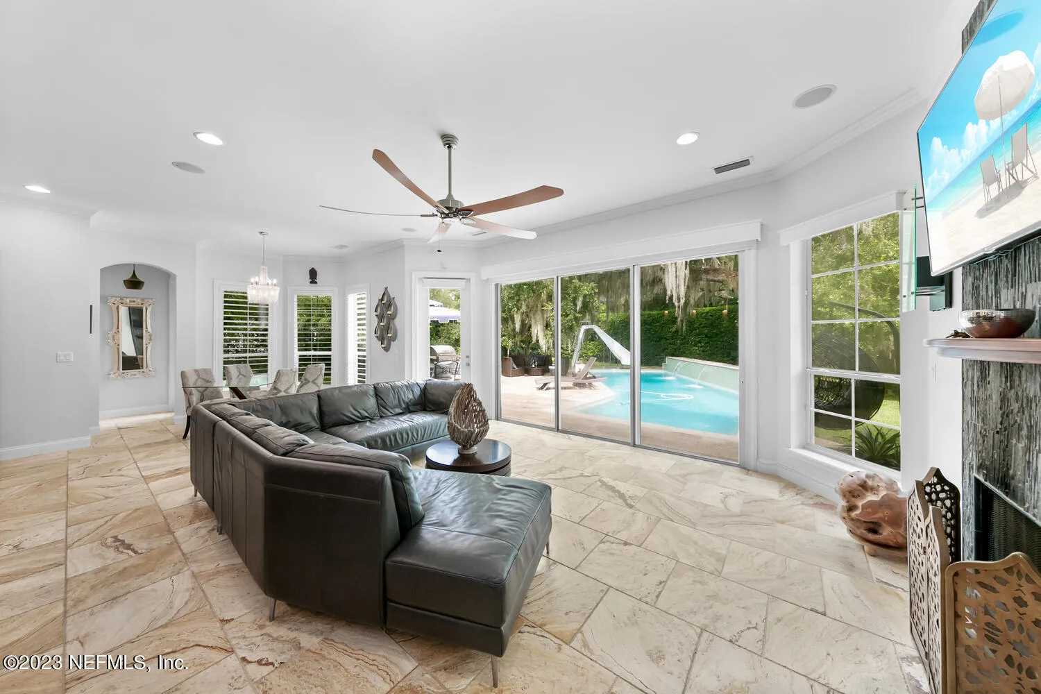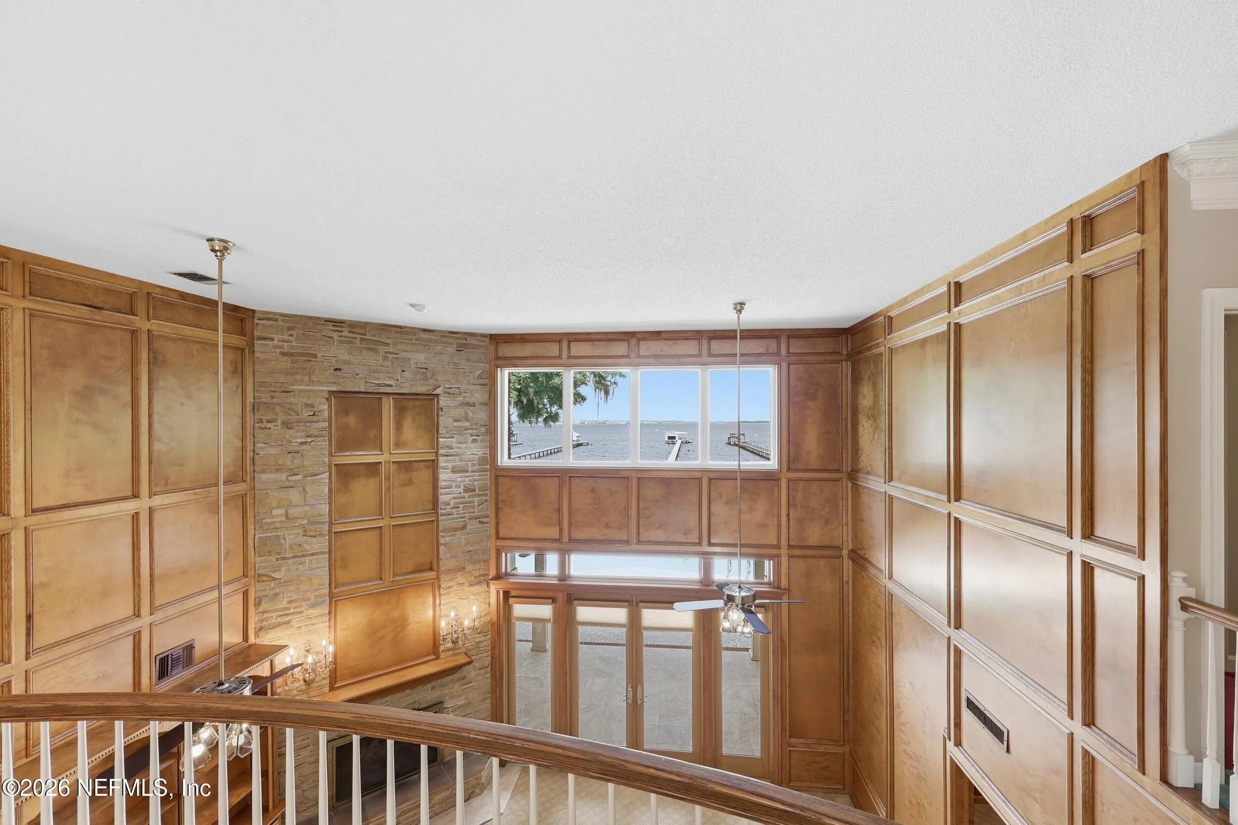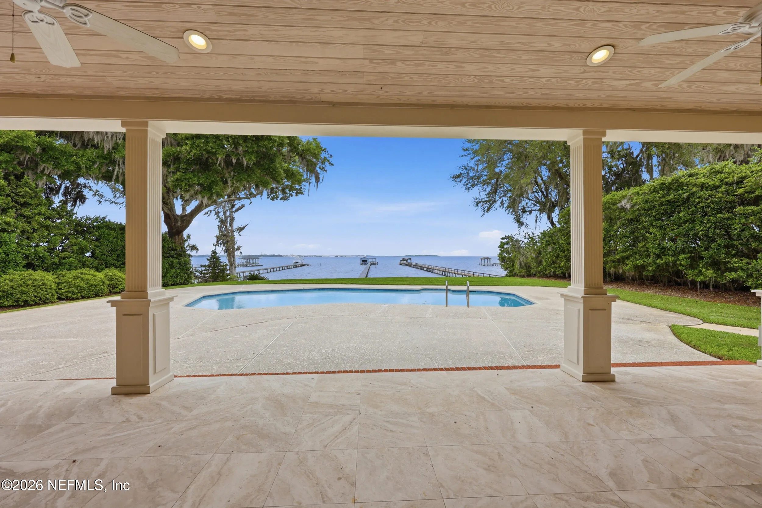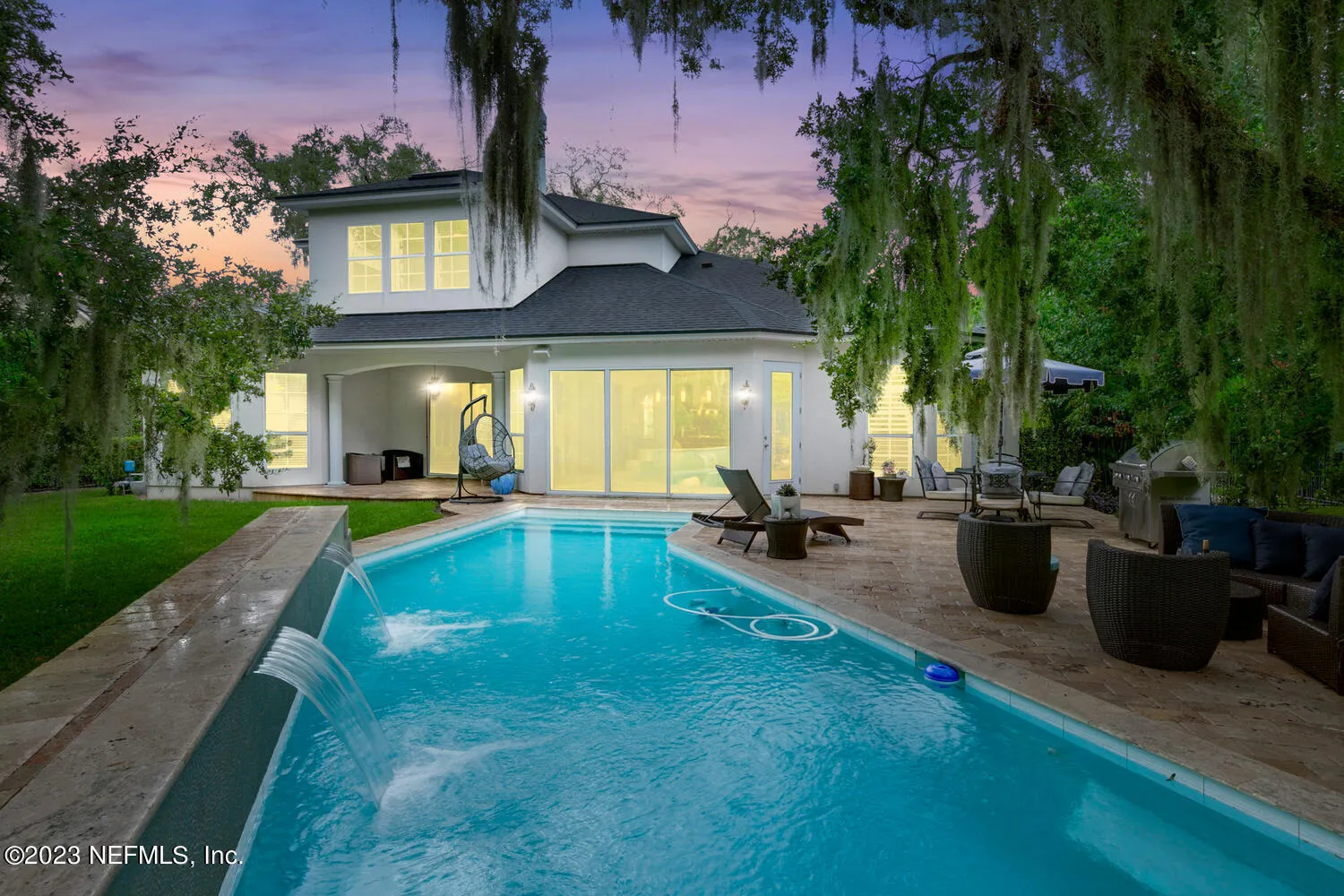 Custom-built in 1983 for a well-known local builder, this magnificent all-brick riverfront estate blends timeless design with exceptional craftsmanship. A grand presentation staircase welcomes you into this two-story traditional home, where a balcony overlooks the manicured front lawn. The open first floor offers formal living and dining rooms, a private office, and a spacious family room with soaring ceilings and a dramatic wall of windows showcasing the pool and St. Johns River. Situated on a pristine 1 acre lot with 100 of river frontage, enjoy a concrete bulkhead, dock, and rare grandfathered enclosed boathouse. The second-floor primary suite features a fireplace, stunning river views, spa-like bath, and oversized closet. With 4 bedrooms, bonus room with wet bar and bath, 3 staircases, and a sun porch off the kitchen 3 car garage, this lovingly maintained home is a rare find on desirable and beautiful Forest Circle.