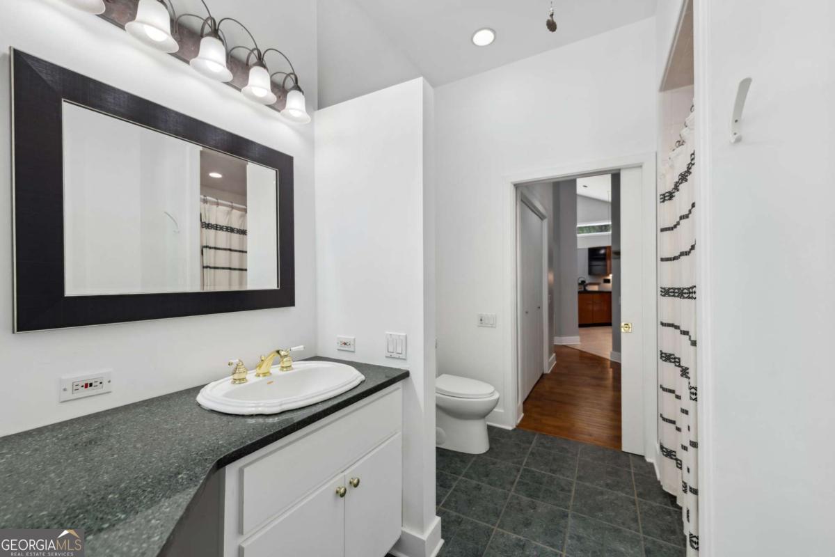 Rare opportunity to own newer construction in the heart of Historic Stone Mountain Village - situated just steps from Main Street and everything that makes this area so special! Located just a few doors down from local dining and a short walk to Main Street shops, restaurants, and breweries, this home offers a truly walkable lifestyle that is hard to find. In the opposite direction, youre less than a 5-minute walk straight into Stone Mountain Park! One of the only newer homes on this iconic street where properties rarely become available, this home blends charm, space, and functionality in a way that simply doesnt come up often. The open main level flows easily for everyday living and entertaining, anchored by a spacious kitchen with granite countertops and stainless appliances. Oversized primary suite plus a private in-law or teen suite provide flexibility for guests, multi-generational living, or potential income use. Secondary bedrooms are generously sized with great storage. The large, level backyard offers plenty of room for a future pool, and the side-facing two-car garage includes plumbing stubbed for a future bath-creating an excellent opportunity for a pool bath, cabana-style setup, or expanded outdoor living use. Enjoy a welcoming front porch with endless potential, no HOA, and a location that truly sets this home apart. If youve been waiting for something special in the Village, this is it! Please note that this home is located within the City of Stone Mountains historic district, so any exterior changes are subject to Historic Preservation Commission approval.