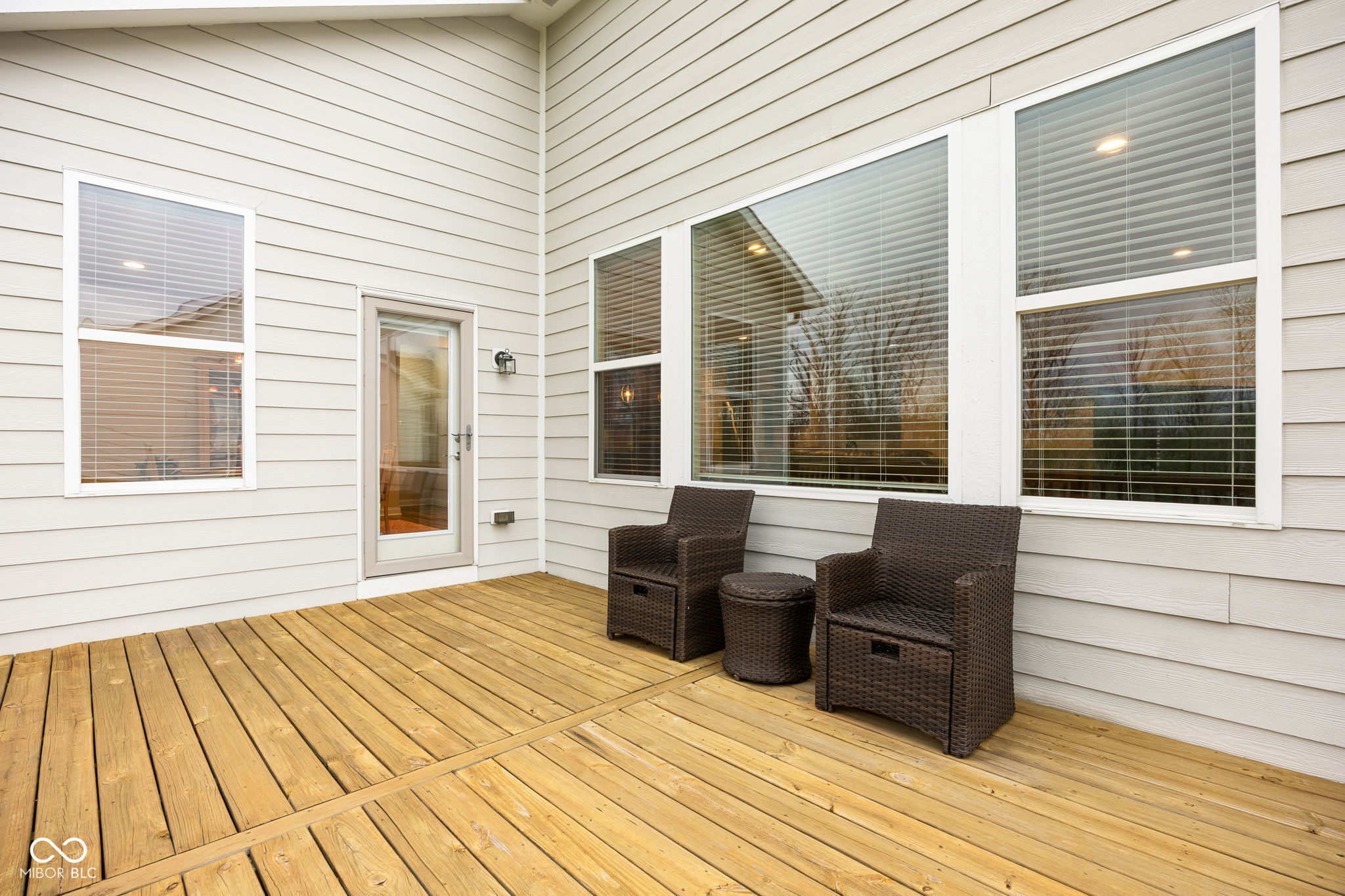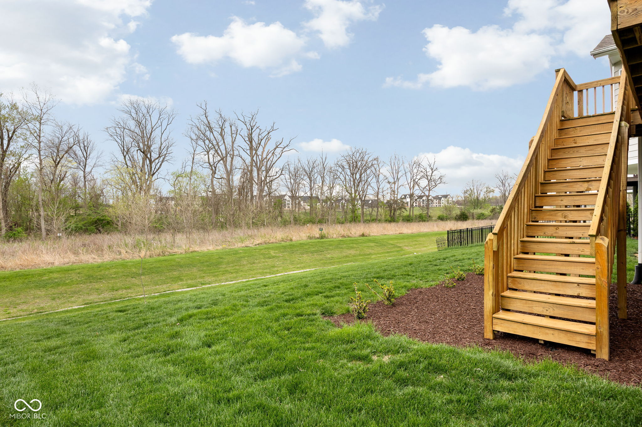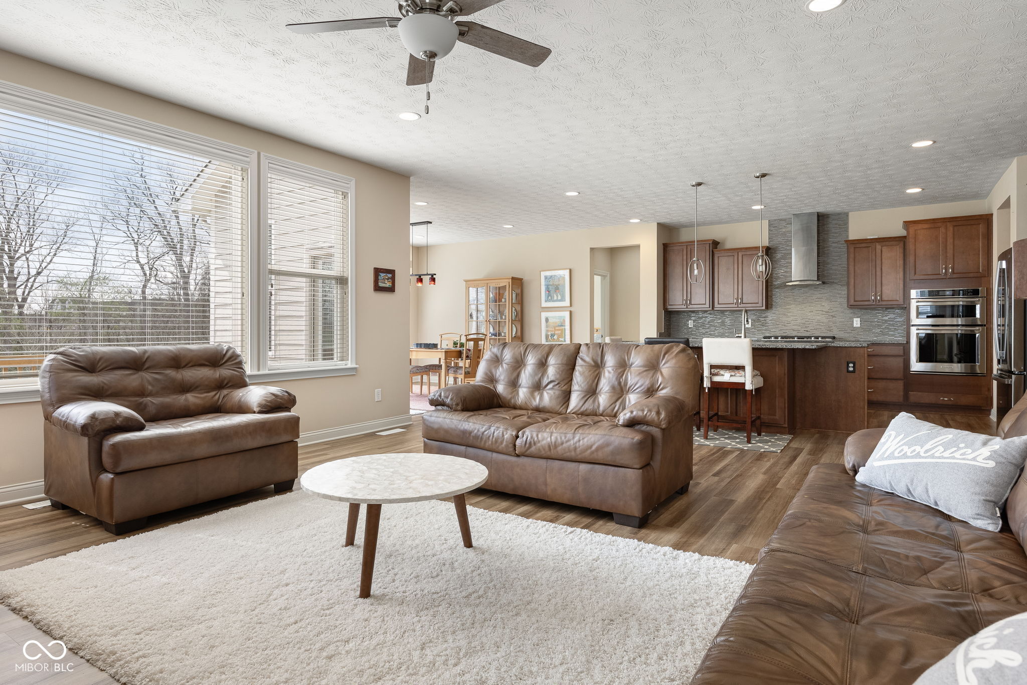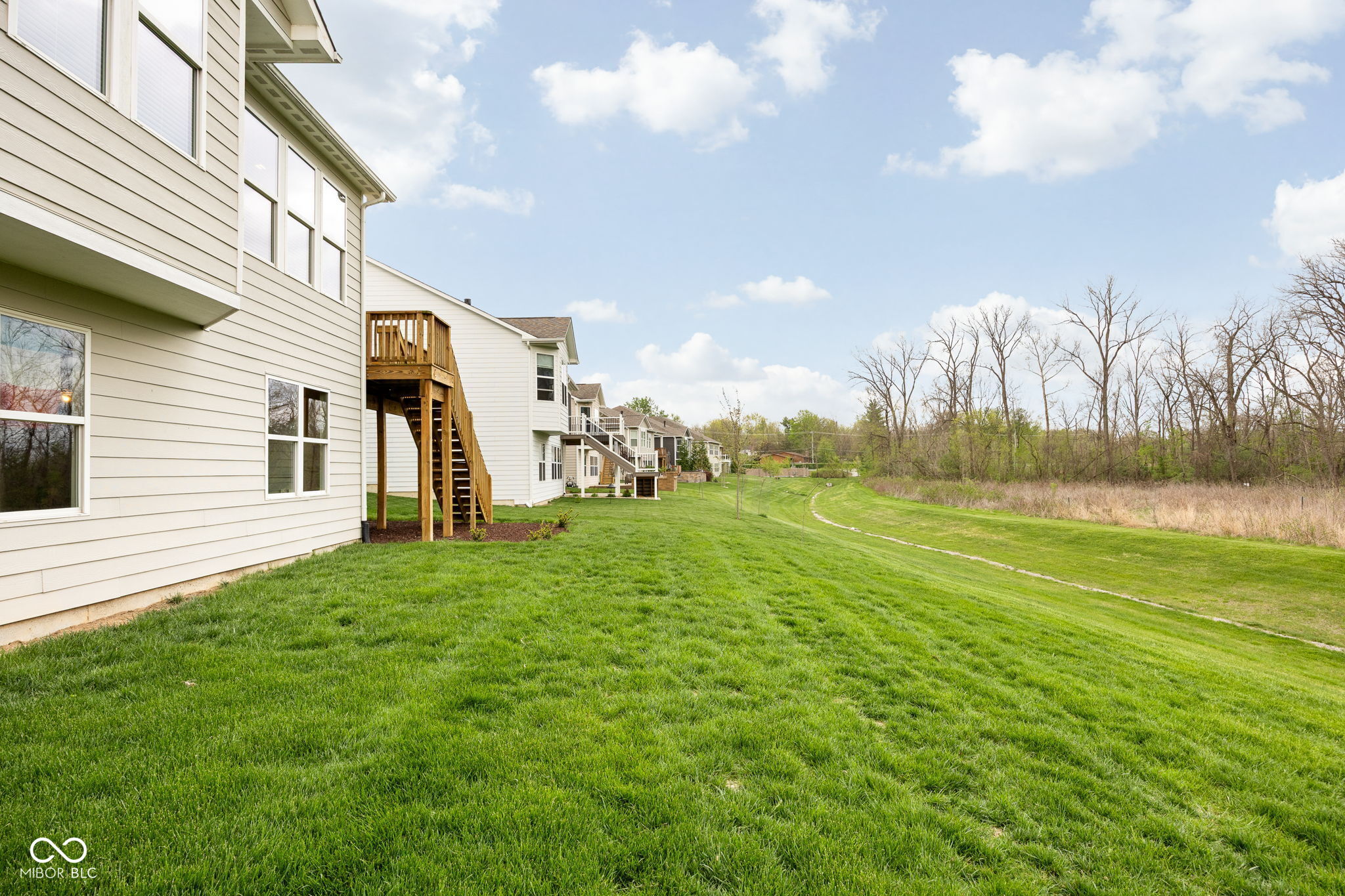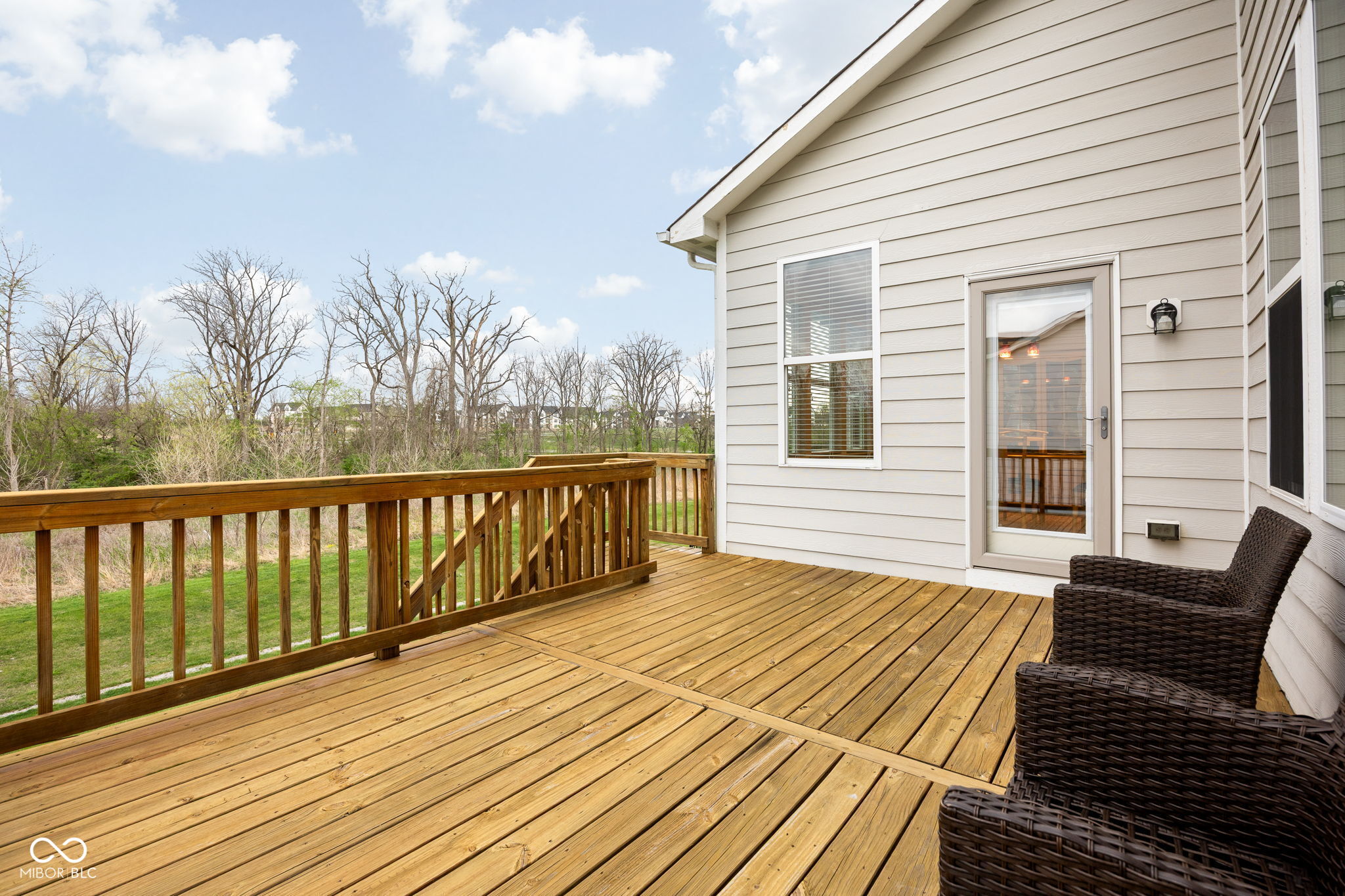 This well-maintained ranch home offers over 2,400 square feet of main-level living with a thoughtfully designed split-bedroom floor plan, bright natural sunlight, and a protected west facing view. A guest suite at the front and a spacious primary suite on the opposite side of the home. Currently utilized as a two bedroom, it also offers a flex room that can easily convert into a third bedroom with the addition of a door. The open floor plan centers around the kitchen with an oversized quartz island, gas cooktop, and exterior exhaust hood, seamlessly connecting to the dining area and living room. Living room features a gas fireplace, nine-foot ceilings and large west-facing windows, which fill the home with natural light. The primary retreat includes crown molding, dual vanities, oversized tiled shower, and a large walk-in closet. Enjoy outdoor living on your deck overlooking protected, wooded backdrop. The full WALK OUT basement offers an additional 2,400 square feet of potential living space, with plumbing rough-ins already in place for future bedrooms and expanded living areas. Centrally located in Westfield with easy access to 31, a short walk to Cool Creek Park and the Monon Trail, and minutes from all that downtown Westfield offers.