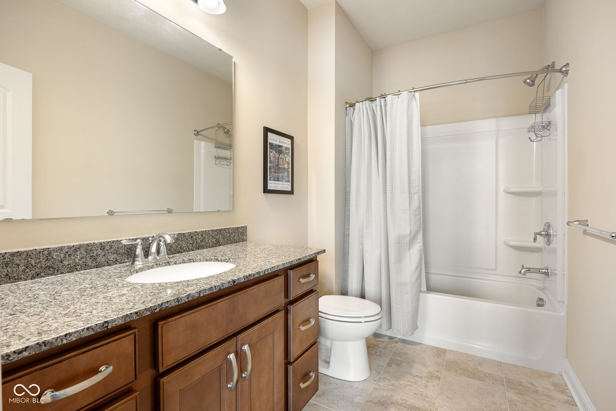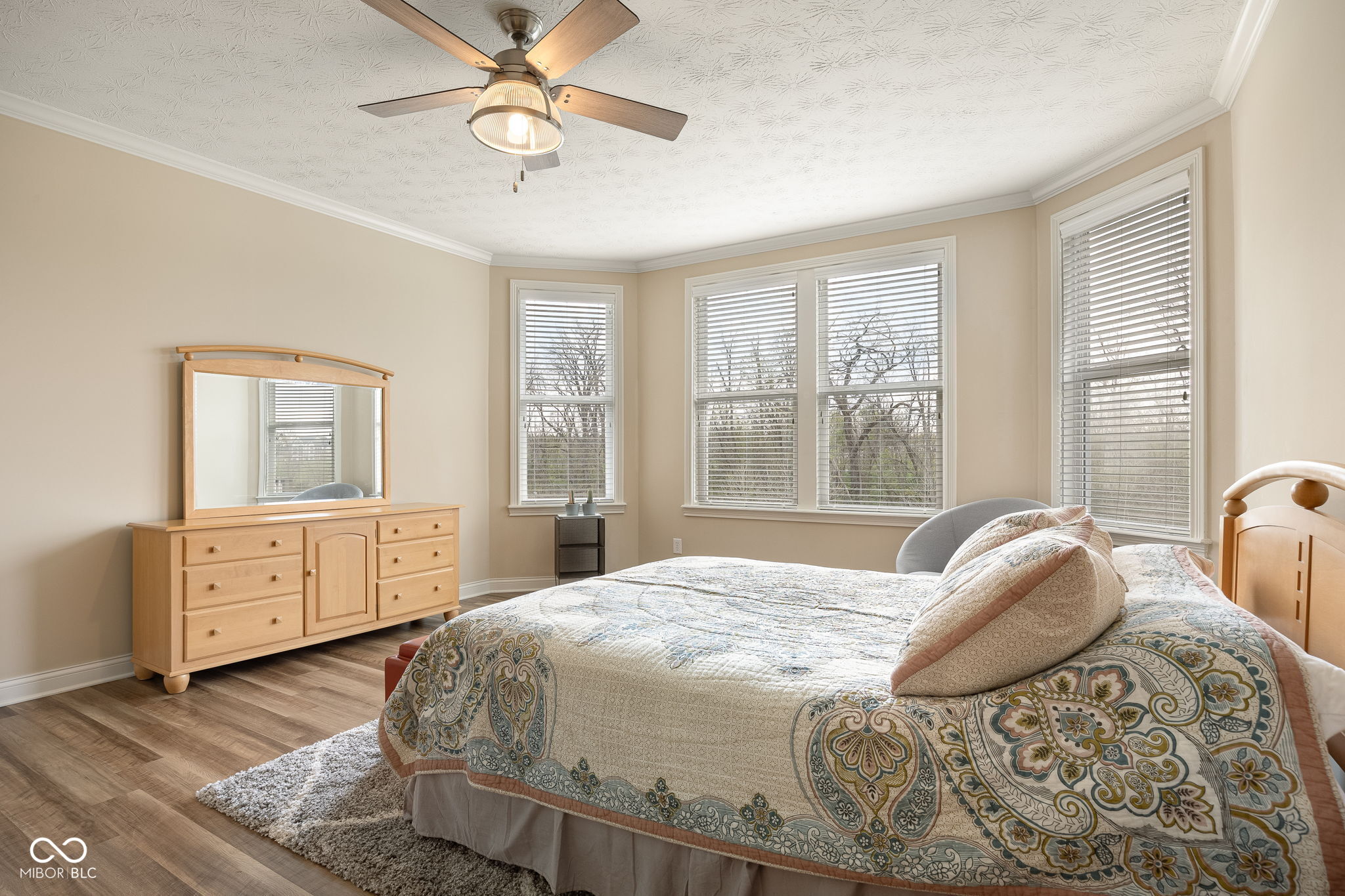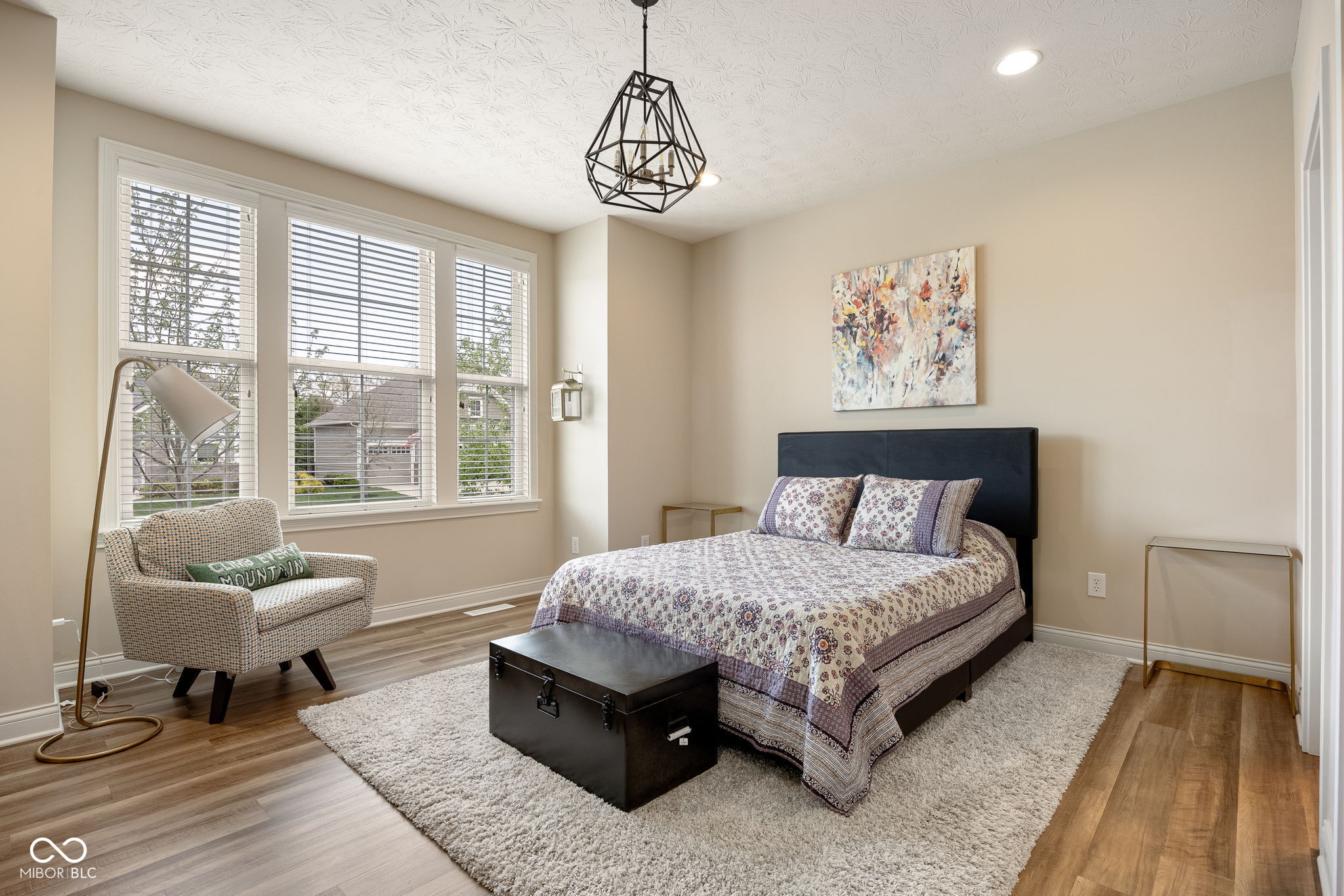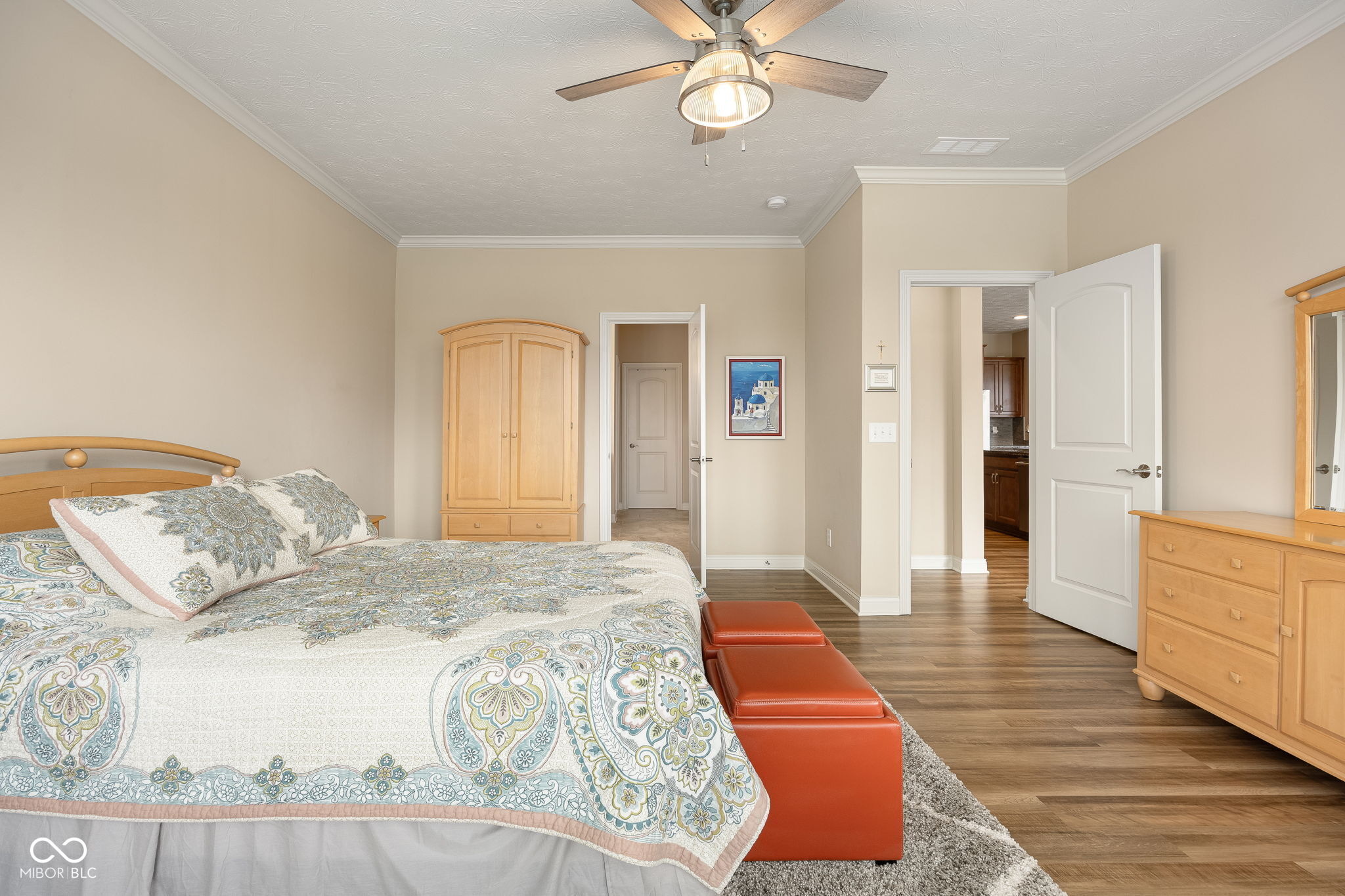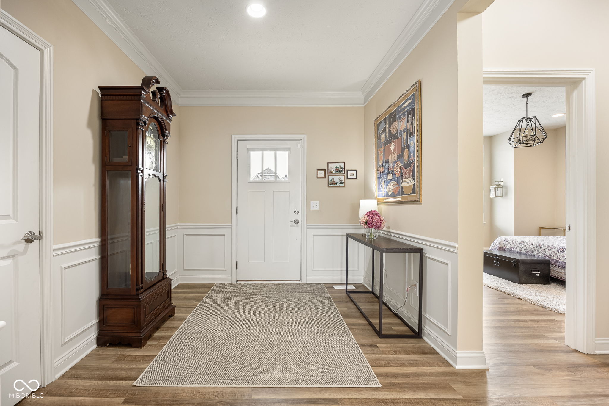 This well-maintained ranch home offers over 2,400 square feet of main-level living with a thoughtfully designed split-bedroom floor plan, bright natural sunlight, and a protected west facing view. A guest suite at the front and a spacious primary suite on the opposite side of the home. Currently utilized as a two bedroom, it also offers a flex room that can easily convert into a third bedroom with the addition of a door. The open floor plan centers around the kitchen with an oversized quartz island, gas cooktop, and exterior exhaust hood, seamlessly connecting to the dining area and living room. Living room features a gas fireplace, nine-foot ceilings and large west-facing windows, which fill the home with natural light. The primary retreat includes crown molding, dual vanities, oversized tiled shower, and a large walk-in closet. Enjoy outdoor living on your deck overlooking protected, wooded backdrop. The full WALK OUT basement offers an additional 2,400 square feet of potential living space, with plumbing rough-ins already in place for future bedrooms and expanded living areas. Centrally located in Westfield with easy access to 31, a short walk to Cool Creek Park and the Monon Trail, and minutes from all that downtown Westfield offers.