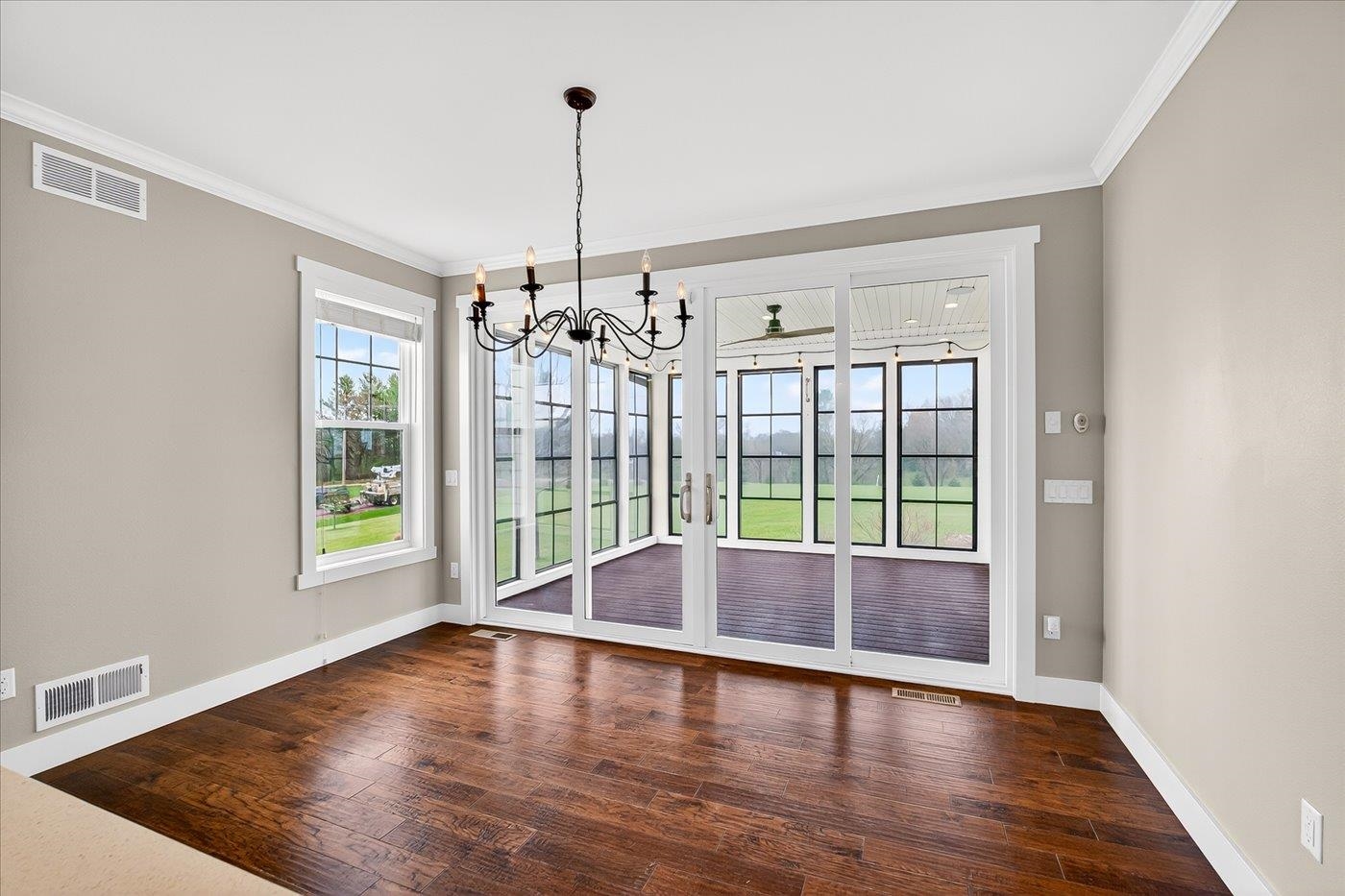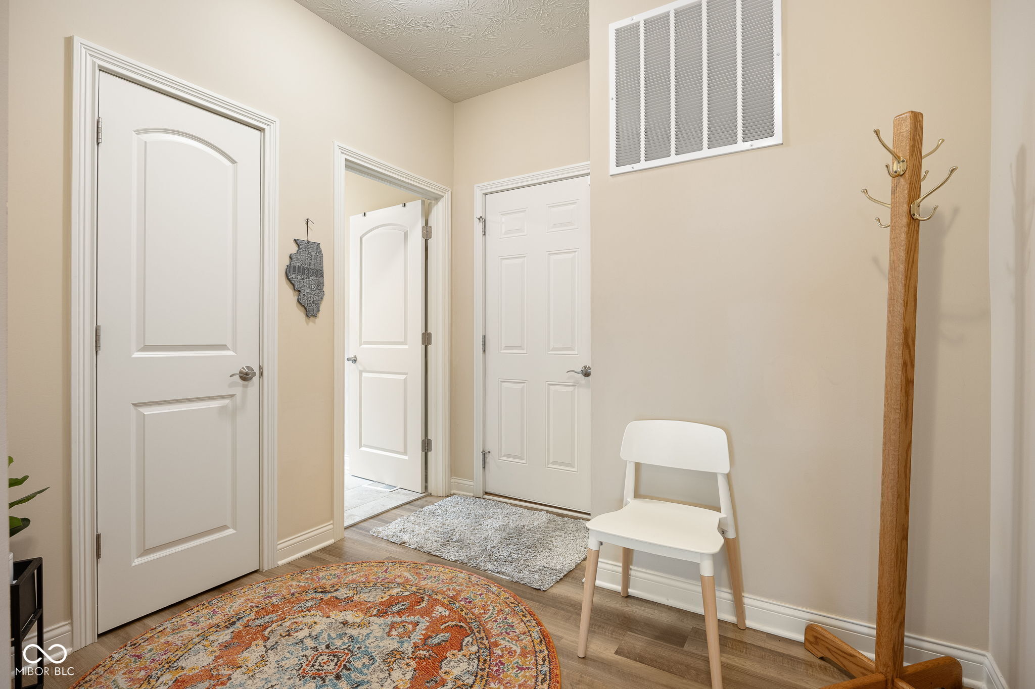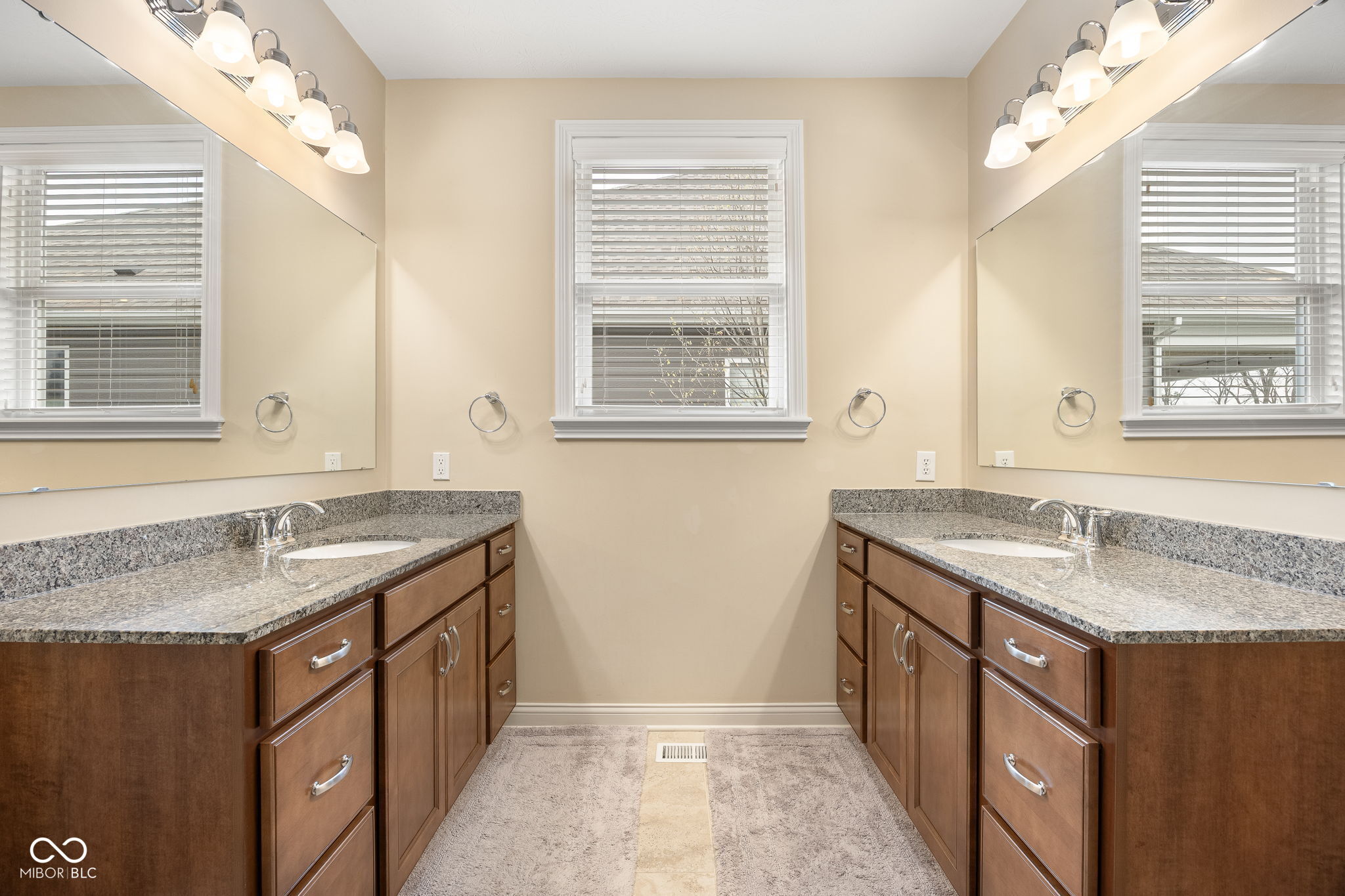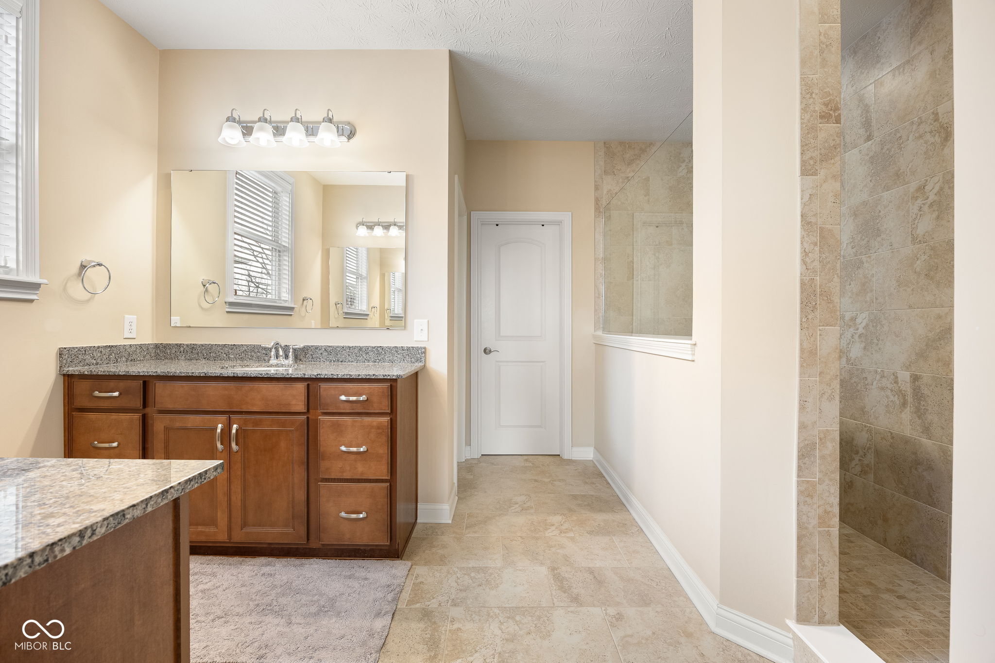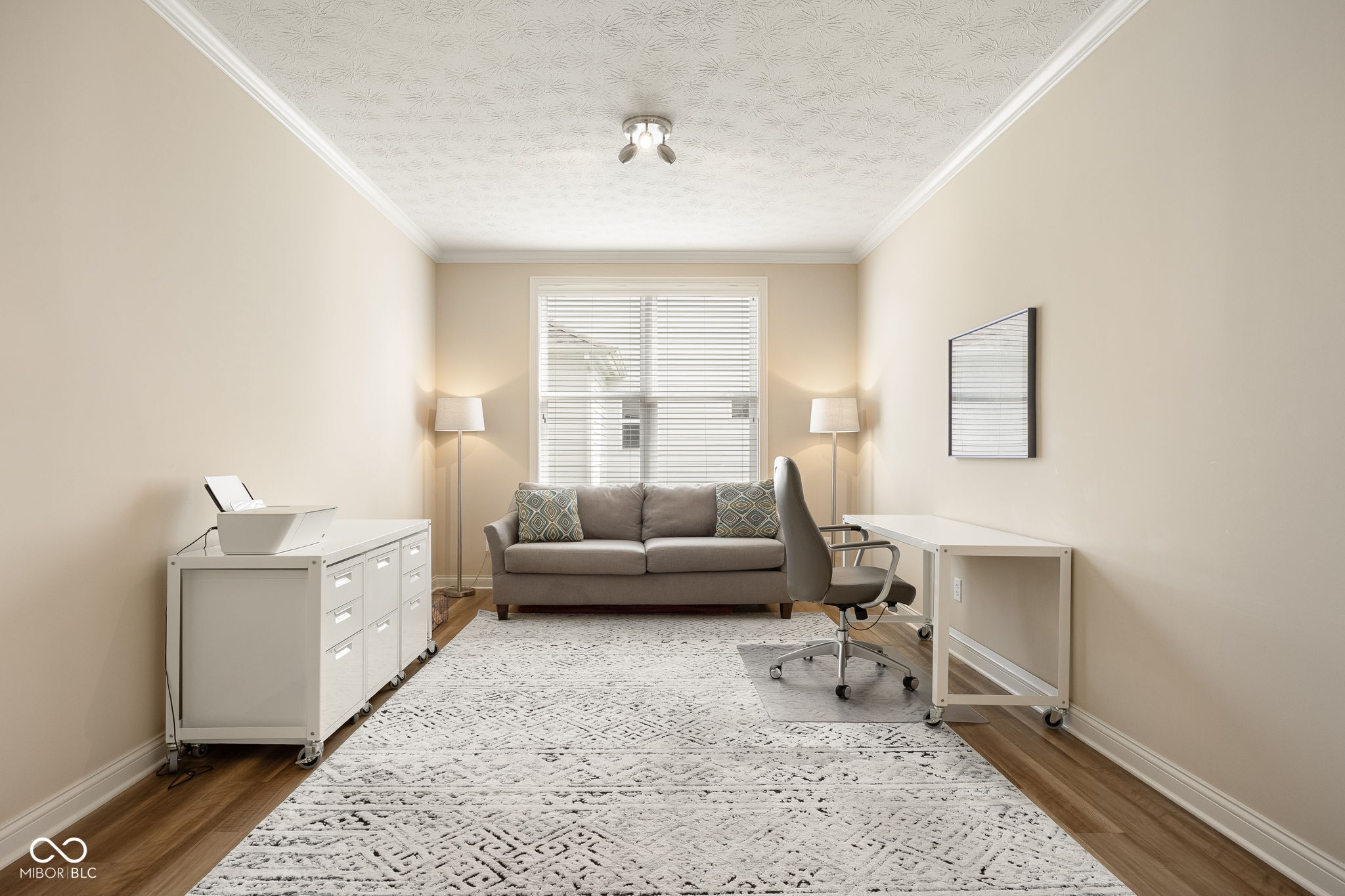 This well-maintained ranch home offers over 2,400 square feet of main-level living with a thoughtfully designed split-bedroom floor plan, bright natural sunlight, and a protected west facing view. A guest suite at the front and a spacious primary suite on the opposite side of the home. Currently utilized as a two bedroom, it also offers a flex room that can easily convert into a third bedroom with the addition of a door. The open floor plan centers around the kitchen with an oversized quartz island, gas cooktop, and exterior exhaust hood, seamlessly connecting to the dining area and living room. Living room features a gas fireplace, nine-foot ceilings and large west-facing windows, which fill the home with natural light. The primary retreat includes crown molding, dual vanities, oversized tiled shower, and a large walk-in closet. Enjoy outdoor living on your deck overlooking protected, wooded backdrop. The full WALK OUT basement offers an additional 2,400 square feet of potential living space, with plumbing rough-ins already in place for future bedrooms and expanded living areas. Centrally located in Westfield with easy access to 31, a short walk to Cool Creek Park and the Monon Trail, and minutes from all that downtown Westfield offers.