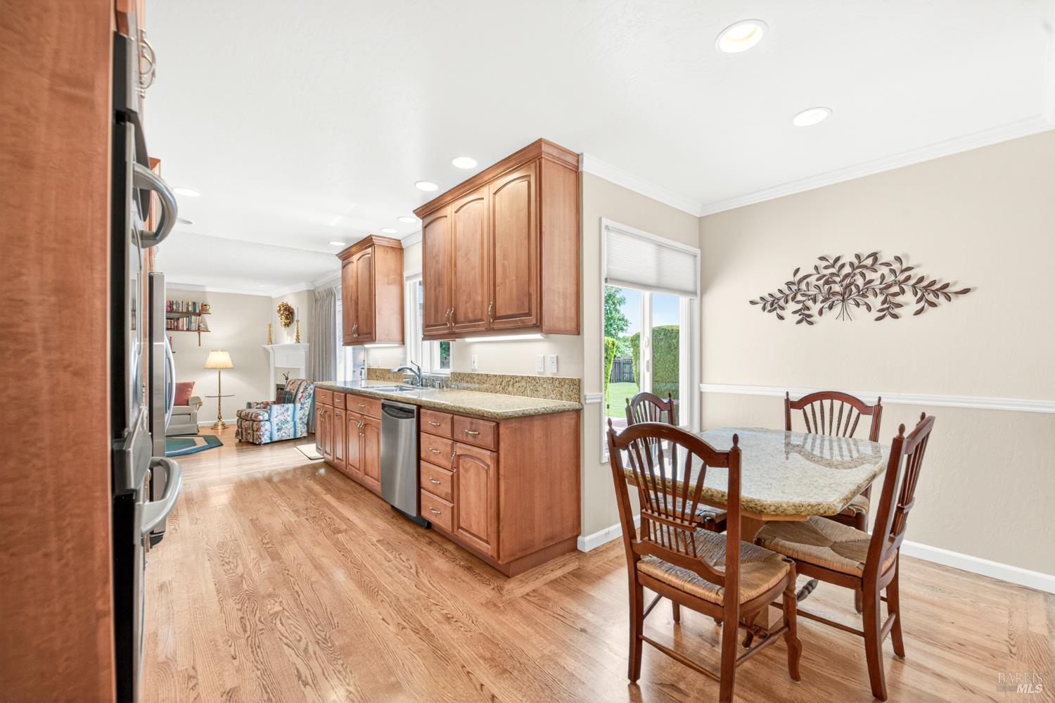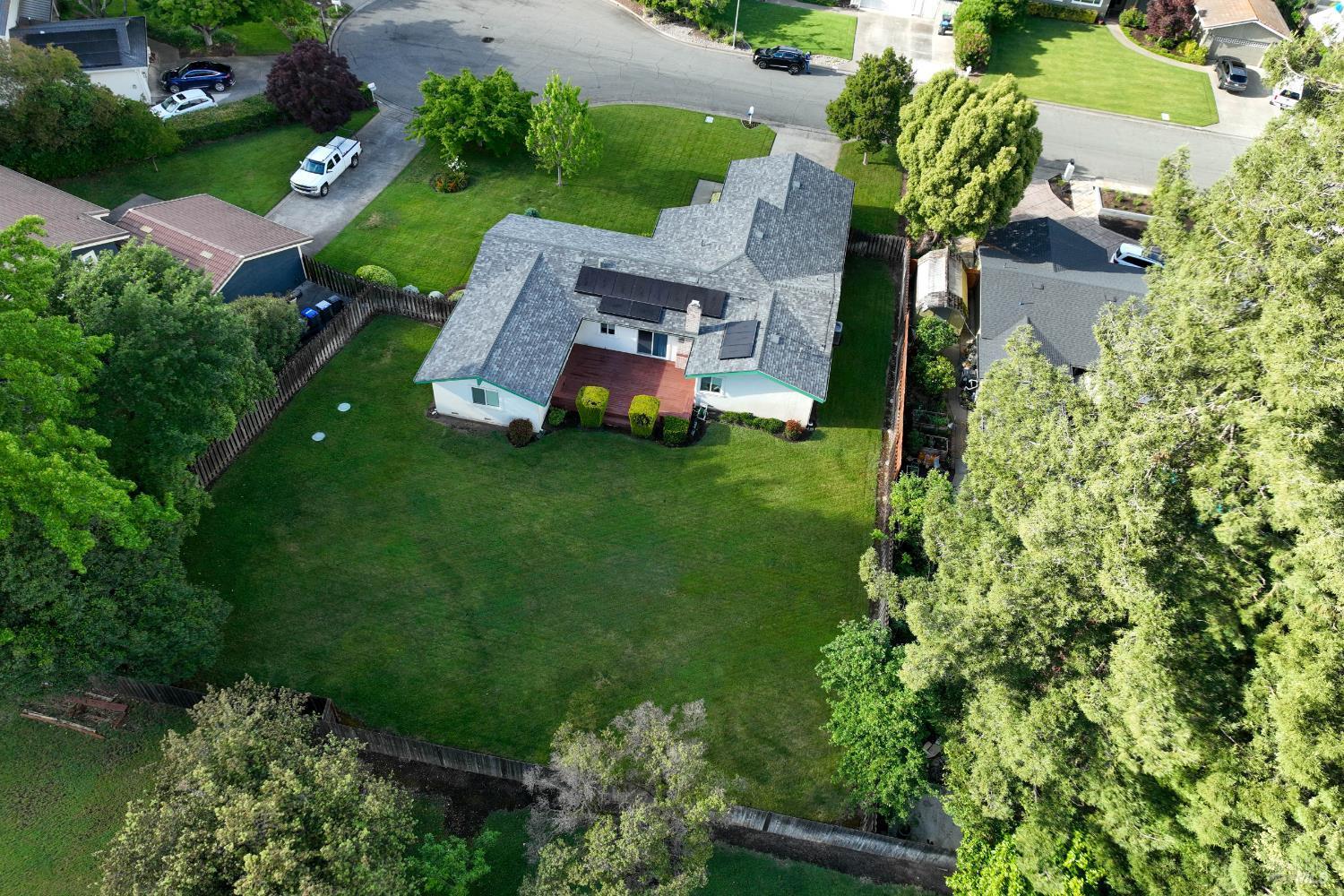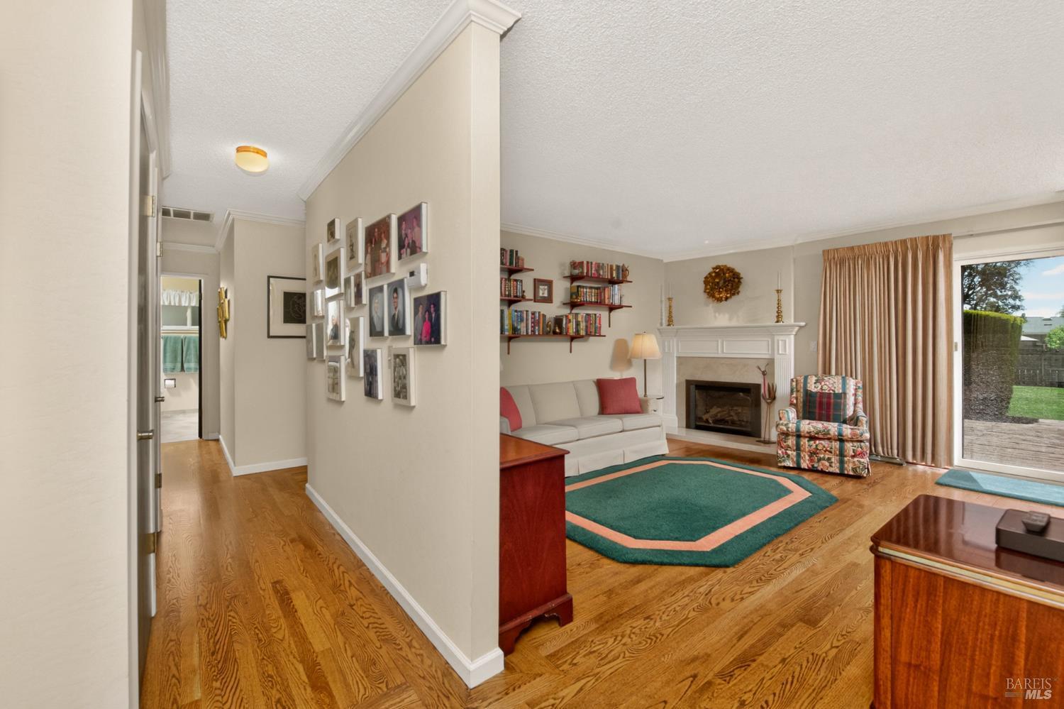 A standout residence in sought-after Green Valley Estates where timeless care meets a welcoming sense of home. Impeccably maintained by its original owner, this beautifully cared-for single-level residence reflects true pride of ownership throughout. Offering 4 bedrooms, 2.5 baths, and an approximate 320 sq ft multi-purpose room, this home blends enduring quality with thoughtful updates and a warm, comfortable living experience. A brand-new composite roof (2026) and solar (power purchase agreement) provide added value and efficiency, while the interior showcases hardwood flooring, custom crown molding, Andersen windows and sliders, two-tone paint, and quality wood doors throughout. The well-appointed kitchen features granite slab countertops, alderwood custom cabinetry, stainless steel appliances including a gas cooktop, double oven, and built-in microwave, along with a charming built-in dining nook perfect for everyday living. A spacious layout offers both a formal living room and dining room, complimented by a separate family room featuring a gas fireplace with custom mantel and marble surround creating distinct yet connected spaces for everyday living and entertaining. Additional highlights include an extended vanity with abundant cabinetry in the hall bath, Silestone countertops, tile flooring, and a well-equipped laundry room with built-ins and convenient half bath access. Step outside to a sprawling, level backyard, a rare and versatile setting offering endless potential to create a private outdoor retreat, garden oasis, your very own soccer field, and/or future entertaining space. Ideally located in desirable Green Valley, just minutes from I-80, about 50 minutes to SF and/or Sacto AND over the hill from Napa. Minutes to Solano College, Travis Air Force Base, Kaiser, North Bay Hospital, retail, library, schools, winery events and more. Most importantly, it is just a golf cart ride to the exclusive private Green Valley Country Club, offering an 18-hole golf course, tennis, swimming, dining, and premier amenities. Surrounded by local farms, renowned wineries, and scenic rolling hills, this is a lifestyle defined by comfort, convenience, and quiet luxury. Homes of this caliber, condition, and location are rarely available! Experience Green Valley living at its finest. Dont miss out!
