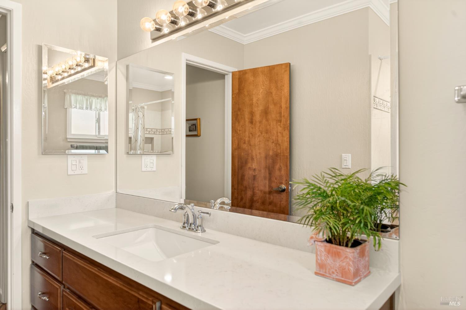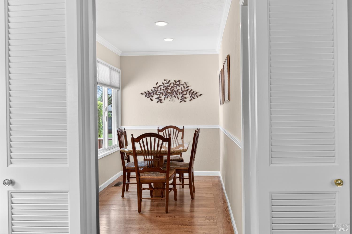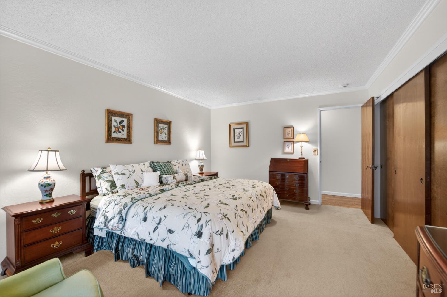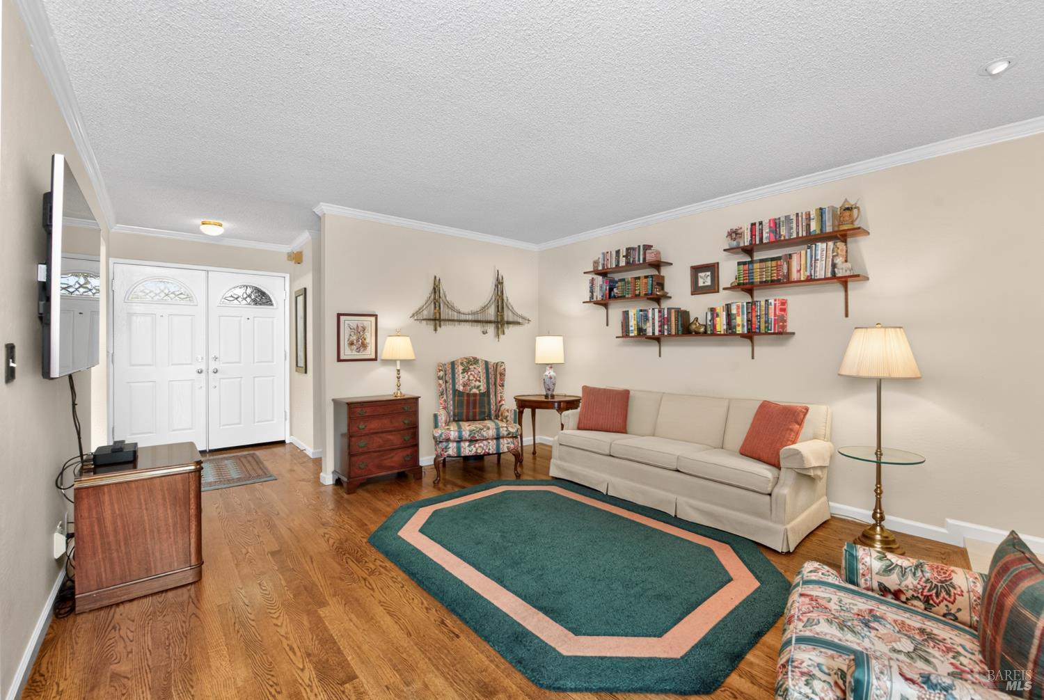 A standout residence in sought-after Green Valley Estates where timeless care meets a welcoming sense of home. Impeccably maintained by its original owner, this beautifully cared-for single-level residence reflects true pride of ownership throughout. Offering 4 bedrooms, 2.5 baths, and an approximate 320 sq ft multi-purpose room, this home blends enduring quality with thoughtful updates and a warm, comfortable living experience. A brand-new composite roof (2026) and solar (power purchase agreement) provide added value and efficiency, while the interior showcases hardwood flooring, custom crown molding, Andersen windows and sliders, two-tone paint, and quality wood doors throughout. The well-appointed kitchen features granite slab countertops, alderwood custom cabinetry, stainless steel appliances including a gas cooktop, double oven, and built-in microwave, along with a charming built-in dining nook perfect for everyday living. A spacious layout offers both a formal living room and dining room, complimented by a separate family room featuring a gas fireplace with custom mantel and marble surround creating distinct yet connected spaces for everyday living and entertaining. Additional highlights include an extended vanity with abundant cabinetry in the hall bath, Silestone countertops, tile flooring, and a well-equipped laundry room with built-ins and convenient half bath access. Step outside to a sprawling, level backyard, a rare and versatile setting offering endless potential to create a private outdoor retreat, garden oasis, your very own soccer field, and/or future entertaining space. Ideally located in desirable Green Valley, just minutes from I-80, about 50 minutes to SF and/or Sacto AND over the hill from Napa. Minutes to Solano College, Travis Air Force Base, Kaiser, North Bay Hospital, retail, library, schools, winery events and more. Most importantly, it is just a golf cart ride to the exclusive private Green Valley Country Club, offering an 18-hole golf course, tennis, swimming, dining, and premier amenities. Surrounded by local farms, renowned wineries, and scenic rolling hills, this is a lifestyle defined by comfort, convenience, and quiet luxury. Homes of this caliber, condition, and location are rarely available! Experience Green Valley living at its finest. Dont miss out!