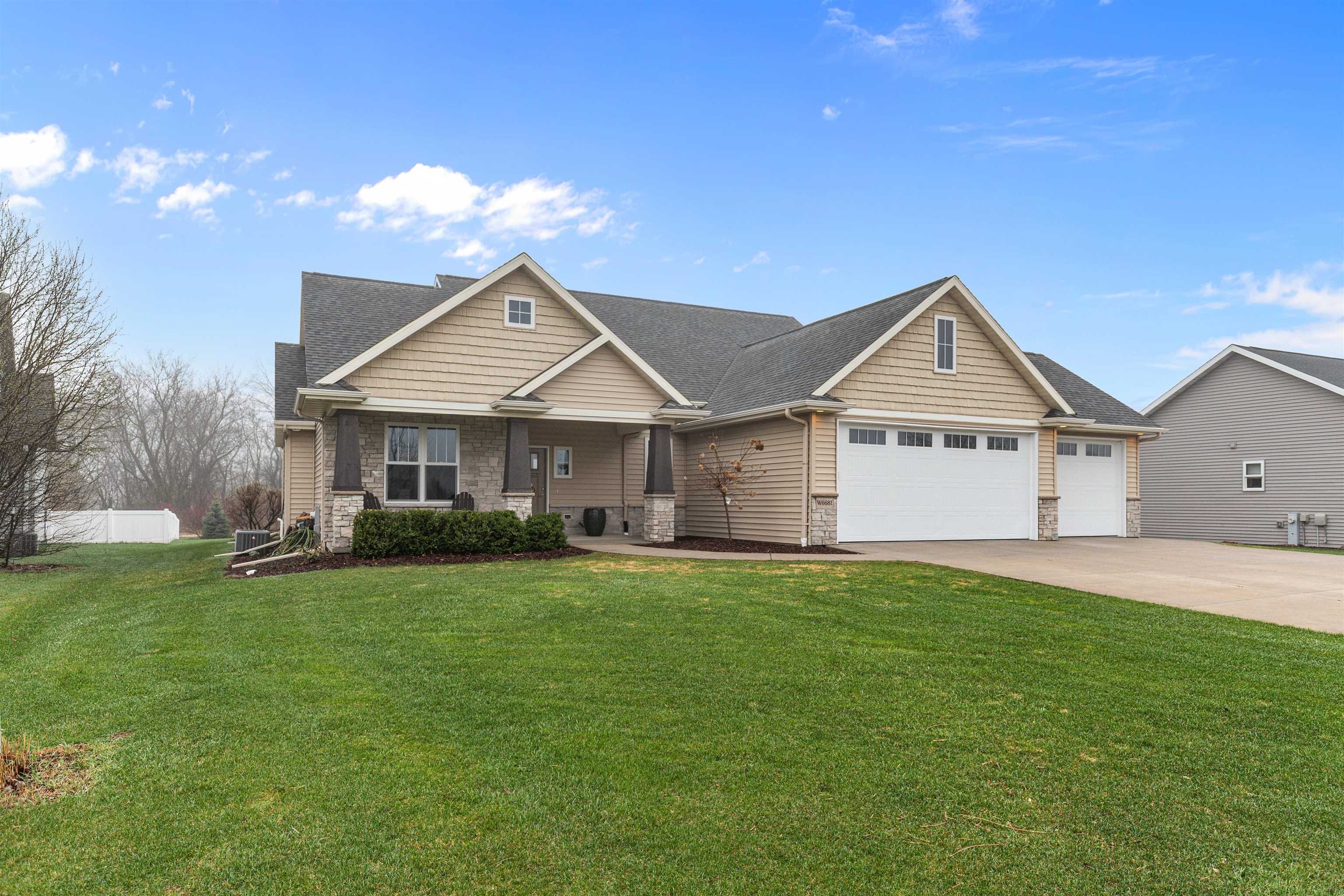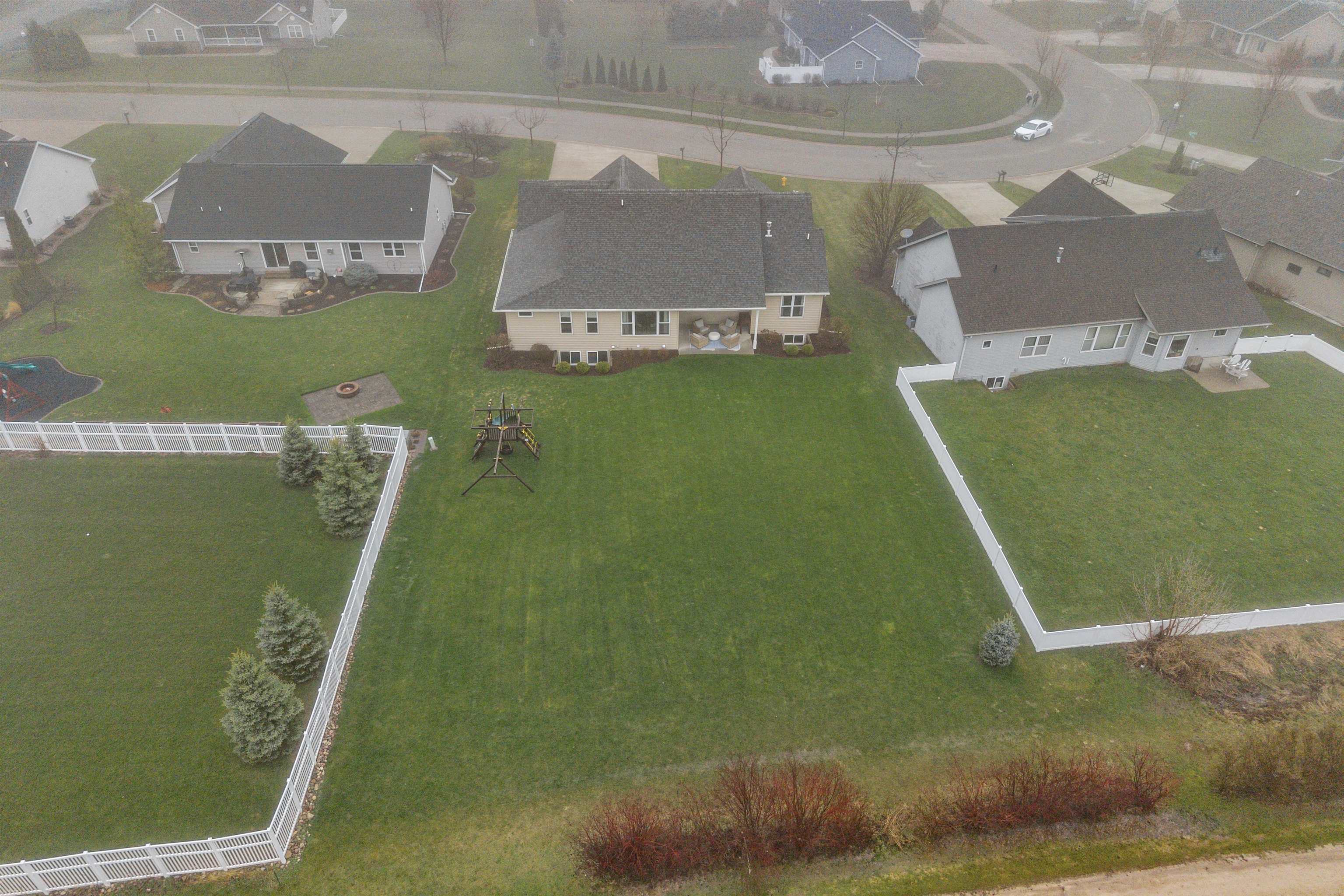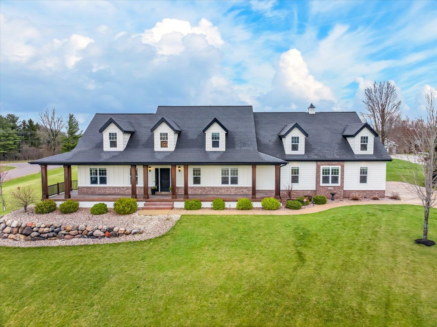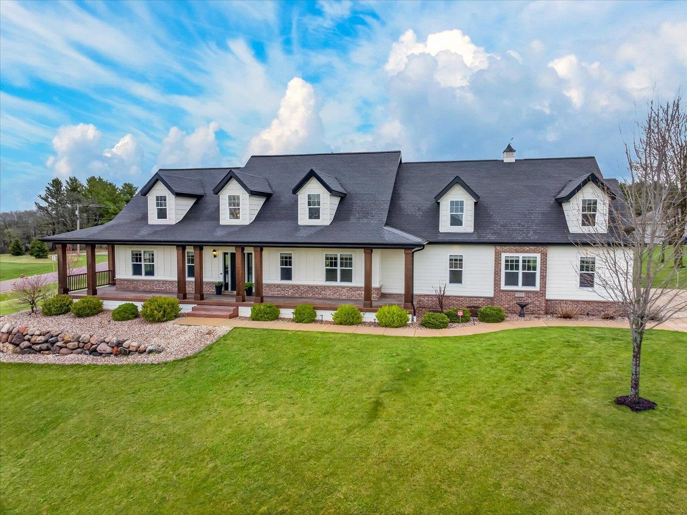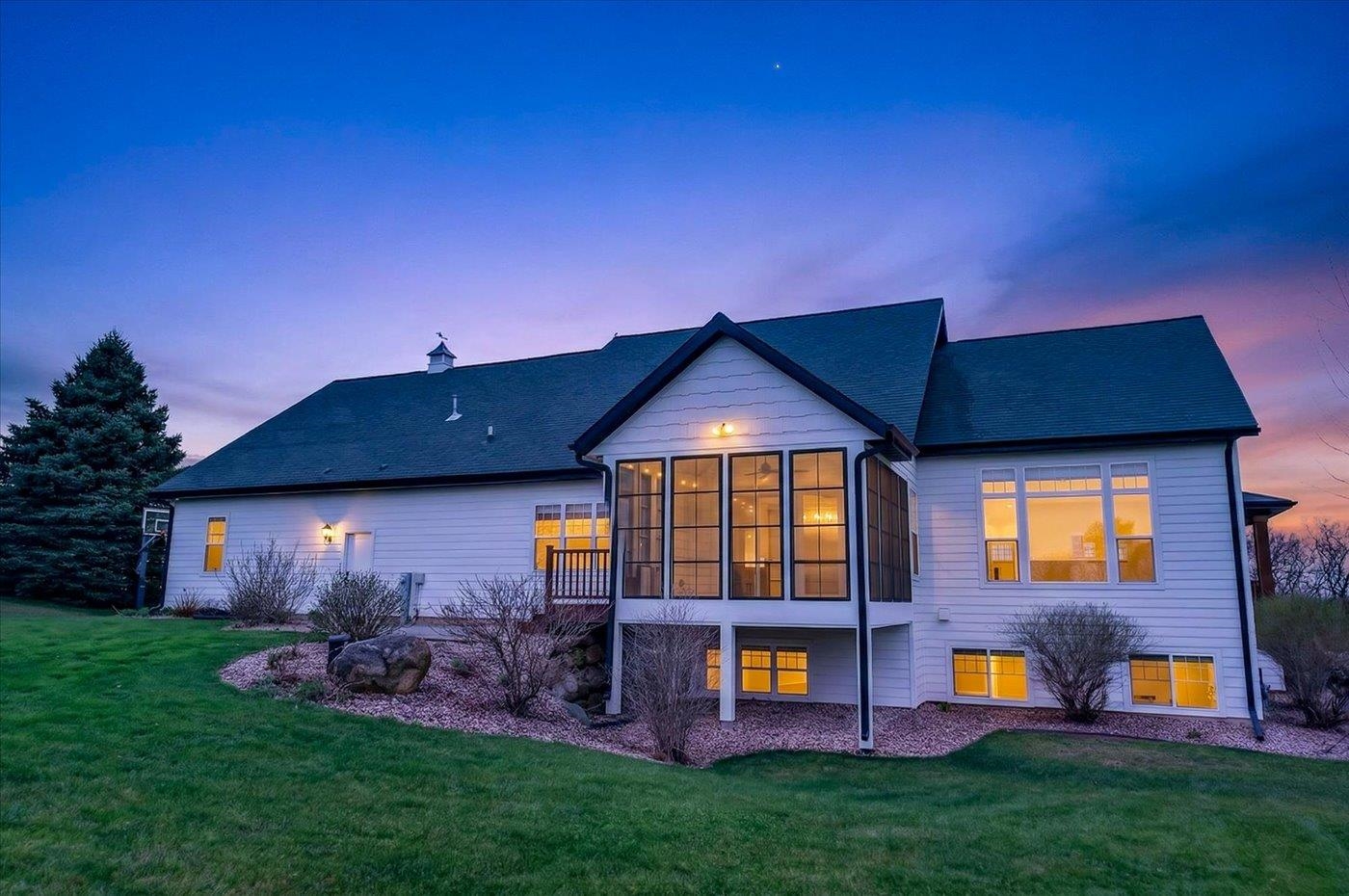 This 2017 Parade Home in Greenville offers 6 bedrooms, 4.5 bathrooms, and an exceptionally spacious layout. Zero-entry design adds convenience, while the upper level features a second primary suite tucked behind a hidden door. The open main living area is highlighted by beautiful stonework, a fireplace, built-ins, ceiling detail, and a large kitchen with attractive finishes. The dining area opens to a covered back patio overlooking a spacious backyard. The finished lower level offers a large rec room, additional bedrooms, a full bath, storage room, and unfinished flex space currently used as a workout room. Additional highlights 3-zone heating and a tankless water heater. Just a few blocks from Appleton airport and Chaska Golf Course, this home combines space, style, and flexibility.