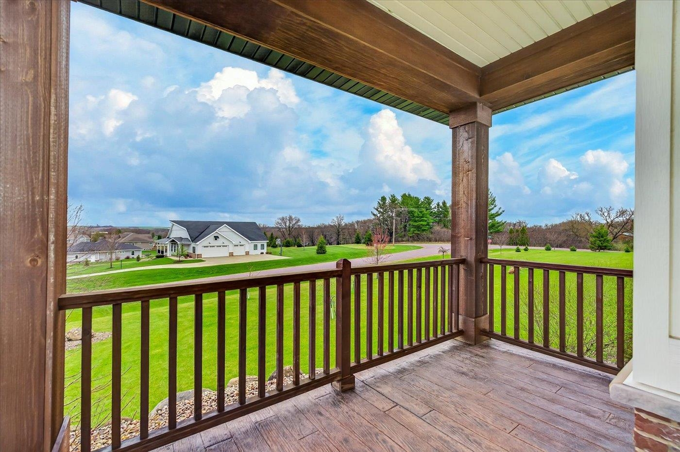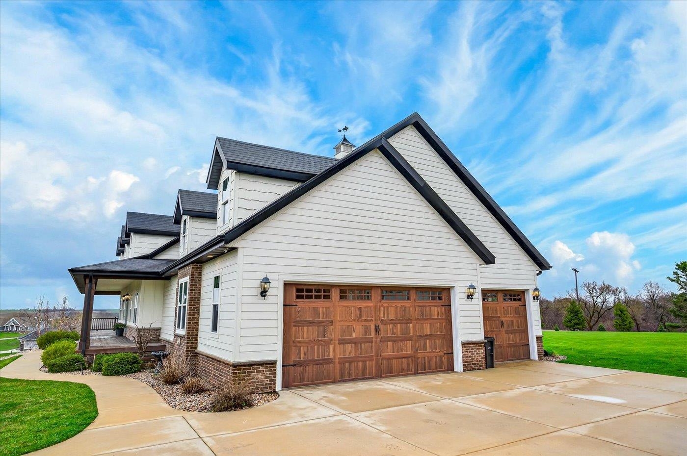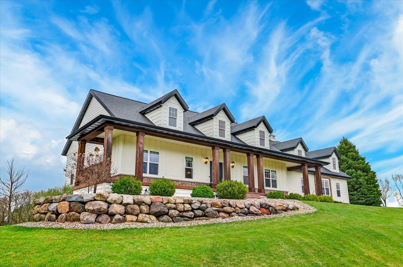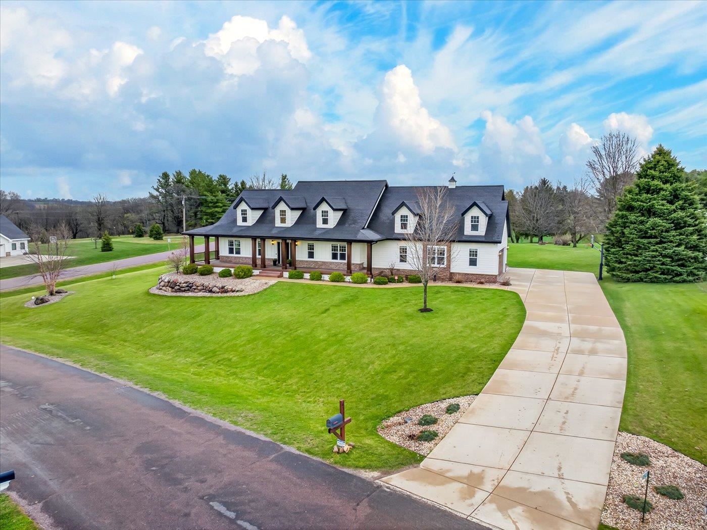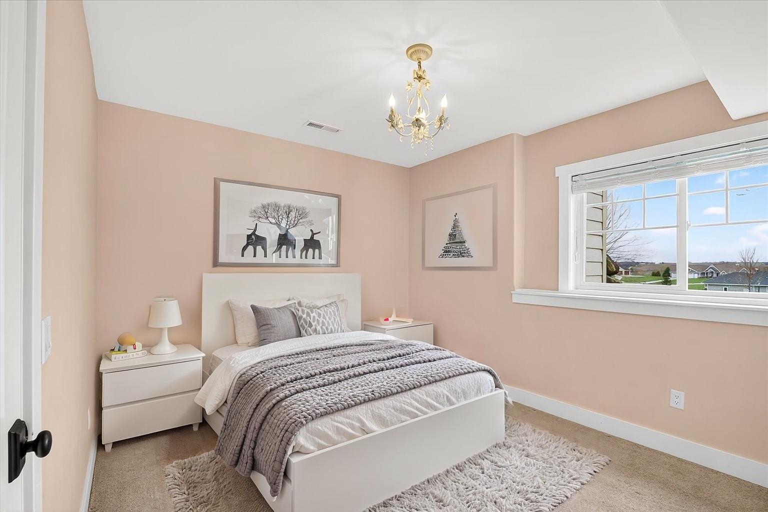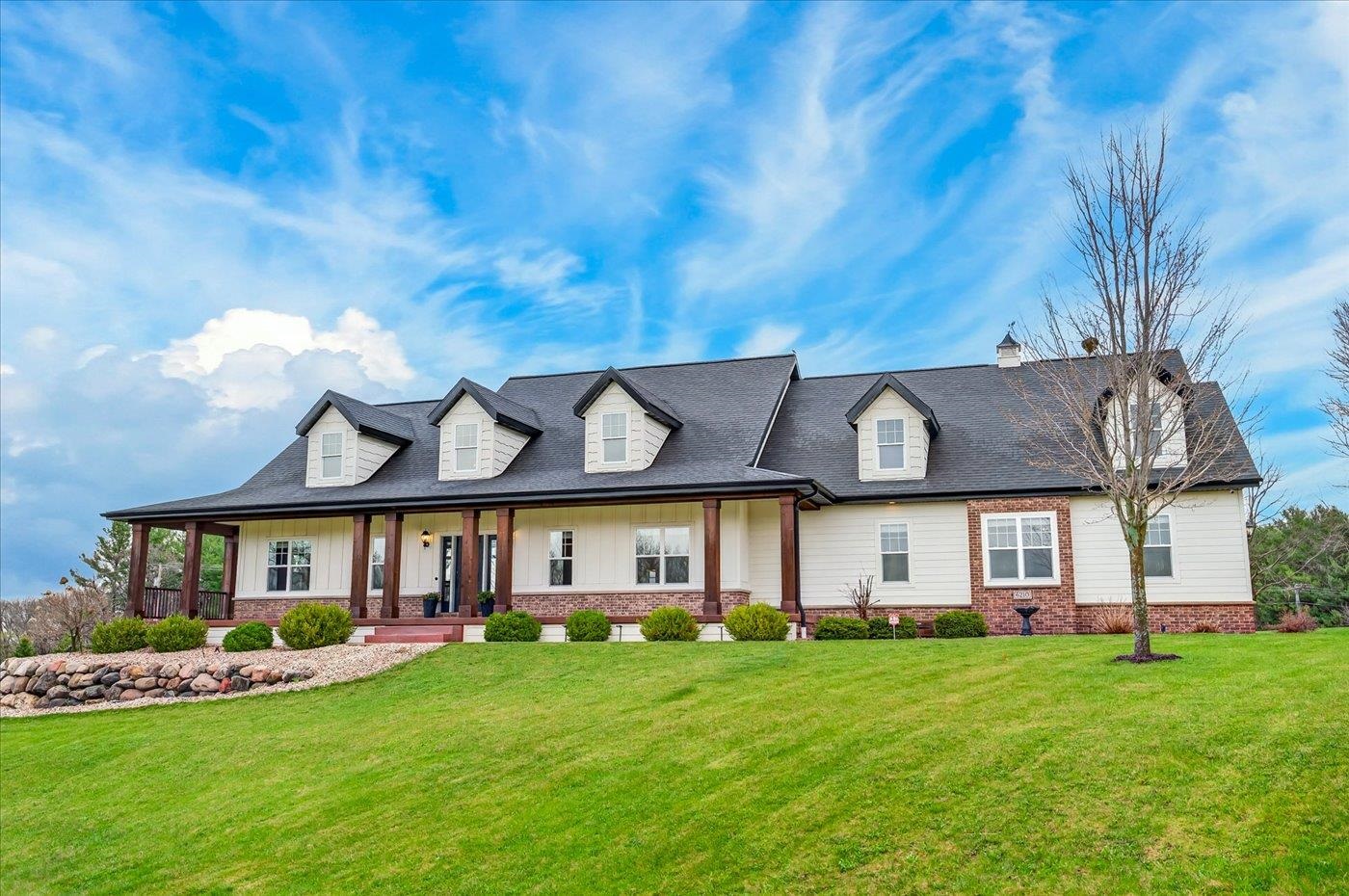 This 2017 Parade Home in Greenville offers 6 bedrooms, 4.5 bathrooms, and an exceptionally spacious layout. Zero-entry design adds convenience, while the upper level features a second primary suite tucked behind a hidden door. The open main living area is highlighted by beautiful stonework, a fireplace, built-ins, ceiling detail, and a large kitchen with attractive finishes. The dining area opens to a covered back patio overlooking a spacious backyard. The finished lower level offers a large rec room, additional bedrooms, a full bath, storage room, and unfinished flex space currently used as a workout room. Additional highlights 3-zone heating and a tankless water heater. Just a few blocks from Appleton airport and Chaska Golf Course, this home combines space, style, and flexibility.