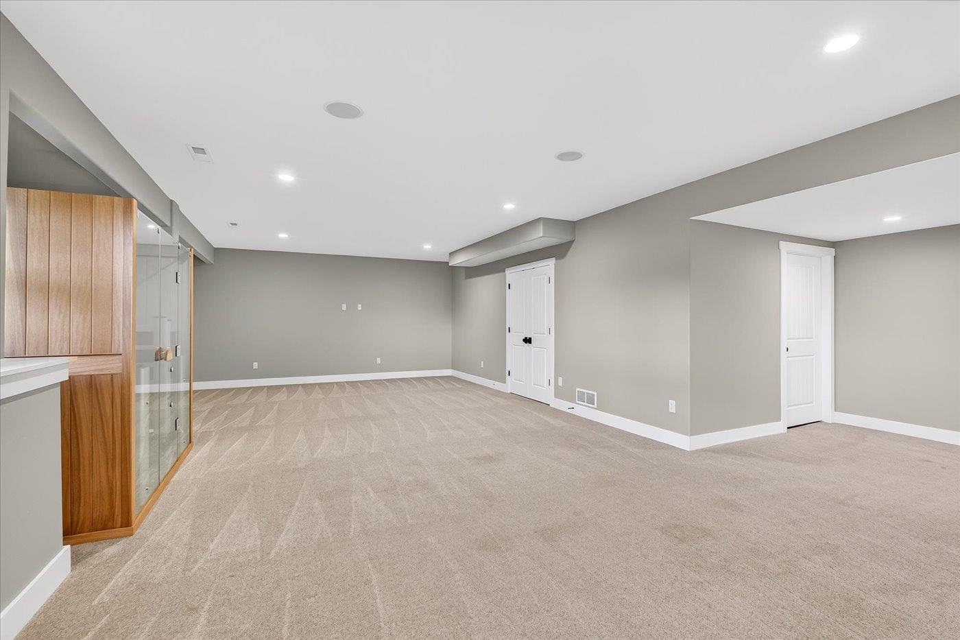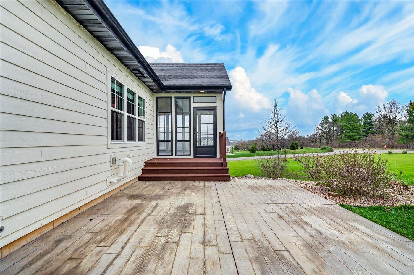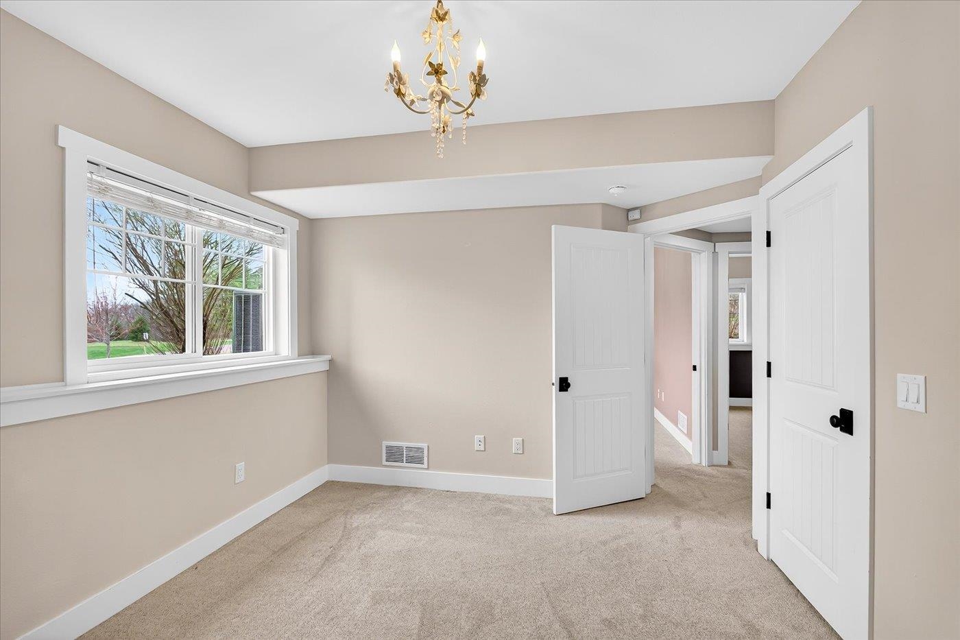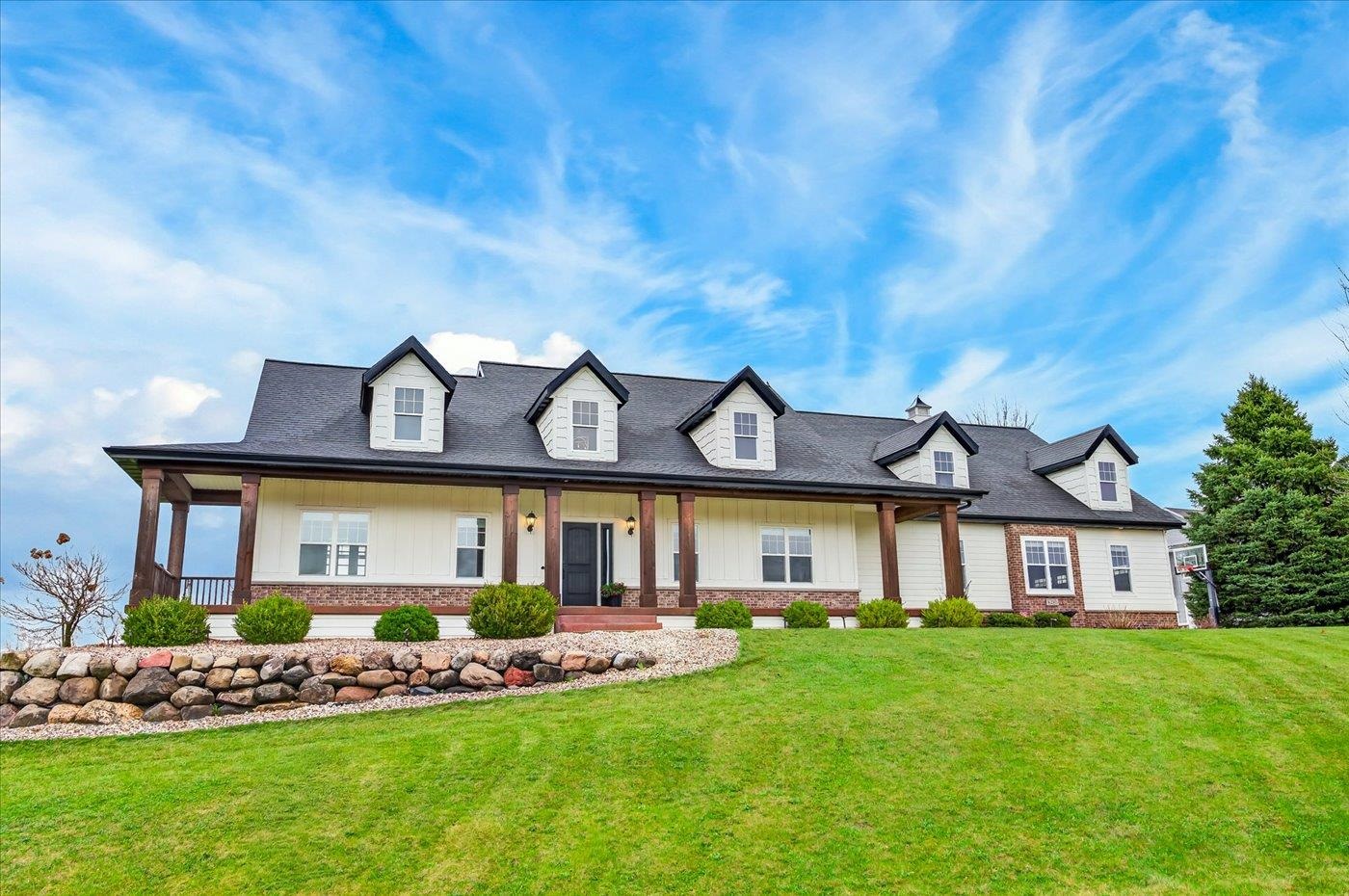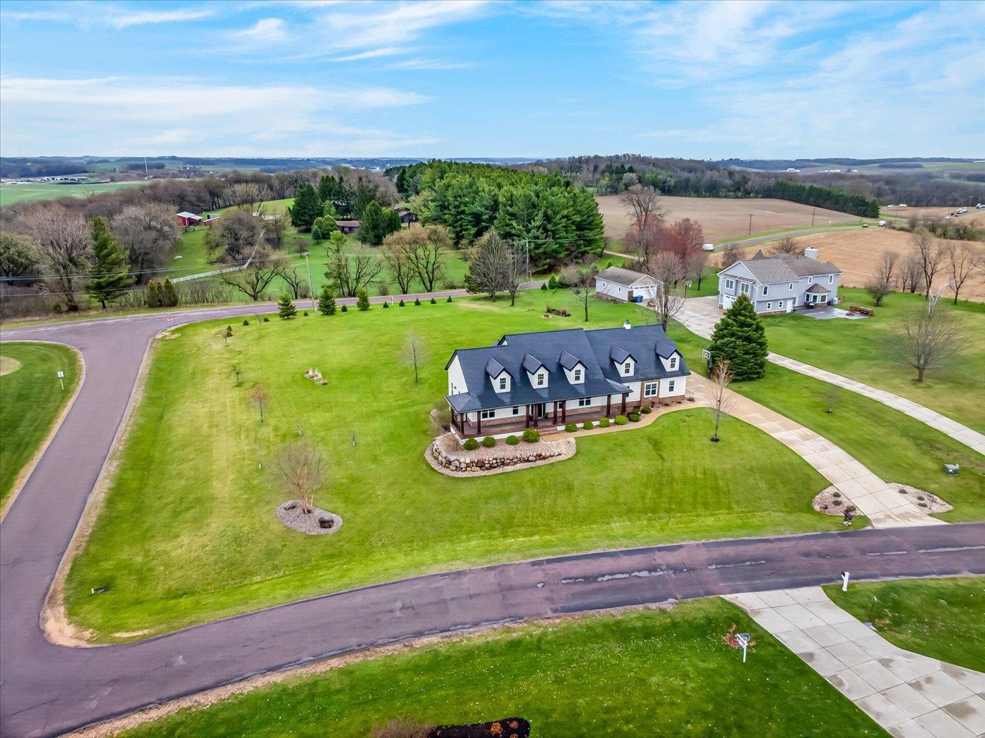 This 2017 Parade Home in Greenville offers 6 bedrooms, 4.5 bathrooms, and an exceptionally spacious layout. Zero-entry design adds convenience, while the upper level features a second primary suite tucked behind a hidden door. The open main living area is highlighted by beautiful stonework, a fireplace, built-ins, ceiling detail, and a large kitchen with attractive finishes. The dining area opens to a covered back patio overlooking a spacious backyard. The finished lower level offers a large rec room, additional bedrooms, a full bath, storage room, and unfinished flex space currently used as a workout room. Additional highlights 3-zone heating and a tankless water heater. Just a few blocks from Appleton airport and Chaska Golf Course, this home combines space, style, and flexibility.
