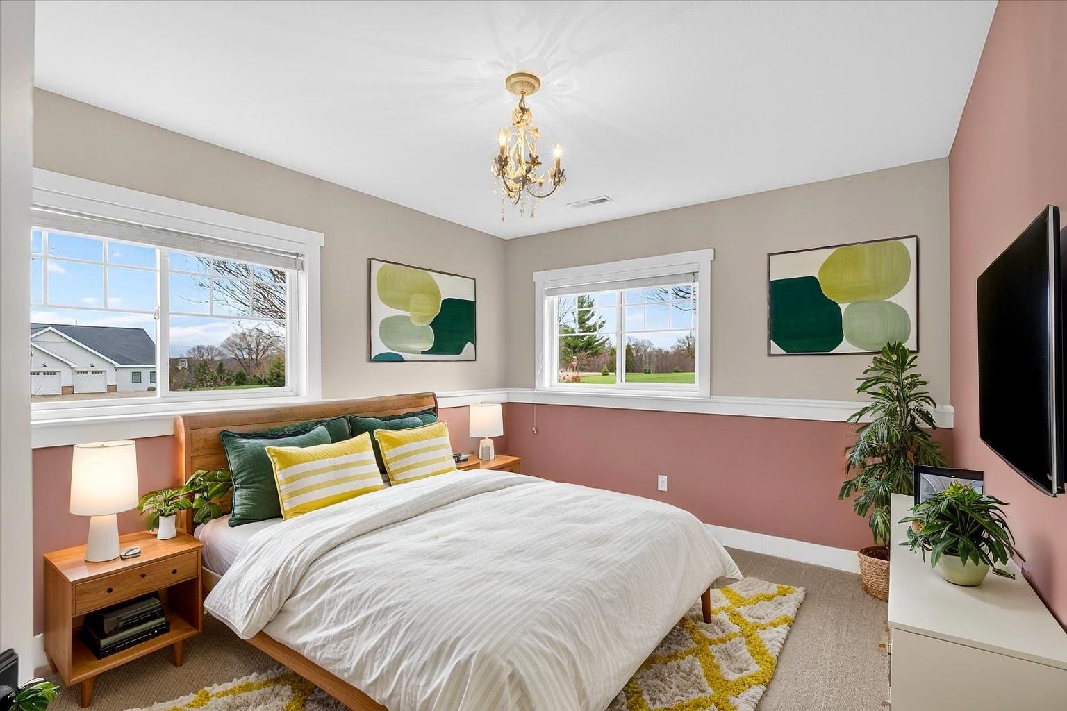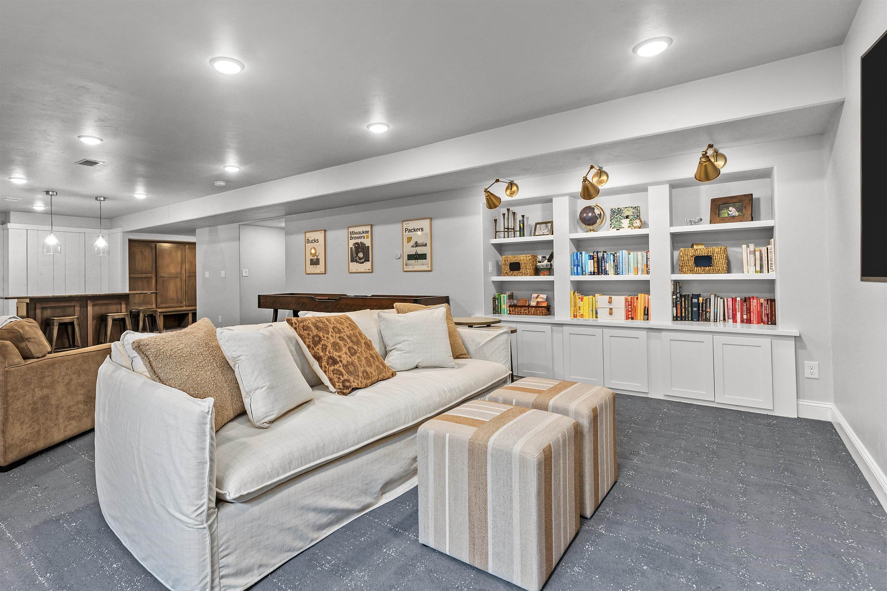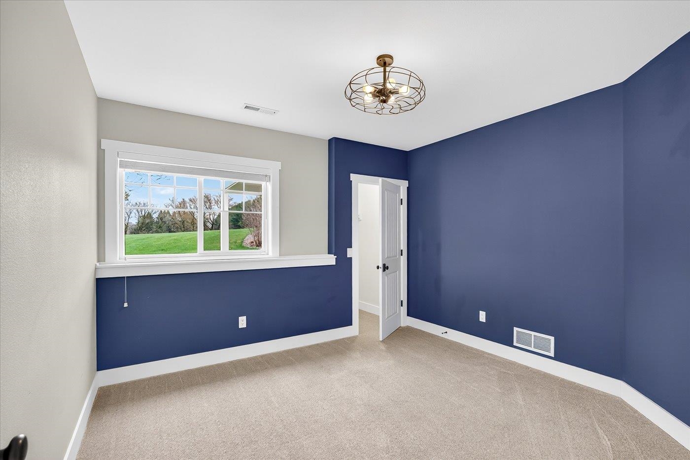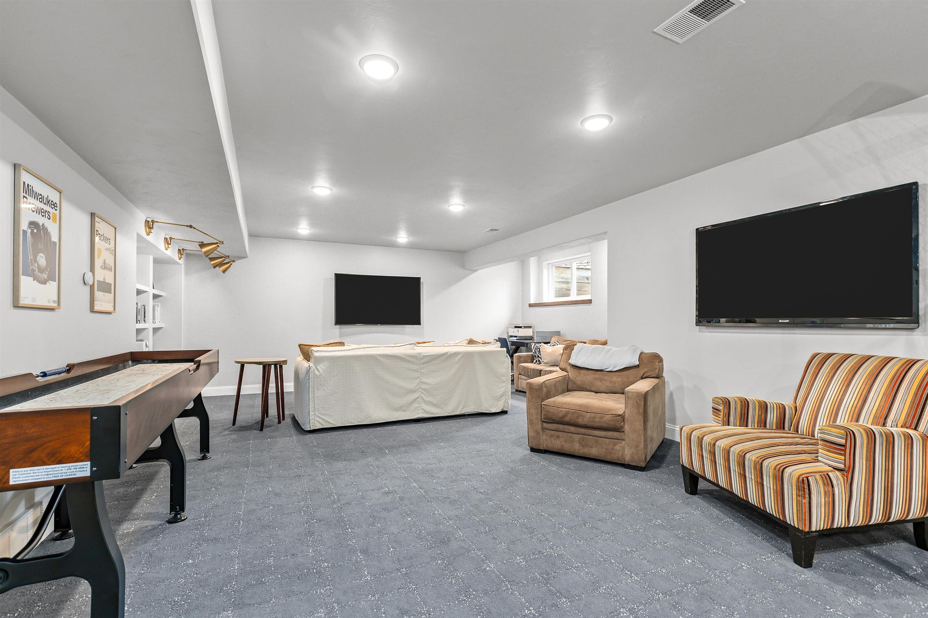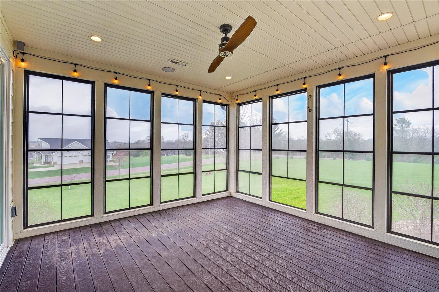 This 2017 Parade Home in Greenville offers 6 bedrooms, 4.5 bathrooms, and an exceptionally spacious layout. Zero-entry design adds convenience, while the upper level features a second primary suite tucked behind a hidden door. The open main living area is highlighted by beautiful stonework, a fireplace, built-ins, ceiling detail, and a large kitchen with attractive finishes. The dining area opens to a covered back patio overlooking a spacious backyard. The finished lower level offers a large rec room, additional bedrooms, a full bath, storage room, and unfinished flex space currently used as a workout room. Additional highlights 3-zone heating and a tankless water heater. Just a few blocks from Appleton airport and Chaska Golf Course, this home combines space, style, and flexibility.