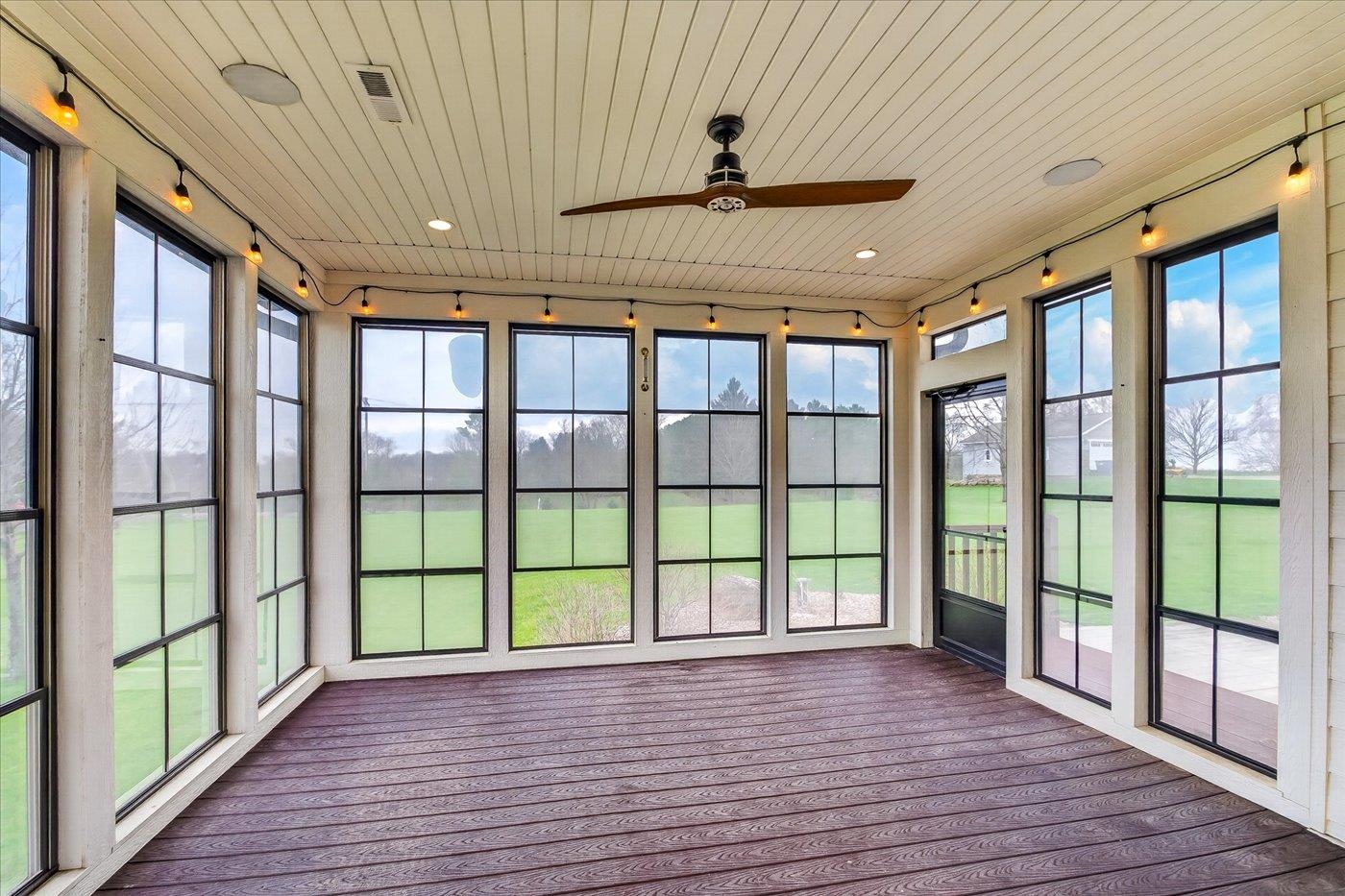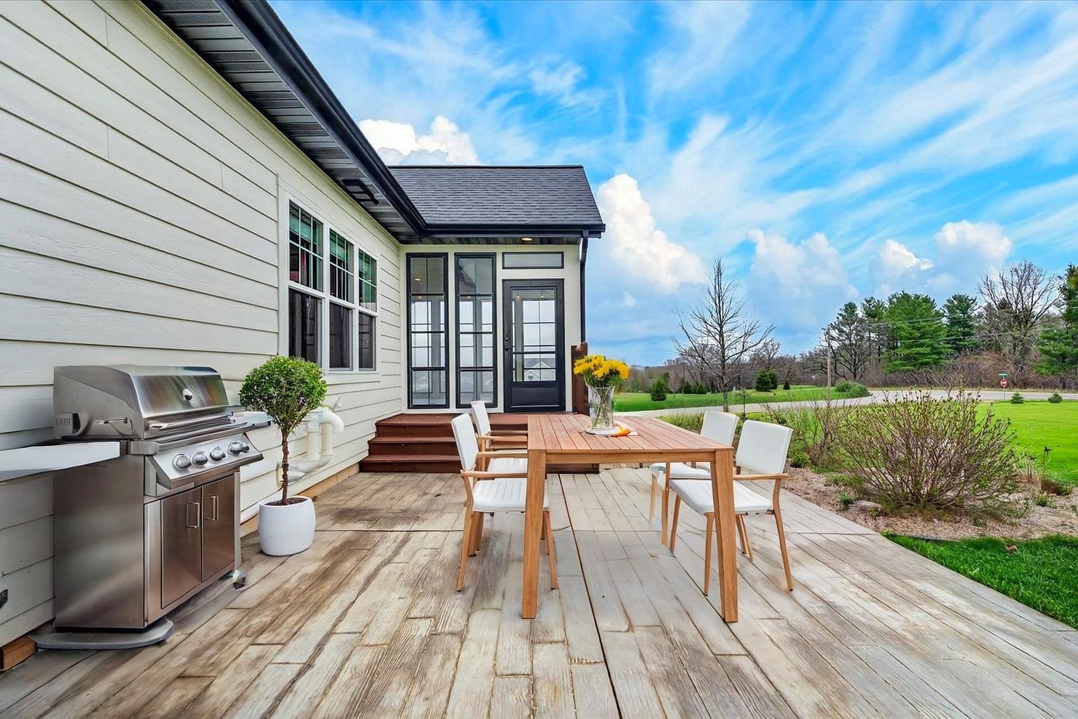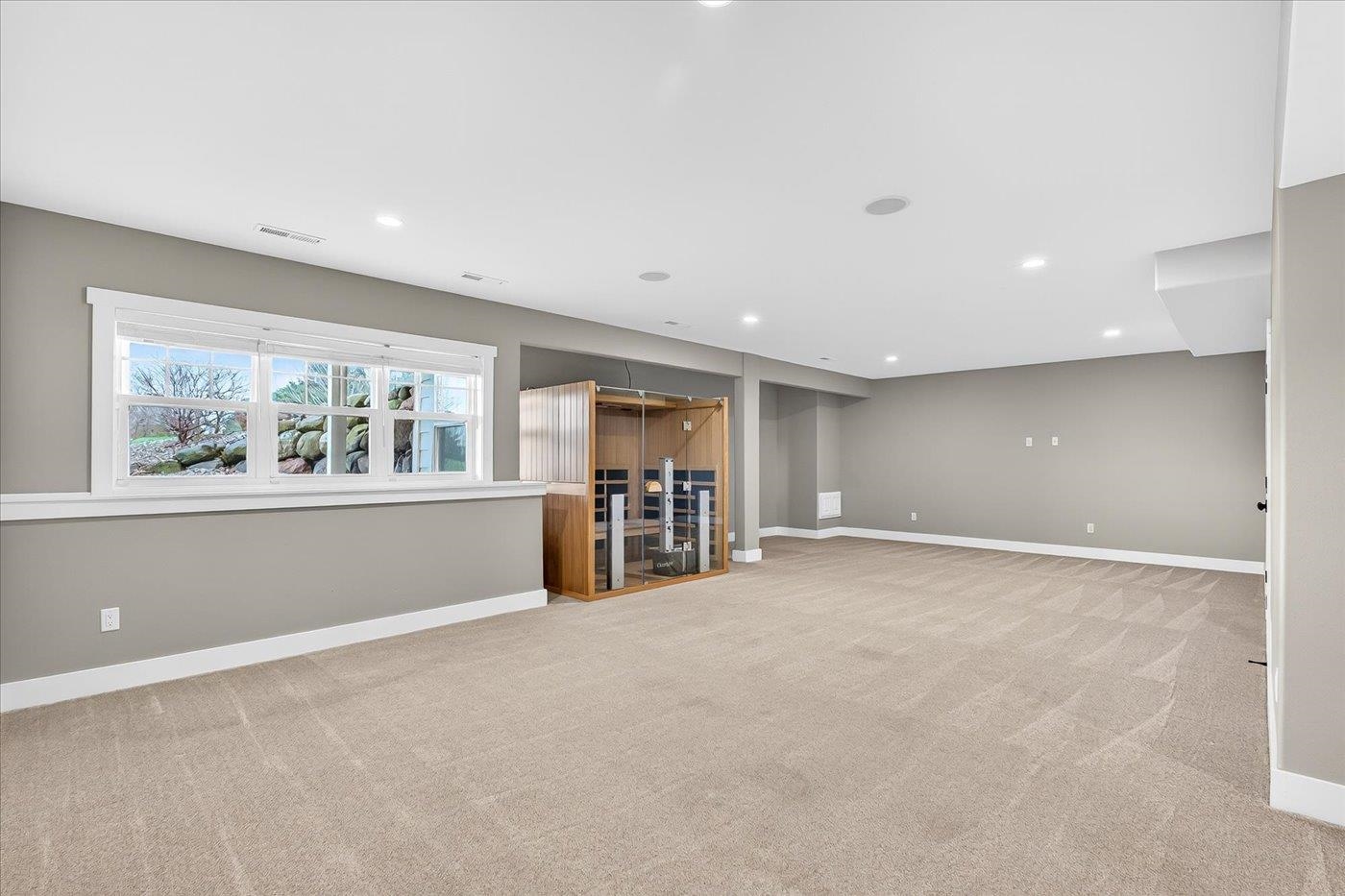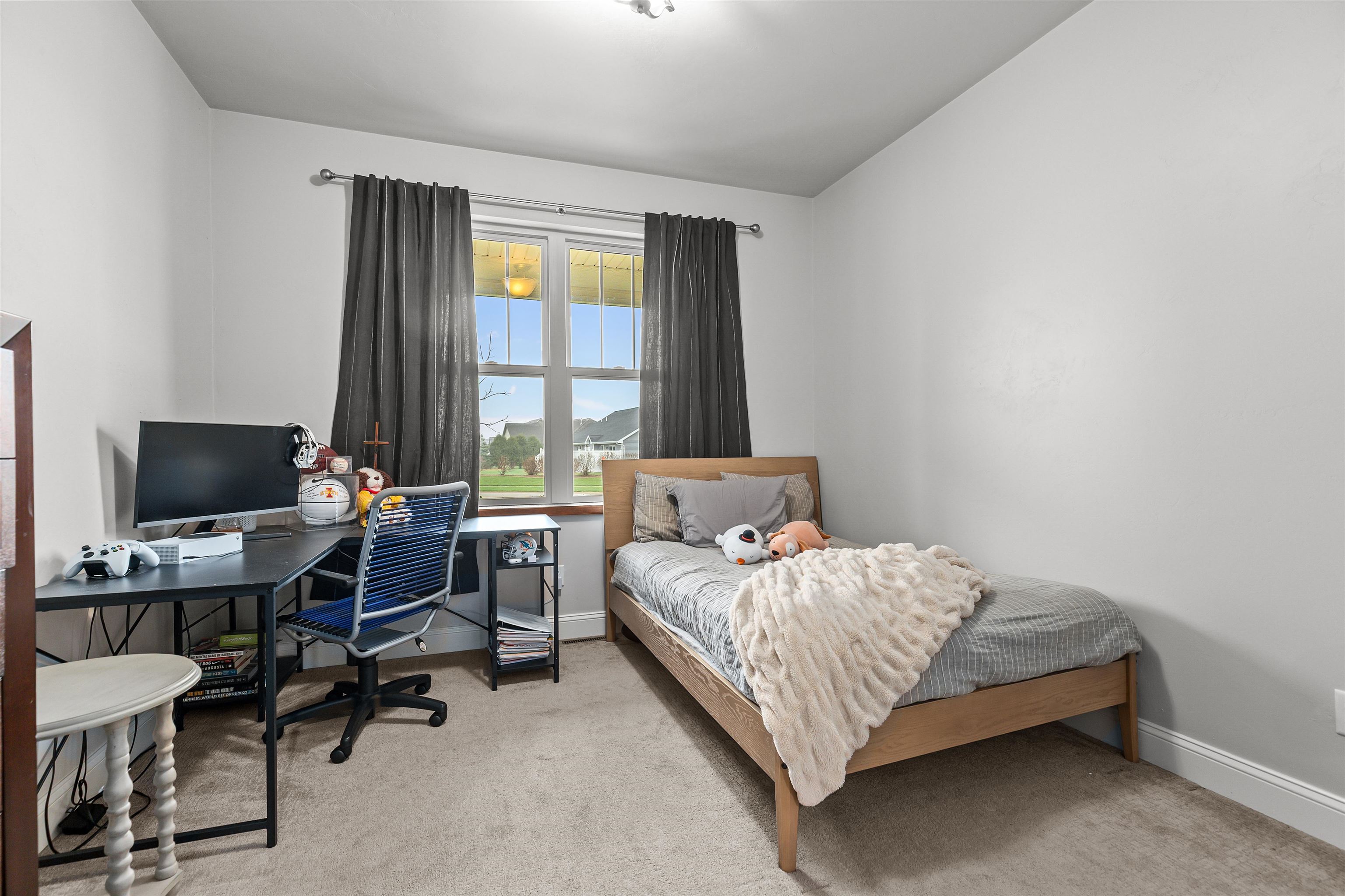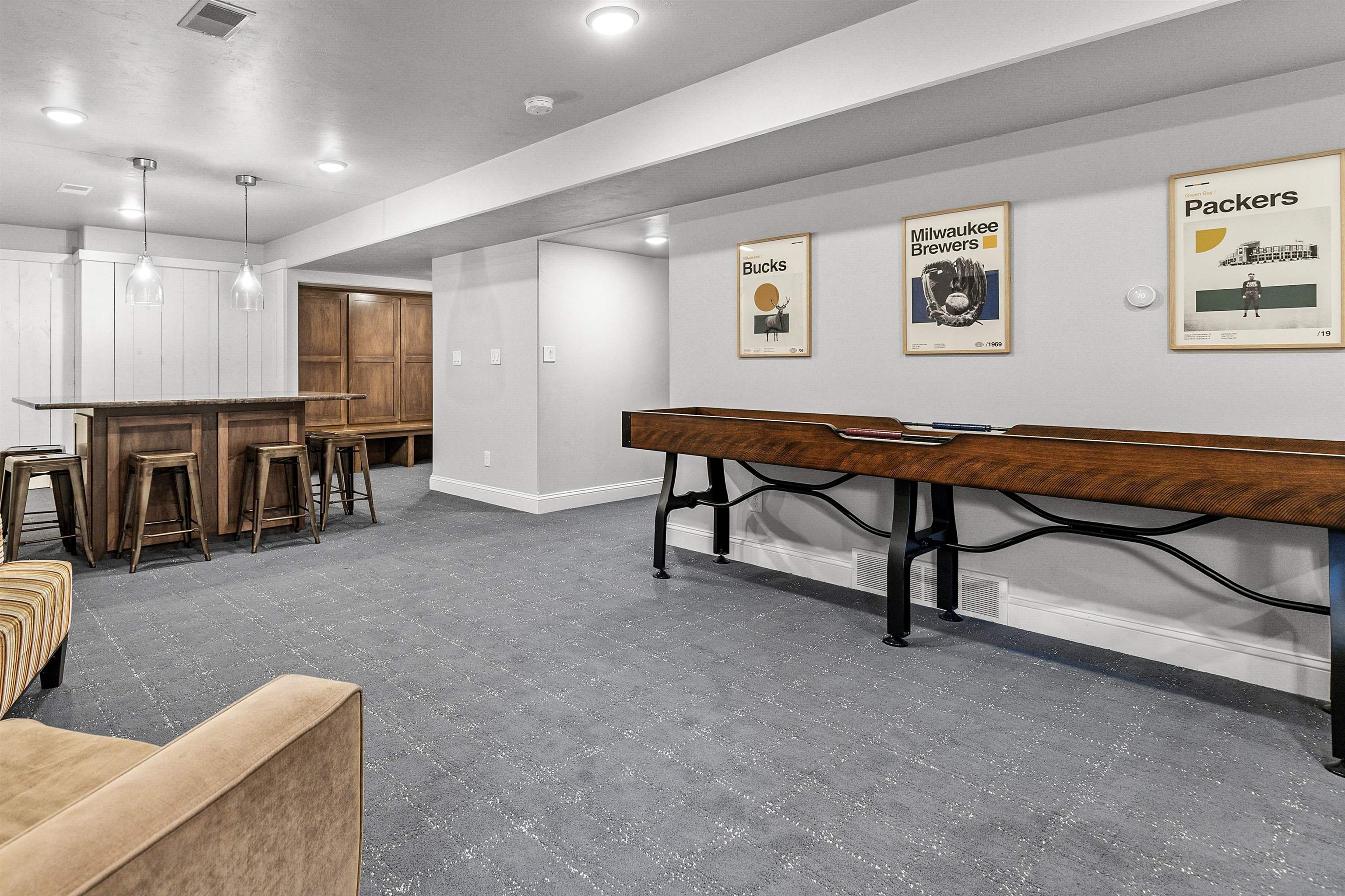 This 2017 Parade Home in Greenville offers 6 bedrooms, 4.5 bathrooms, and an exceptionally spacious layout. Zero-entry design adds convenience, while the upper level features a second primary suite tucked behind a hidden door. The open main living area is highlighted by beautiful stonework, a fireplace, built-ins, ceiling detail, and a large kitchen with attractive finishes. The dining area opens to a covered back patio overlooking a spacious backyard. The finished lower level offers a large rec room, additional bedrooms, a full bath, storage room, and unfinished flex space currently used as a workout room. Additional highlights 3-zone heating and a tankless water heater. Just a few blocks from Appleton airport and Chaska Golf Course, this home combines space, style, and flexibility.