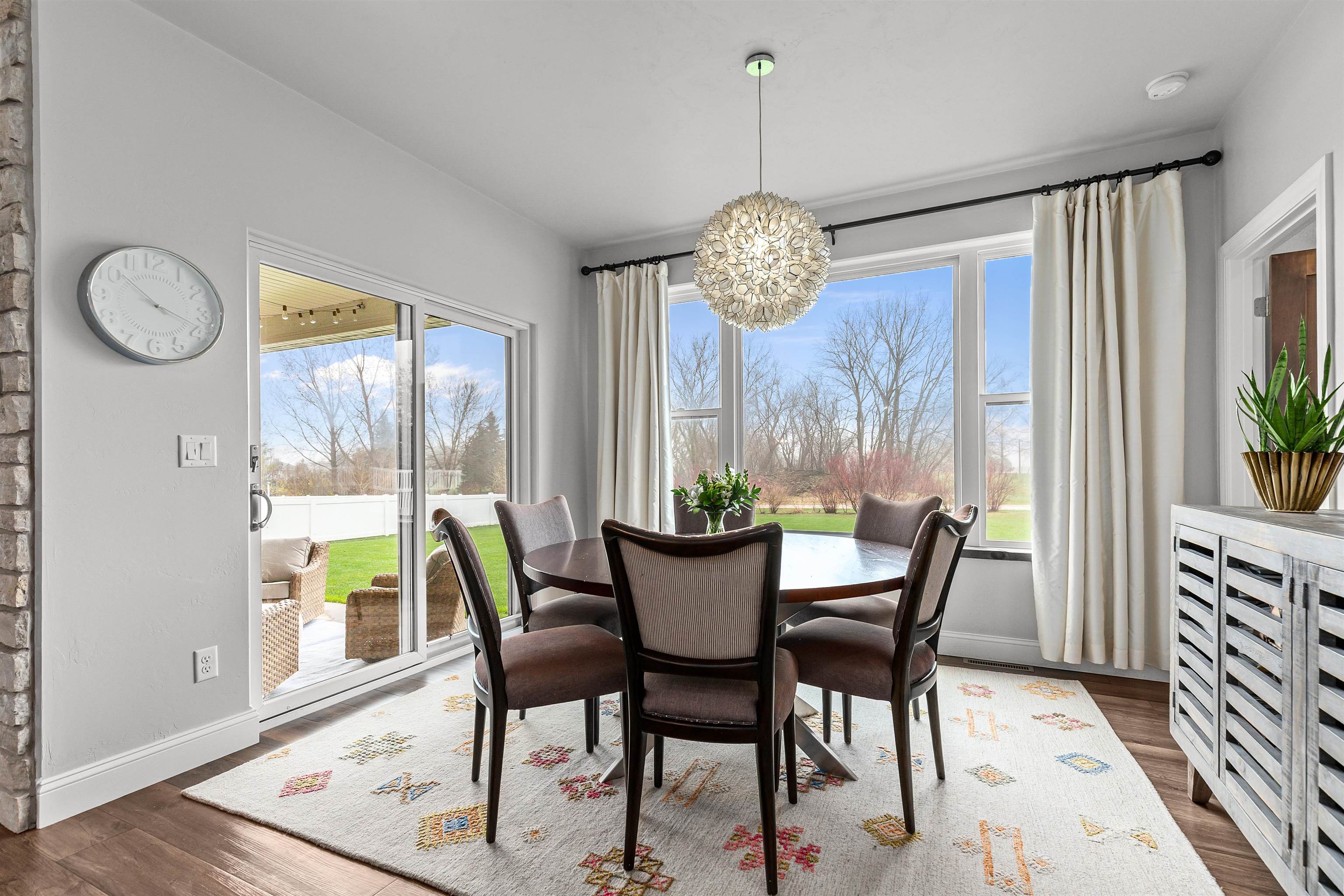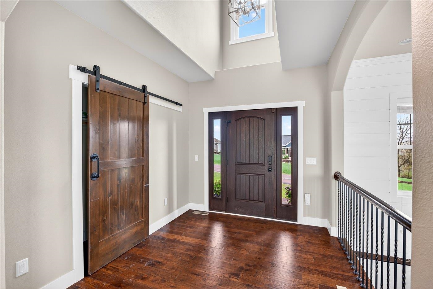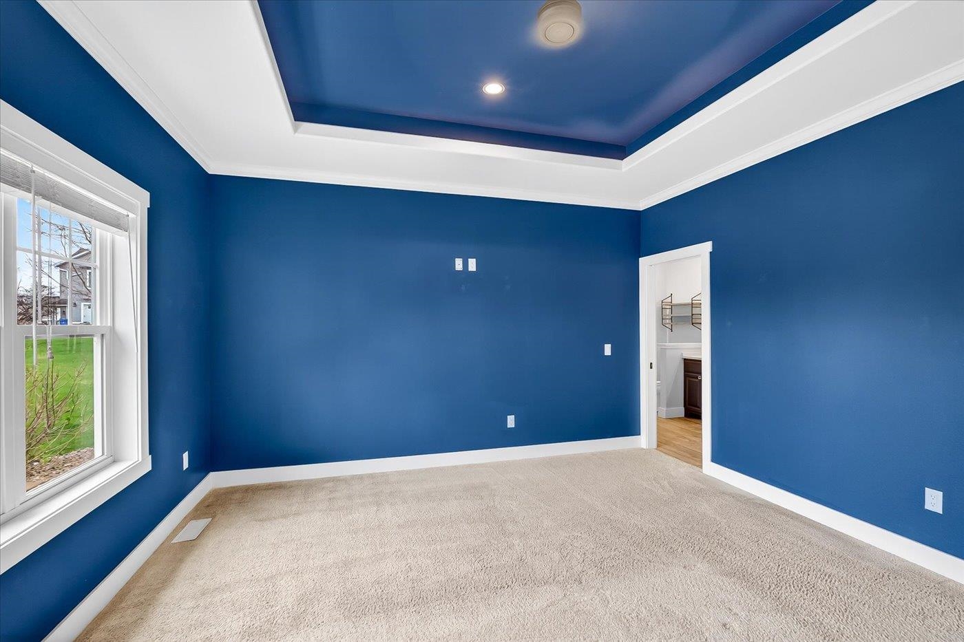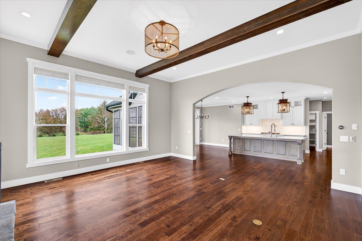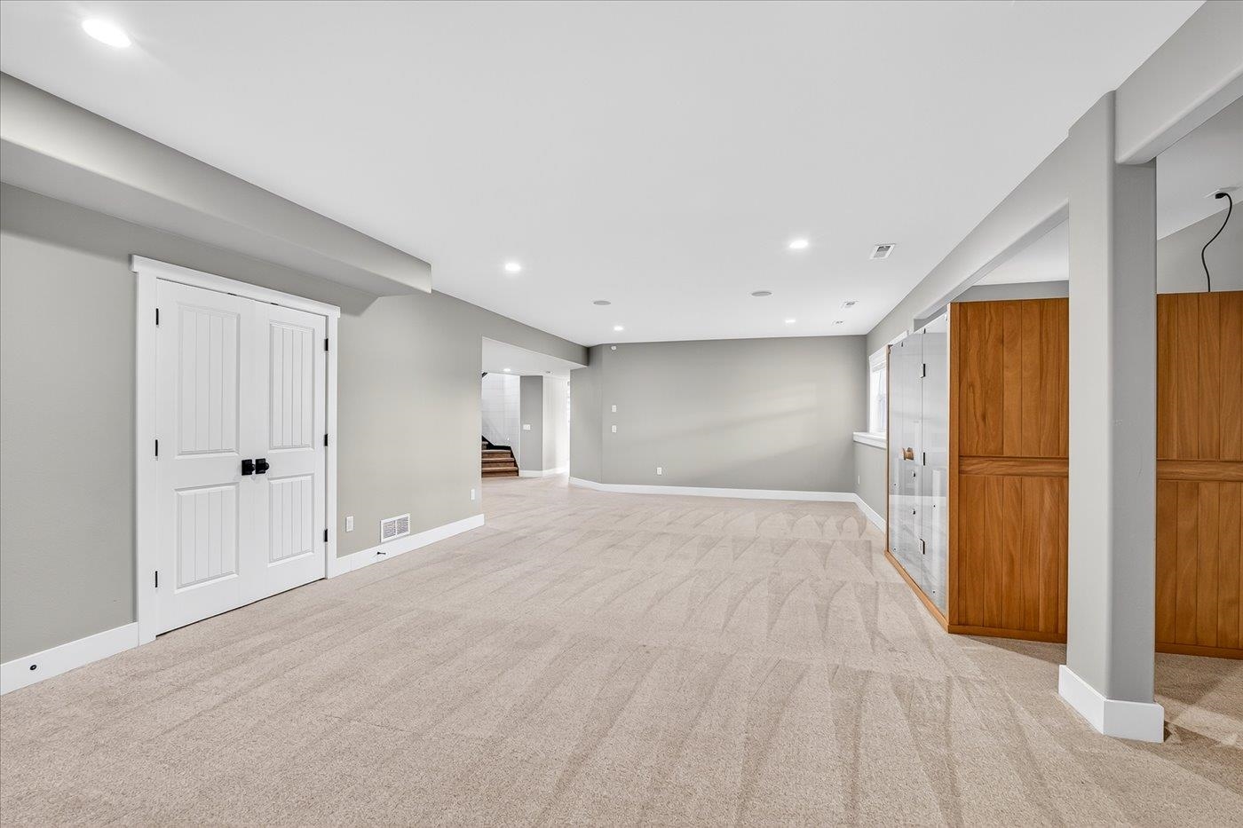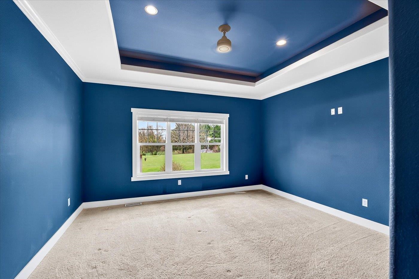 This 2017 Parade Home in Greenville offers 6 bedrooms, 4.5 bathrooms, and an exceptionally spacious layout. Zero-entry design adds convenience, while the upper level features a second primary suite tucked behind a hidden door. The open main living area is highlighted by beautiful stonework, a fireplace, built-ins, ceiling detail, and a large kitchen with attractive finishes. The dining area opens to a covered back patio overlooking a spacious backyard. The finished lower level offers a large rec room, additional bedrooms, a full bath, storage room, and unfinished flex space currently used as a workout room. Additional highlights 3-zone heating and a tankless water heater. Just a few blocks from Appleton airport and Chaska Golf Course, this home combines space, style, and flexibility.