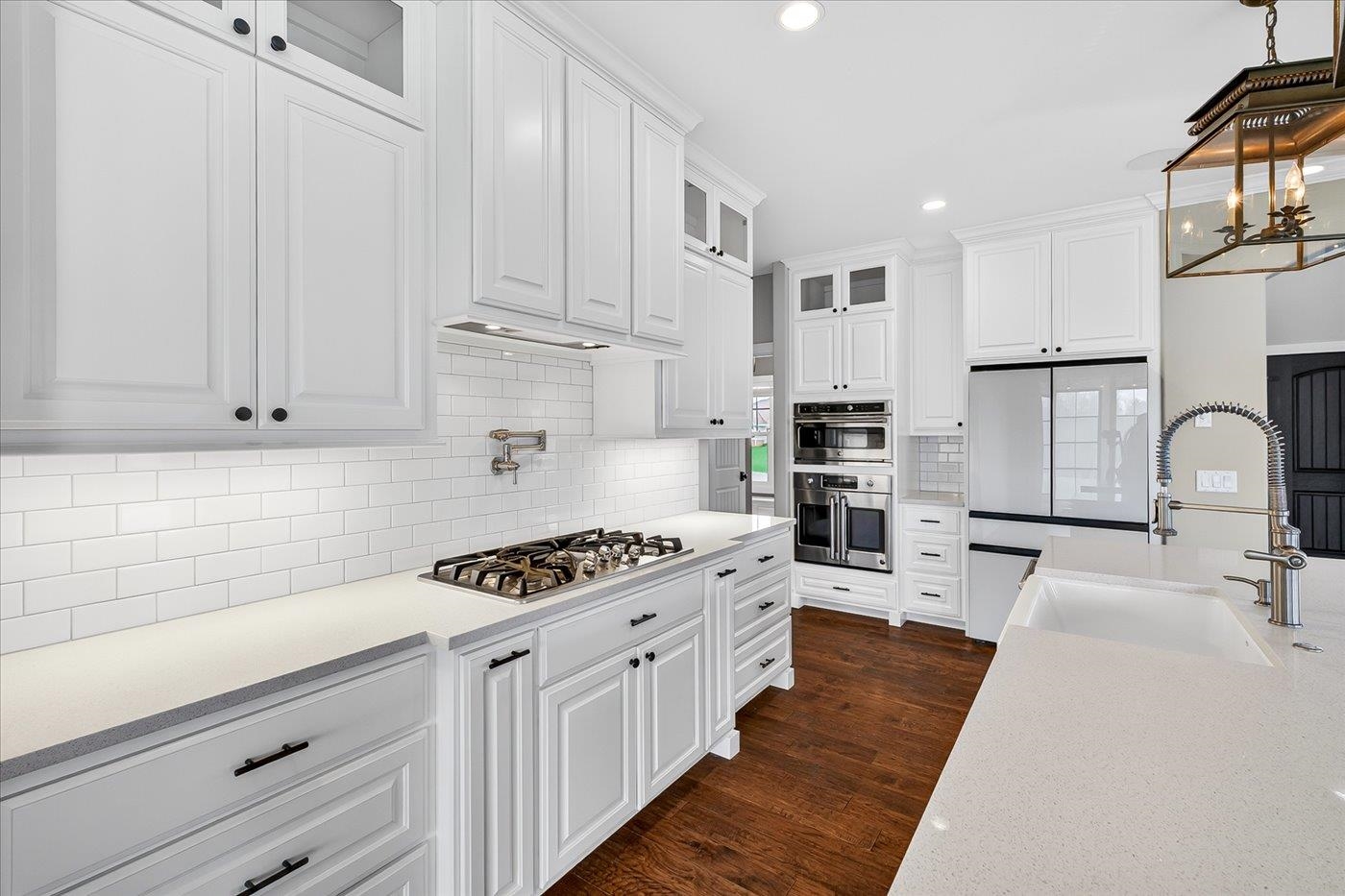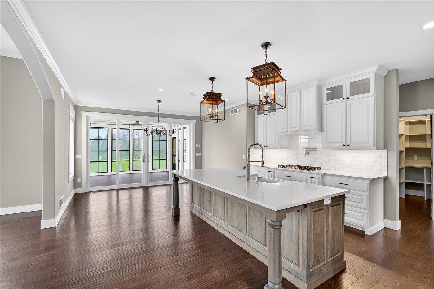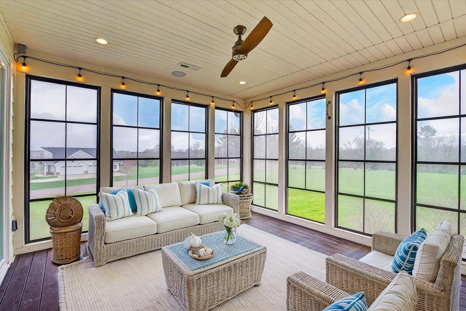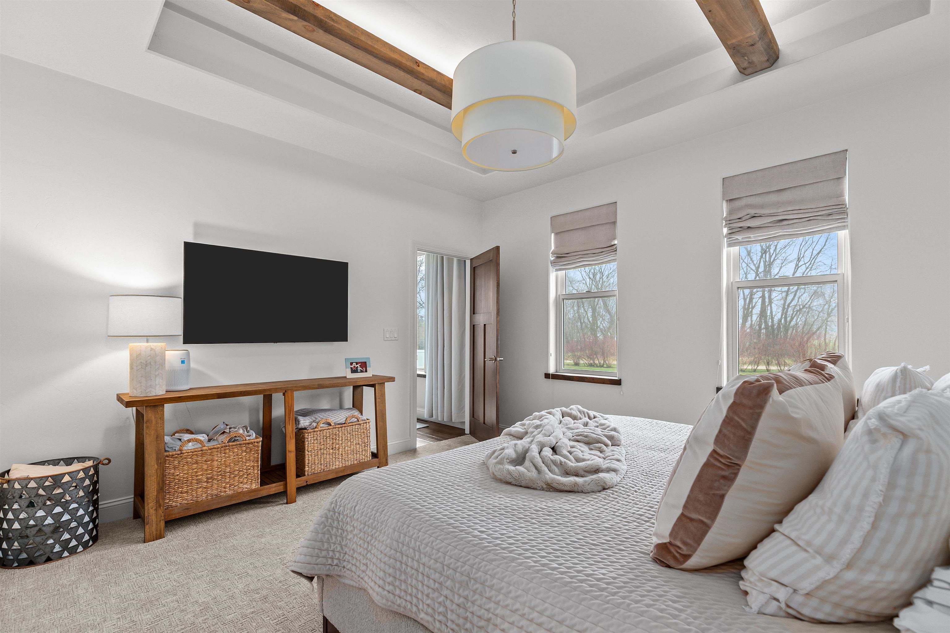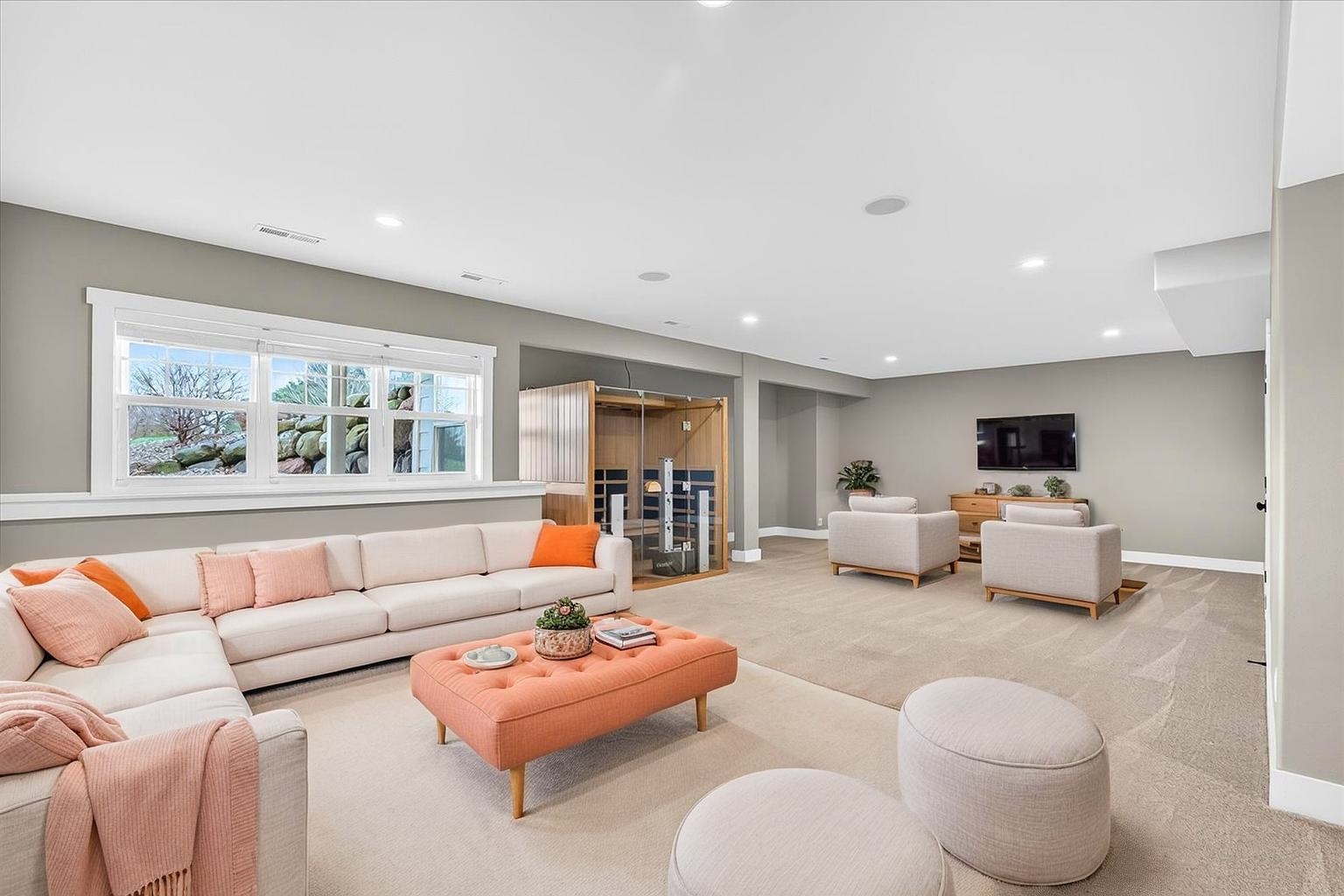 This 2017 Parade Home in Greenville offers 6 bedrooms, 4.5 bathrooms, and an exceptionally spacious layout. Zero-entry design adds convenience, while the upper level features a second primary suite tucked behind a hidden door. The open main living area is highlighted by beautiful stonework, a fireplace, built-ins, ceiling detail, and a large kitchen with attractive finishes. The dining area opens to a covered back patio overlooking a spacious backyard. The finished lower level offers a large rec room, additional bedrooms, a full bath, storage room, and unfinished flex space currently used as a workout room. Additional highlights 3-zone heating and a tankless water heater. Just a few blocks from Appleton airport and Chaska Golf Course, this home combines space, style, and flexibility.