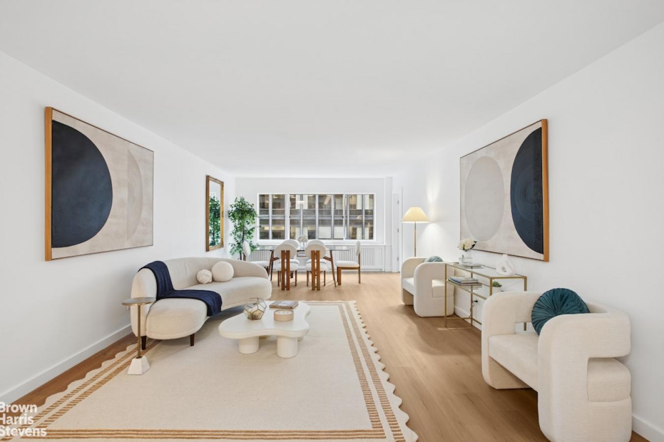 Elegant Fully Renovated 2-Bedroom Residence with Doorman in Midtown East: Welcome to this thoughtfully renovated 2-bedroom, 1-bath residence at 249 East 48th Street, offering over 1,100 square feet of well-designed living space in a full-service Midtown East building. A standout feature of the home is the expansive 370 SF living room overlooking 2nd Avenue, offering generous proportions. The space comfortably accommodates a full living setup along with a large dining area-ideal for hosting dinner parties or entertaining guests. The apartment also enjoys open views down East 48th Street from both the bedrooms and kitchen, bringing in great natural light. Recently updated, the home showcases clean, modern finishes, including wood-look LVT flooring, fresh white walls, new light fixtures, and modern hardware. The kitchen has been efficiently designed to maximize storage and usability, with white shaker cabinetry and a full suite of new stainless-steel appliances, including a dishwasher, range, refrigerator, and a microwave. The spacious primary bedroom includes a well-proportioned walk-in closet, while both bedrooms offer generous layouts and excellent light. The bathroom has been fully reimagined with modern tilework on both floors and walls, complemented by new plumbing fixtures, including a sleek vanity, an updated toilet, and a deep soaking tub with a shower. Additional upgrades include new through-wall A/C units with custom millwork enclosures beneath the windows, thoughtfully concealing both the A/C units and radiators for a clean, streamlined look. Located in a well-maintained building with a full-time doorman and elevator access, this apartment offers a comfortable and updated living experience in a convenient Midtown East location. Disclaimer: The unit layouts, square footage, and dimensions are approximate. Sponsor reserves the right to make changes in accordance with the offering plan. Furniture layouts shown are for concept only. The complete offering terms are in an offering plan available from Sponsor. Offered by prospectus only. File No. 82-0208; Sponsor: Turtle Bay House Limited Liability Company, c/o Metro Hudson Property Management Group LLC, 845 Third Avenue, 6th Floor, New York, NY 10022.