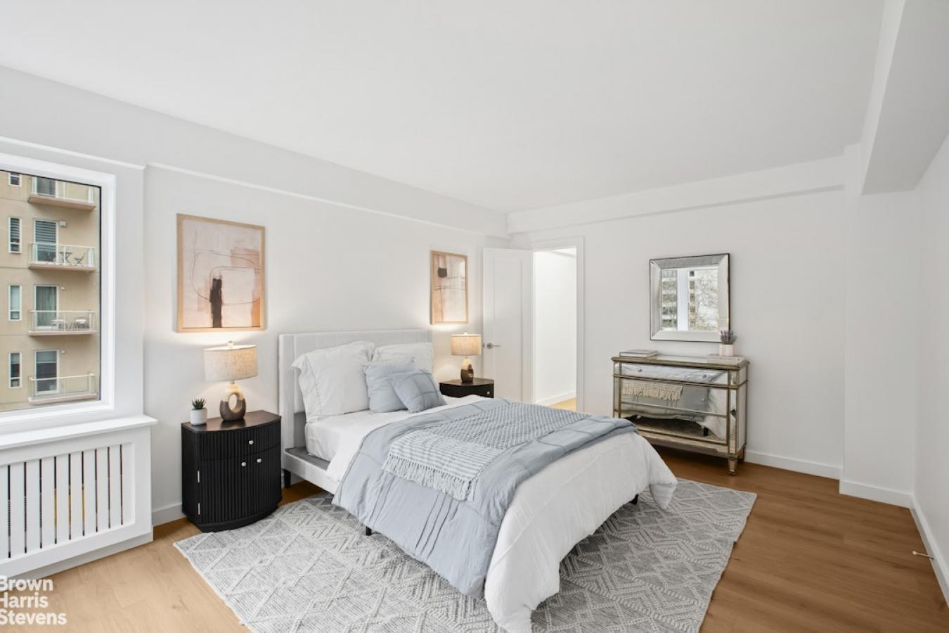 Apartment 5BN is a beautiful two-bedroom, two-bath residence offering just shy of 1,000 square feet of interior space and a 50-square-foot private balcony for both relaxing and entertaining. The primary suite features a spacious walk-in closet and a private bathroom with double sinks and ample storage. The second full bedroom is generously proportioned.