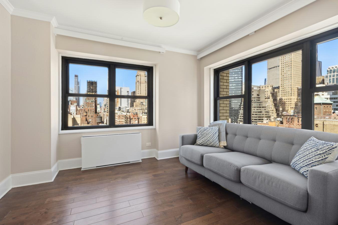 Elegant Fully Renovated 2-Bedroom Residence with Doorman in Midtown East: Welcome to this thoughtfully renovated 2-bedroom, 1-bath residence at 249 East 48th Street, offering over 1,100 square feet of well-designed living space in a full-service Midtown East building. A standout feature of the home is the expansive 370 SF living room overlooking 2nd Avenue, offering generous proportions.