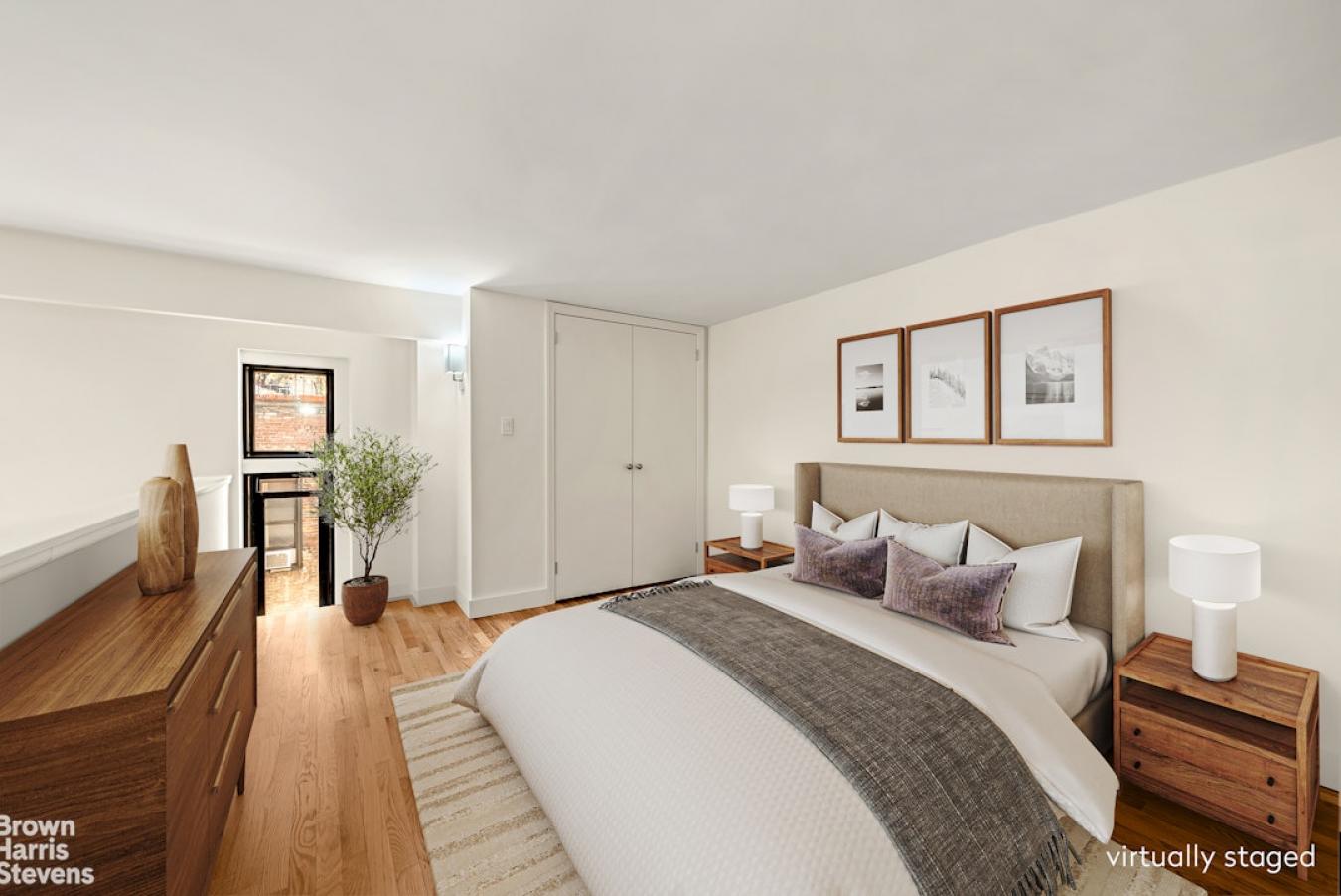 Welcome home to Apt 822, a beautifully maintained, light-filled one-bedroom, two-bathroom triplex ideally situated in the heart of Greenwich Village. Spanning three levels, the home offers an airy, loft-style layout with a dramatic double-height living room highlighted by expansive west-facing windows that bathe the space in natural light. As you enter, you will find a thoughtfully designed chefs kitchen with premium appliances, sleek cabinetry, and ample room for dining, as well as a full bathroom as an added convenience for guests. One flight up, youll find the spacious living room that offers the perfect setting for entertaining or a quiet night in; there is even a work-from-home space. Overlooking the living area, the king-sized bedroom boasts soaring ceilings, two generously sized custom closets, and its own full en-suite bath. Custom storage solutions can be found throughout the residence, adding even more to this special home. Residents of Bleecker Court enjoy a full-service lifestyle with amenities that include a 24-hour doorman, live-in superintendent, beautifully landscaped atrium and garden, bike storage, laundry facilities on alternating floors, and private storage (subject to availability). The building is pet-friendly and accommodates co-purchasing and gifting with board approval. Purchasing in a trust is not permitted. Financing is permitted up to 80% for fixed-rate mortgages and 70% for adjustable-rate mortgages. 3% working capital contribution paid by buyer.