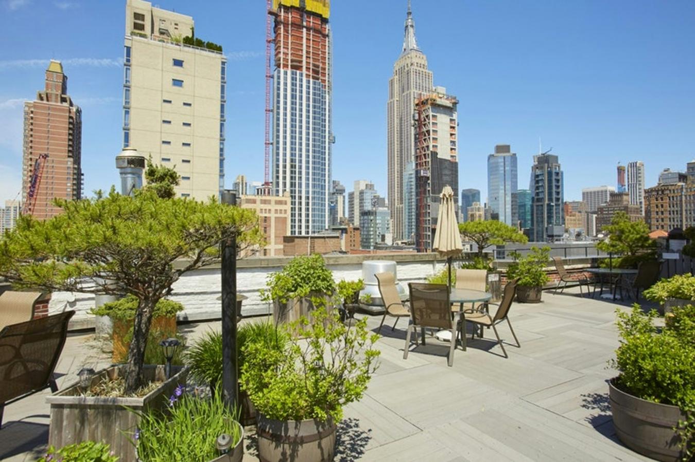 Apartment 5BN is a beautiful two-bedroom, two-bath residence offering just shy of 1,000 square feet of interior space and a 50-square-foot private balcony for both relaxing and entertaining. The primary suite features a spacious walk-in closet and a private bathroom with double sinks and ample storage. The second full bedroom is generously proportioned. A well-designed living and dining area flows seamlessly into a large open kitchen, outfitted with appliances from Miele, LG, Bosch, and Fisher & Paykel, along with marble countertops. Bathrooms are finished with porcelain wall tiles, marble vanities, Kohler fixtures, rain shower heads, and custom cabinetry. Additional highlights include bamboo wood flooring throughout the living and dining areas, an in-unit Bosch washer/dryer, and abundant natural light from south-facing windows. Despite its brightness, the home remains quiet and serene, overlooking the buildings beautifully landscaped courtyard. The 505 is a luxury boutique condominium offering a full-service experience, including a 24-hour doorman/concierge and a live-in resident manager. Amenities include a fitness center housed within a greenhouse-style structure, a tranquil courtyard garden, two landscaped rooftop terraces with lounge and dining areas, barbecues, bike storage, private storage, and laundry facilities. Designed by the acclaimed firm H. Thomas OHara, the 505 is modern sophistication, creating a thoughtful living environment. Ideally located near the Theater District, Midtowns business core, Hudson River Park, and Hudson Yards, residents enjoy convenient access to dining, shopping, and transportation options, including the A/C/E, N/R/W, and 1/2/3/7 subway lines. At The 505, there is a beat that cant be found anywhere else.