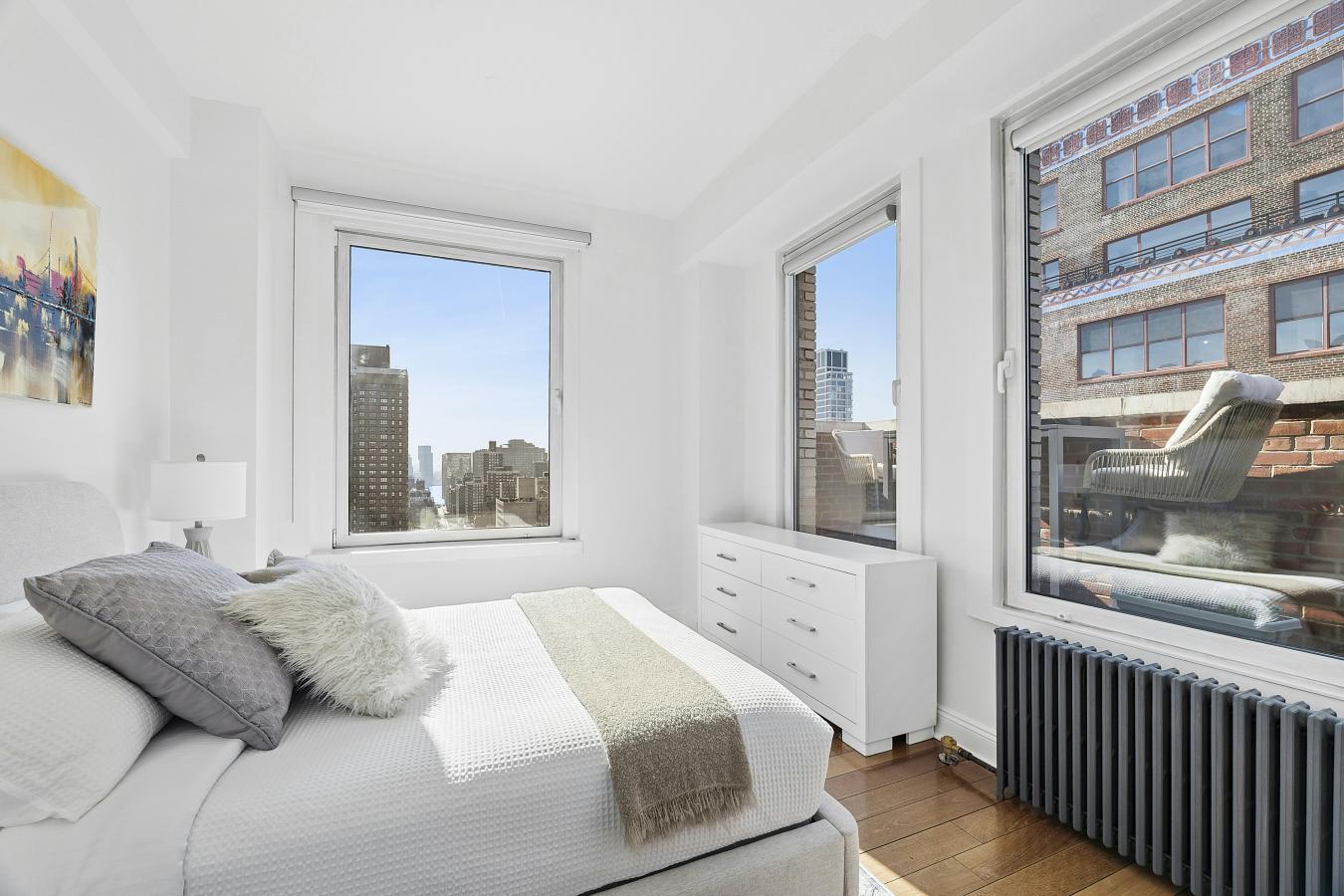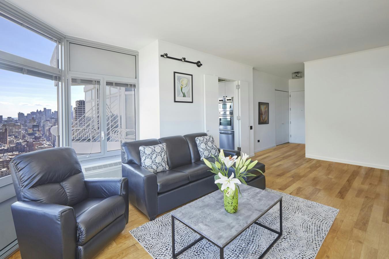 SKY HIGH 1-BEDROOM CONDO RESIDENCE ENDLESS VIEWS, PRIVATE BALCONY Panoramic views to the east and 10-foot ceilings provide an expansive loft-like feel in this one-bedroom home perched high on the 32nd floor. Complemented by a private balcony, there are floor-to-ceiling bay windows in every room that promote a dramatic sense of height, light, and spaciousness. There is a gracious gallery entry leading to a large living room with a separate, nicely offset dining area. Spectacular evening views provide a stunning backdrop for this homes owners, whether when relaxing alone or entertaining guests. The kitchens thoughtfully appointed appliances complement its clean lines and functional layout. As an added bonus, the sunny kitchen boasts huge windows framing an open skyline and river views. Contributing to this homes special appeal is its newly honed marble bathroom floors and walls. There are also beautiful oak wood floors throughout, further enhancing a sense of warmth and comfort. Not to be overlooked, the floor plan provides for abundant closet space. This high-floor residence would be perfect as a primary home, pied--terre, or investment property. Designed by acclaimed architect Costas Kondylis, The Future Condominium is located at the nexus of Murray Hill, Kips Bay, and NoMad and is one of Midtowns most recognizable and desirable luxury condos. Amenities include a health club, bicycle room, childrens playroom, 360-degree roof deck, building-accessible garage, and 24-hour doorman and concierge. A beautifully landscaped plaza borders the buildings glass-walled lobby. Residents are only 2 blocks from the subway and steps from both the uptown and cross-town buses. Beyond its many treelined streets, the area features wonderful restaurants, many boutique shops, top-tier hotels, convenient grocery stores, and a Lowes 15-screen theater. There is even a Trader Joes next door! Pets are welcome at The Future. Please call me for further information about this special home or to schedule a private showing.