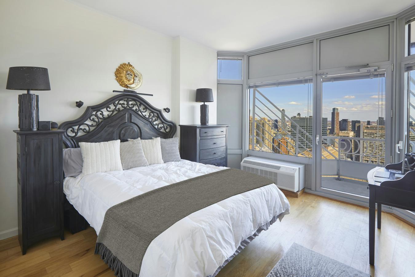 SKY HIGH 1-BEDROOM CONDO RESIDENCE ENDLESS VIEWS, PRIVATE BALCONY Panoramic views to the east and 10-foot ceilings provide an expansive loft-like feel in this one-bedroom home perched high on the 32nd floor. Complemented by a private balcony, there are floor-to-ceiling bay windows in every room that promote a dramatic sense of height, light, and spaciousness.