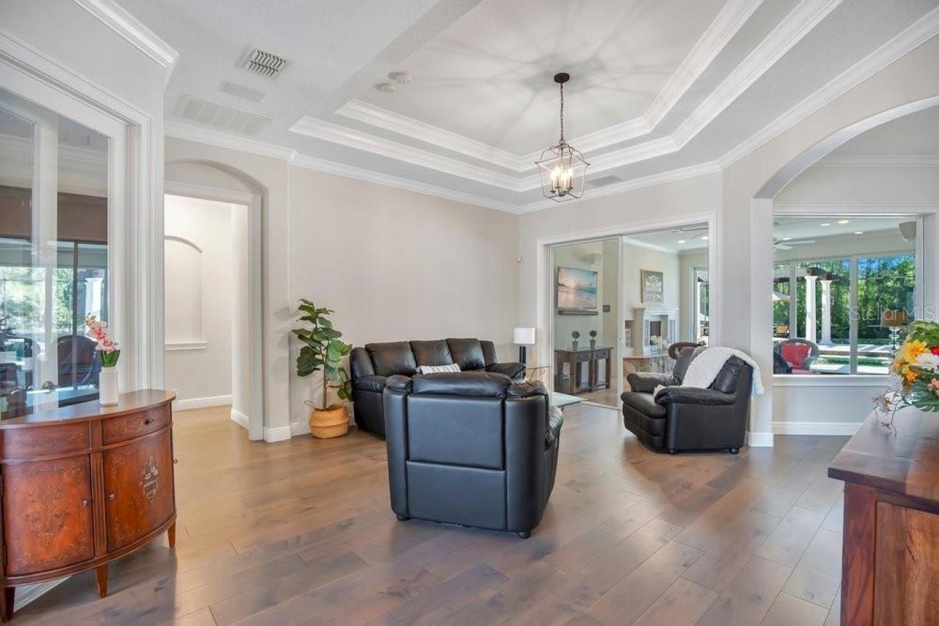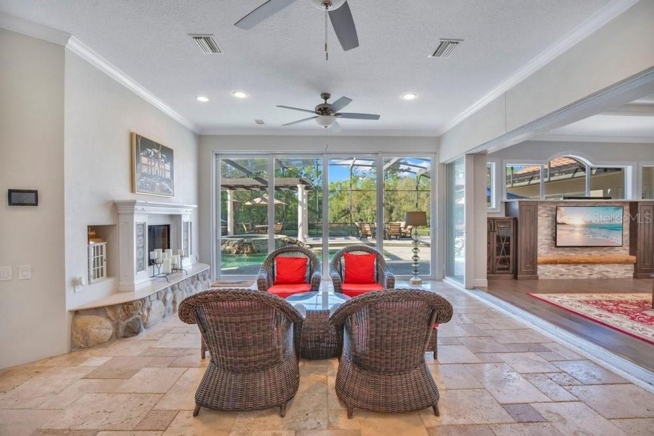 Save Big: 1% lender credit (based on loan amount) toward closing costs or rate buy-down with the sellers preferred lender. Ask for details! Discover a beautifully upgraded single-story residence in one of Lake Marys most desirable communities. This meticulously maintained 4-bedroom, 3-bathroom home beautifully combines comfort, functionality, and modern upgrades, all set against a backdrop with conservation and water views, ensuring privacy with no direct rear neighbors. As you cross the threshold and enter this beautifully designed home, youll immediately notice the stunning hard maple wood flooring that flows seamlessly throughout the common spaces and bedrooms, giving a fresh and modern feel. The formal dining room is positioned to the right and serves as an exceptional setting to host holiday dinners. A dedicated home office, thoughtfully designed with built-in shelving and ample storage solutions, makes it a perfect sanctuary for productivity or creativity. This versatile space enhances the overall functionality of the home, accommodating the needs of todays remote work lifestyle. Venturing into the central hub of the home, the updated kitchen stands out as a true masterpiece. With its generous island perfect for meal prepping, it features a state-of-the-art cooktop and a built-in oven, ensuring that your culinary endeavors are met with ease. The layout promotes a seamless flow into the inviting family room, ideal for family gatherings. A highlight of the home is the Florida room, which boasts a cozy fireplace and dual ceiling fans, providing a comfortable space for relaxation year-round. The primary suite serves as a private retreat, complete with a sitting area featuring its own fireplace, direct access to the pool deck, and a spa-like en-suite bath equipped with double sinks, heated towel bars, a soaking tub, and a luxurious walk-in shower. Two secondary bedrooms share a beautifully updated three-piece guest bathroom, while an additional bedroom and a third updated bathroom with a walk-in shower are conveniently situated near a spacious flex room. This flex room offers travertine flooring and allows for the perfect setup for a game room or a cozy home library with oversized chairs and books for reading. Outdoor living is thoughtfully designed with an expansive screened pool deck designed for both dining and lounging, making it ideal for gatherings or relaxing afternoons. A saltwater pool provides refreshing swims in the warm sun, while the accompanying heated spa offers a soothing retreat at any time of the year. Whether youre hosting a lively summer barbecue or enjoying a quiet evening under the stars, this space is designed for year-round enjoyment and comfort. Recent updates include a gas pool heater (2 years old); a whole-house generator that is serviced annually, providing reliability during power outages; both HVAC systems have been replaced within the last three years; plantation shutters; tray ceilings; and crown molding. Located within the Magnolia Plantation gated community with 24-hour guard security, residents have access to tennis courts, a playground, and a park. The community is home to the world-famous Mike Bender Golf Academy and is conveniently located just a short golf cart ride away from some of the top-rated courses in Central Florida. Conveniently situated near I-4 and a quick 10-minute ride, it provides access to the 417 and 429.