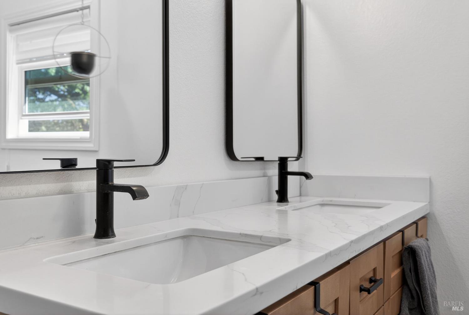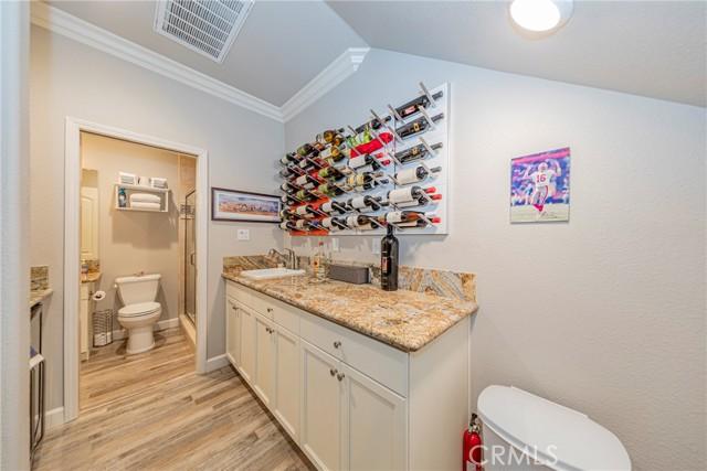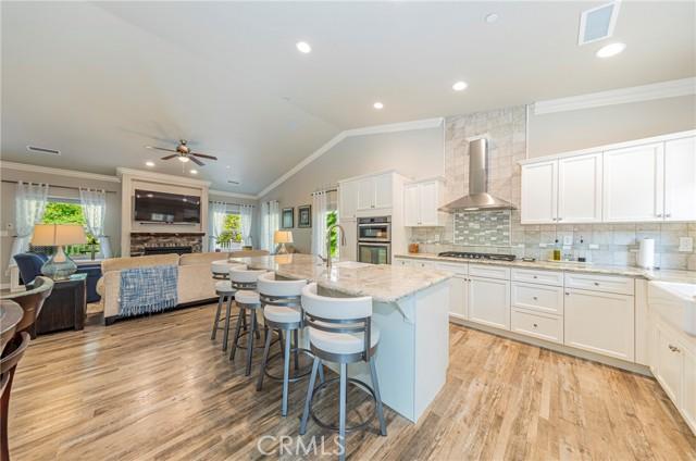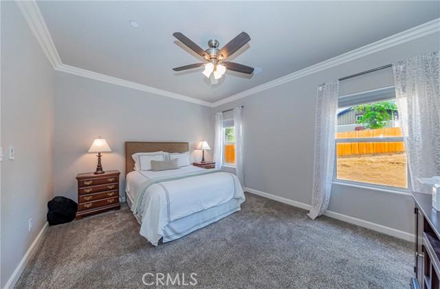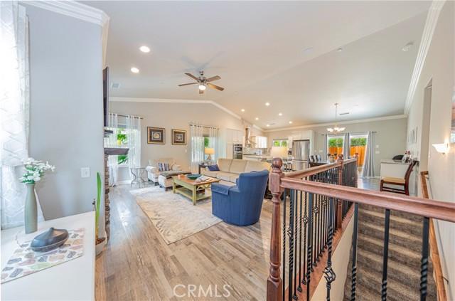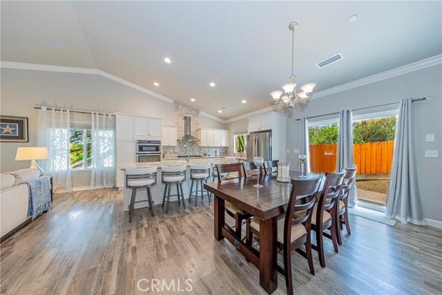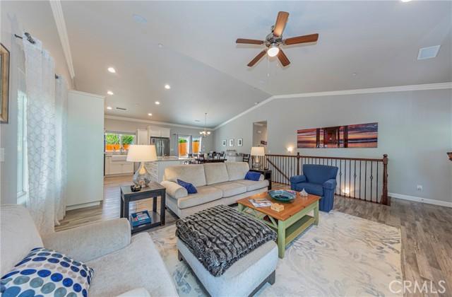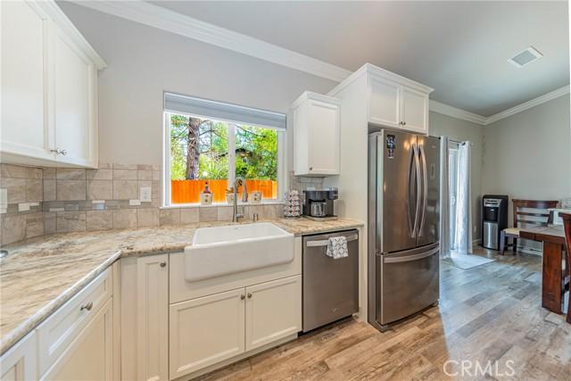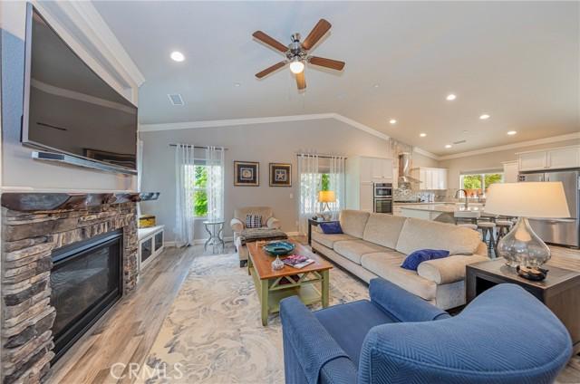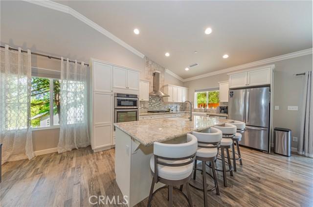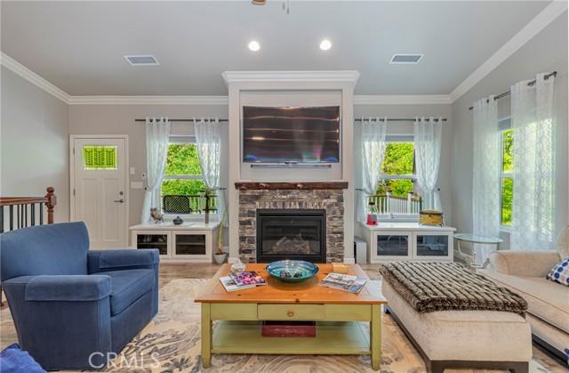 Welcome to your ideal mountain retreat! This stunning 2425 sq. ft. custom-built home, completed in 2018, offers beautiful mountain and community pond views in the heart of Oakhurst, CA. Thoughtfully designed with three bedrooms each featuring its own en-suite full bath plus an additional half bath for guests, the home blends comfort, privacy, and upscale living.The main living area upstairs showcases soaring vaulted ceilings, elegant crown molding, and a cozy fireplace framed by custom-built window benches. A fully integrated sound system is hardwired throughout the home, delivering premium audio in every room, along with a high-tech security system for added peace of mind.The modern kitchen is both stylish and functional, featuring crisp white cabinetry, upgraded custom granite countertops, and a deep farmhouse sink. The expansive island includes a vegetable sink, built-in wine refrigerator, and bar seating perfect for entertaining. The open-concept layout flows seamlessly into the dining and living areas, highlighted by a built-in credenza for additional storage and display.The 950 sq. ft. lower level offers excellent flexibility for guests or multi-generational living, complete with a private bedroom, full bath, family room with recessed lighting, and a convenient butlers kitchen.Additional highlights include a four-car deep garage with EV charging capability, RV parking, and dual driveways. The home is being sold with everything, fully furnished, TVs, sound and security systems, with the exception of the pool table and personal photos making it truly move-in ready.Simply bring your clothes and start enjoying the peaceful beauty of mountain living.