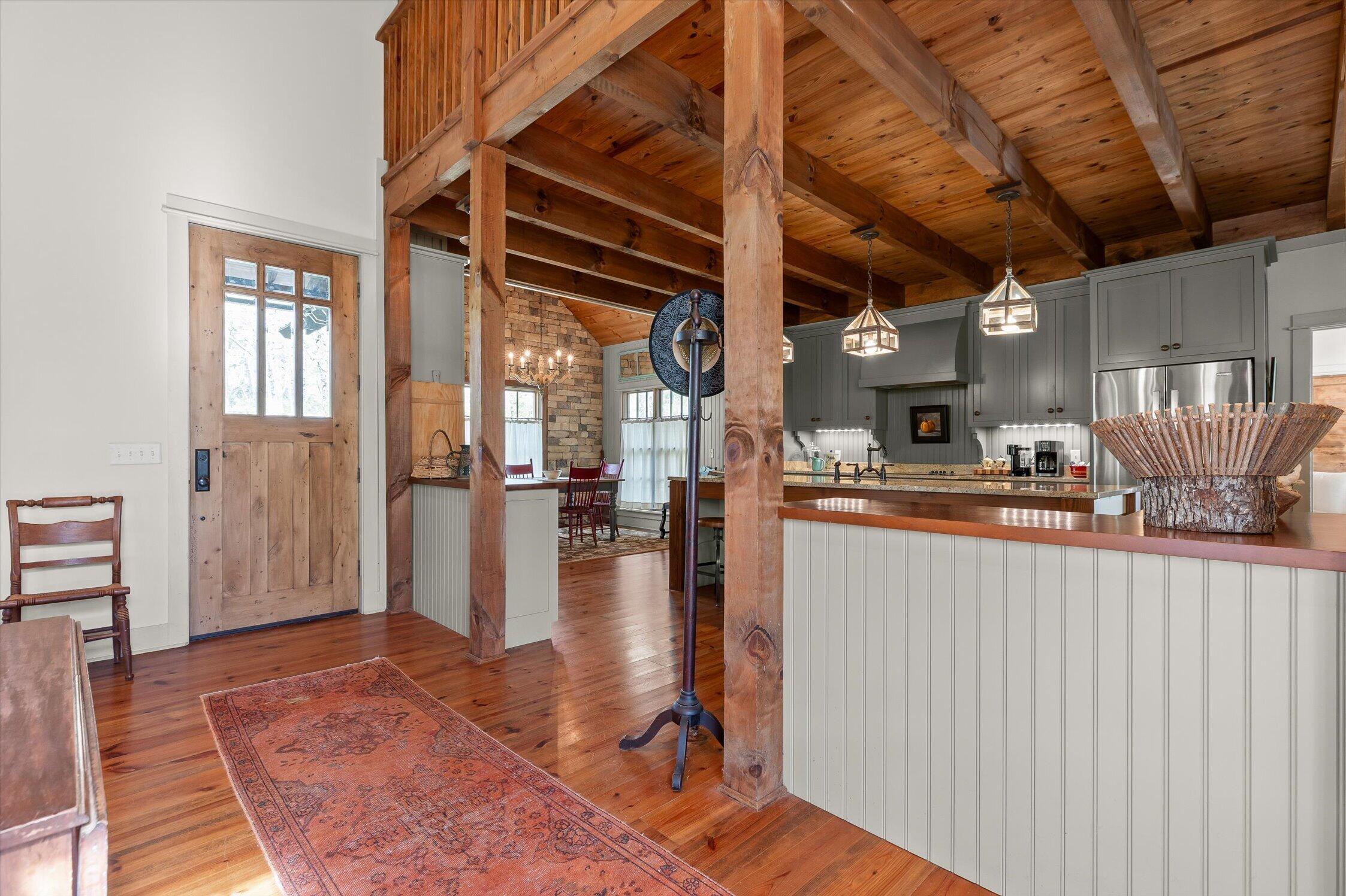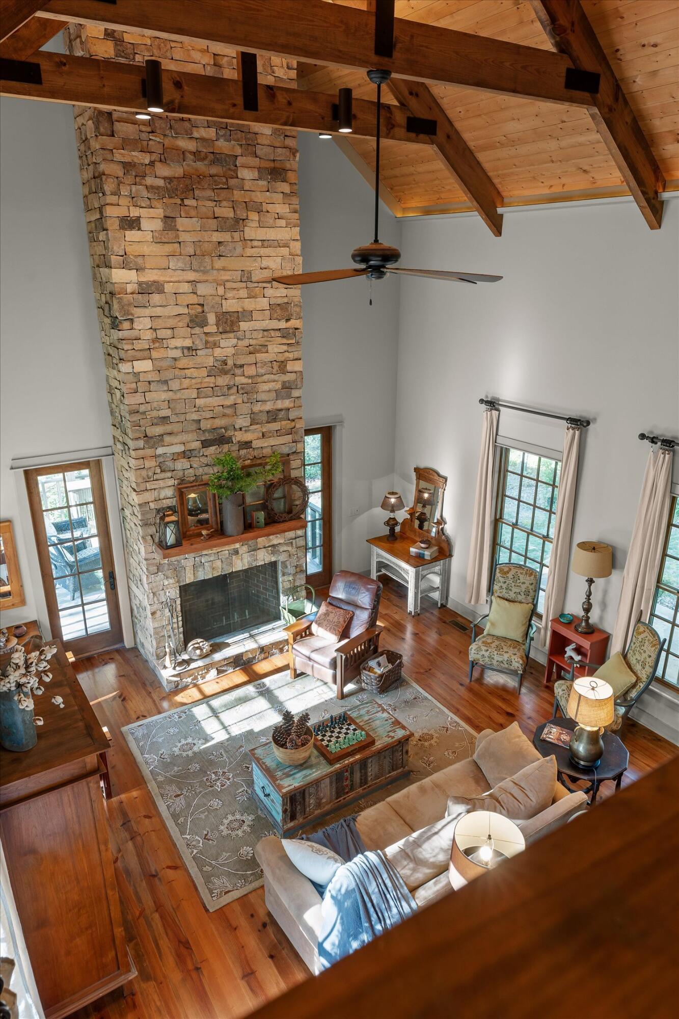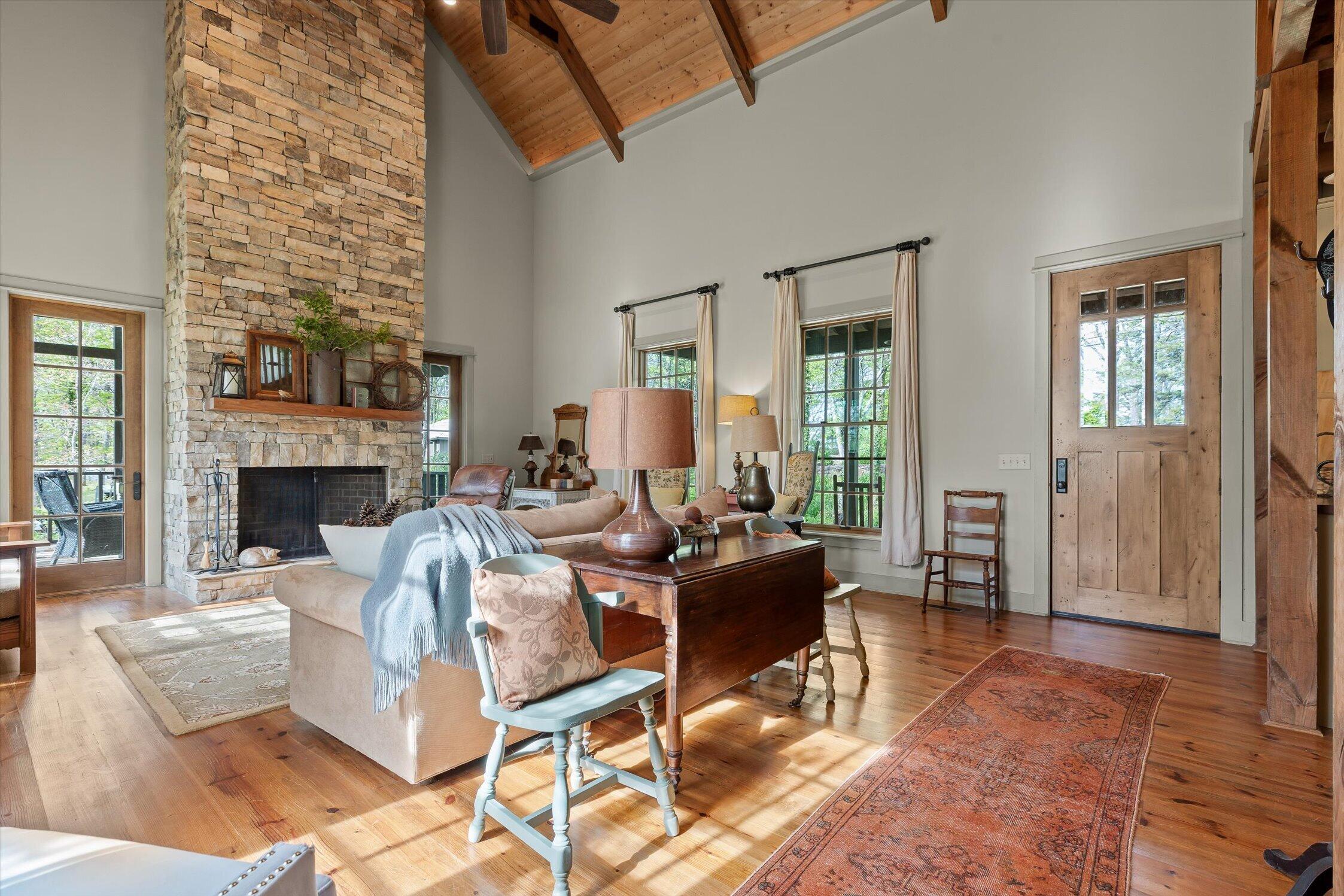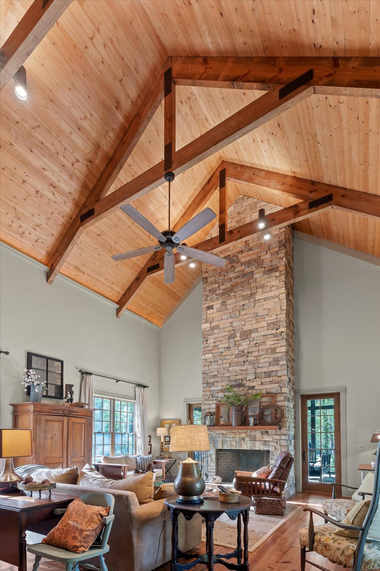 Custom In-Town Retreat with Thoughtful Design & Effortless Style Set in a desirable in-town location, this custom-built home offers a rare blend of architectural detail, comfort, and everyday convenience just moments from charming downtown Mentone. Inside, vaulted living spaces with exposed wood trusses, rich wood floors, ceilings & a striking stone fireplace create a warm, elevated atmosphere.