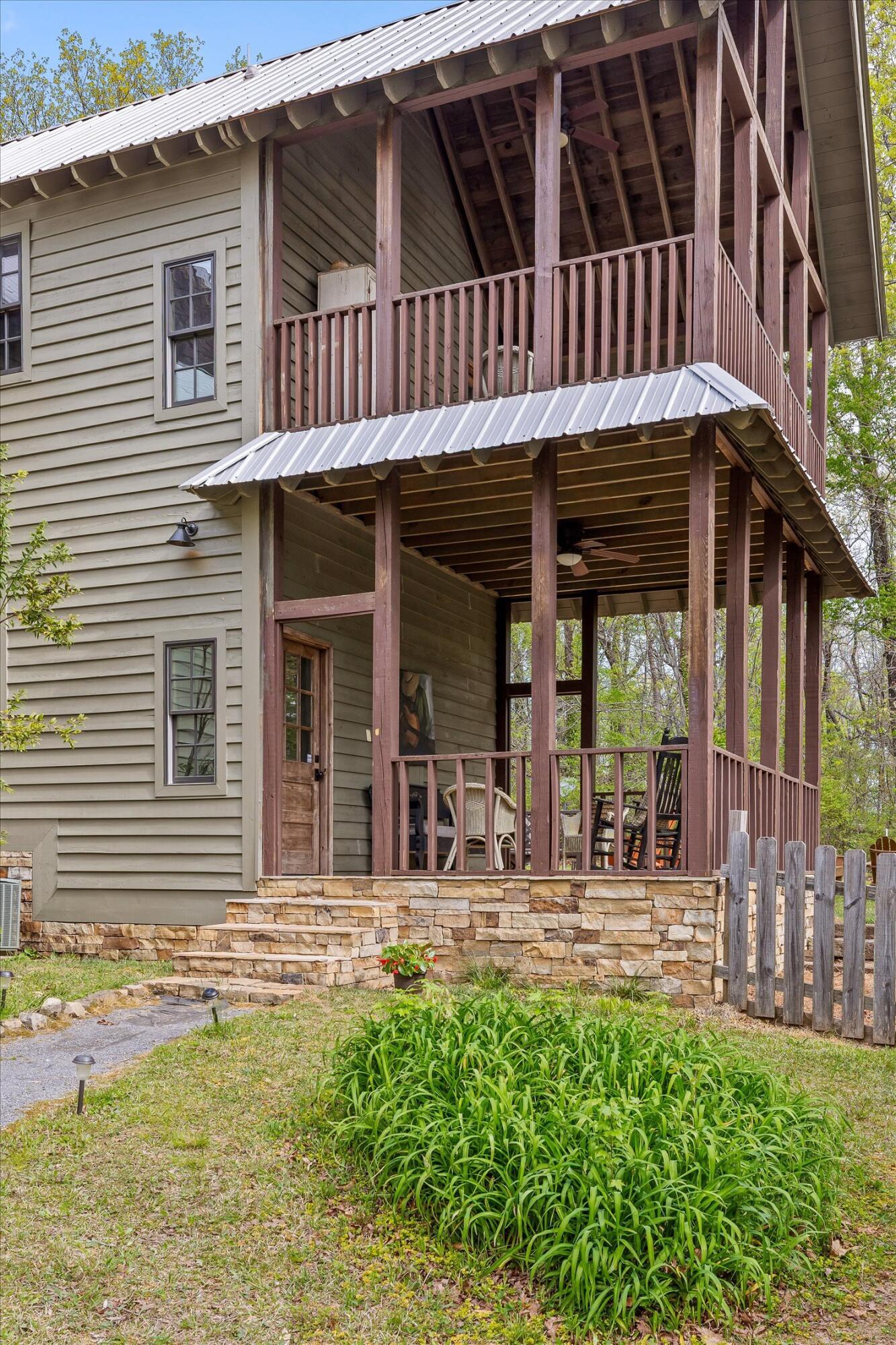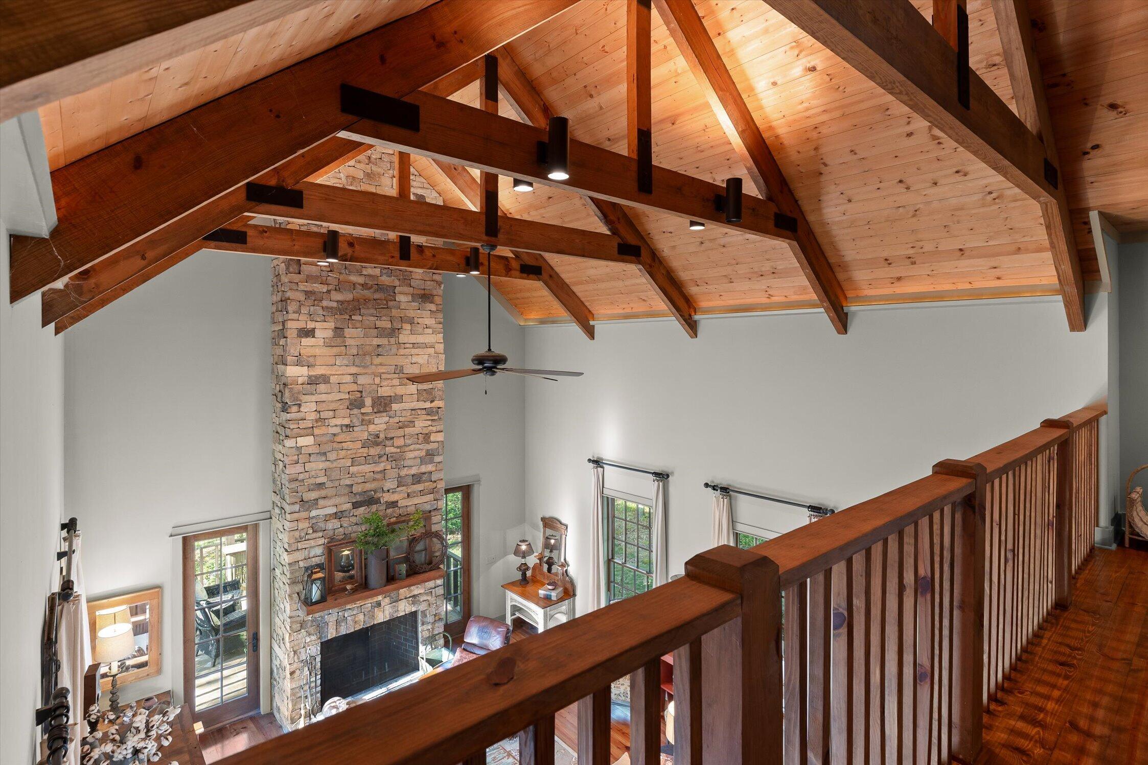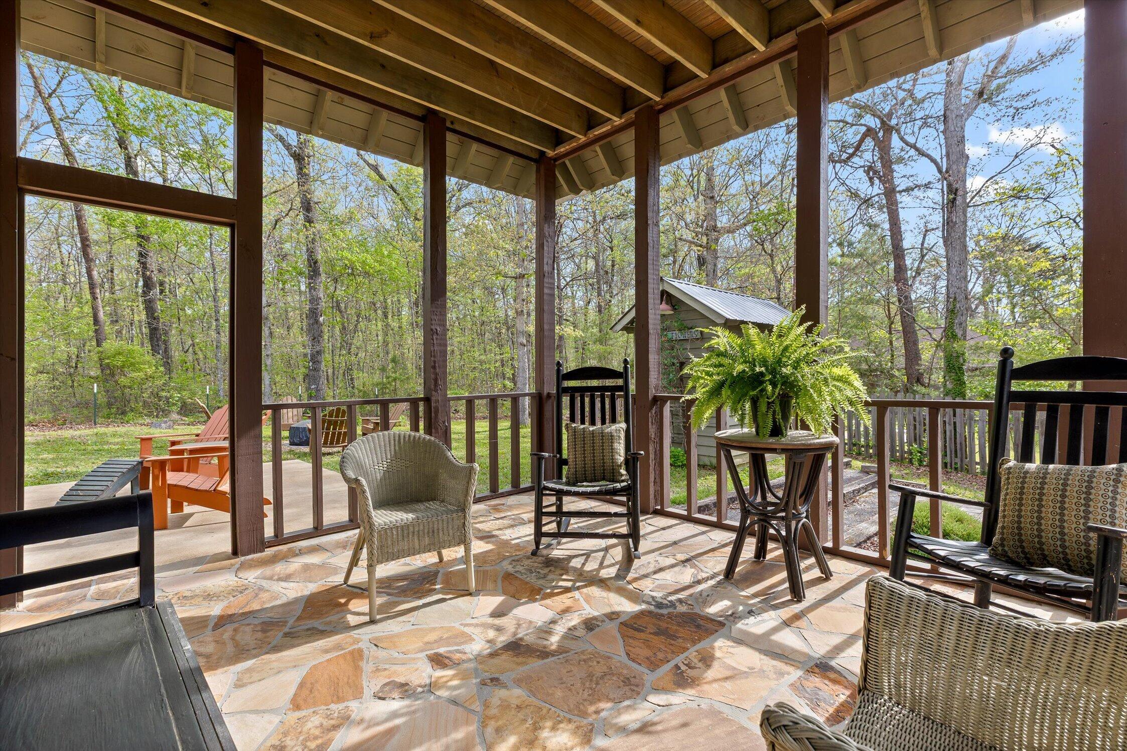 Custom In-Town Retreat with Thoughtful Design & Effortless Style Set in a desirable in-town location, this custom-built home offers a rare blend of architectural detail, comfort, and everyday convenience just moments from charming downtown Mentone. Inside, vaulted living spaces with exposed wood trusses, rich wood floors, ceilings & a striking stone fireplace create a warm, elevated atmosphere. The craftsmanship is evident throughout, from the natural materials to the clean, timeless finishes. The kitchen and dining area feel both refined and relaxed, designed for living with ease. The main-level primary suite is a quiet retreat with built ins, double closets & a beautifully finished vaulted bath featuring a soaking tub, double vanity, and walk-in tile shower. Step outside onto the adjacent patio for your morning coffee.Upstairs, additional living space includes a large bedroom, bathroom, hobby room, and a large open loft,connected to a covered porch , perfect for guests or flexible use.Outdoor spaces are equally inviting, with four covered porches, including a welcoming front porch made for rocking chairs and slow mornings, and a fenced backyard. The fenced yard, patio, and fire pit create an intimate setting for entertaining or unwinding. A separate, studio & garden shed set in courtyard style create a charming view from the back porch & add both function and versatility along with the detached garage workshop. A home that feels collected, intentional, and easy, offering a relaxed sense of luxury in an ideal in-town setting.