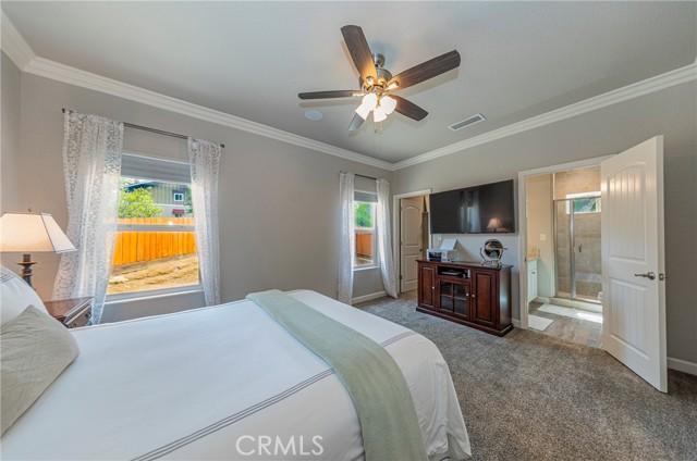 Welcome to your ideal mountain retreat! This stunning 2425 sq. ft. custom-built home, completed in 2018, offers beautiful mountain and community pond views in the heart of Oakhurst, CA. Thoughtfully designed with three bedrooms each featuring its own en-suite full bath plus an additional half bath for guests, the home blends comfort, privacy, and upscale living.