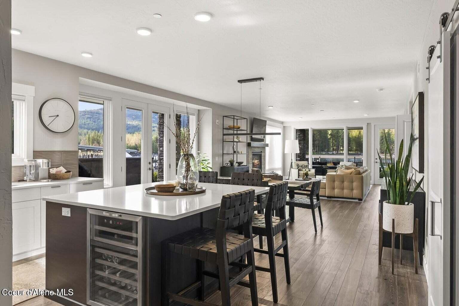 Experience tranquil waterfront living in this beautifully maintained 3-bedroom den, 2-bath condo on the Spokane River in the heart of Post Falls. This spacious corner unit features an open-concept layout with expansive windows capturing stunning river views and lots of natural light.