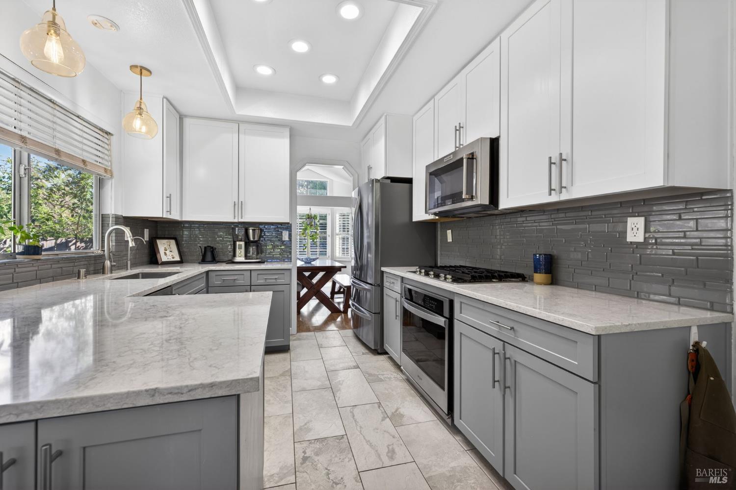 Experience tranquil waterfront living in this beautifully maintained 3-bedroom den, 2-bath condo on the Spokane River in the heart of Post Falls. This spacious corner unit features an open-concept layout with expansive windows capturing stunning river views and lots of natural light. The gourmet kitchen includes granite countertops, stainless steel appliances, and a large island perfect for entertaining. The primary suite boasts private deck access, a spa-like bath, and a walk-in closet. Enjoy your own covered deck overlooking the river--ideal for morning coffee or evening sunsets. Gated community amenities include elevator access, a gym, and a garage. Conveniently located near dining, parks, golf, and just minutes to Coeur d'Alene and Spokane. Turnkey and move-in ready!