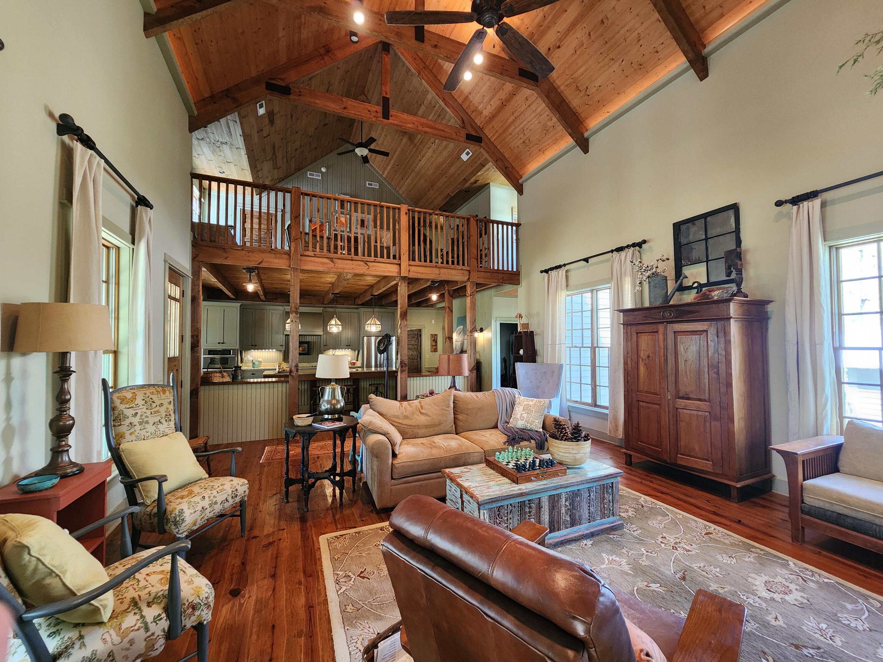 Pineapple Pointe has it all with views to die for, plus a large open plan living area with kitchen, dining and living room providing ample space for entertaining. The primary suite, additional guest suite, and a comfortable loft which is accessed by a hand crafted custom spiral staircase, and a 360-degree deck completes the main floor.